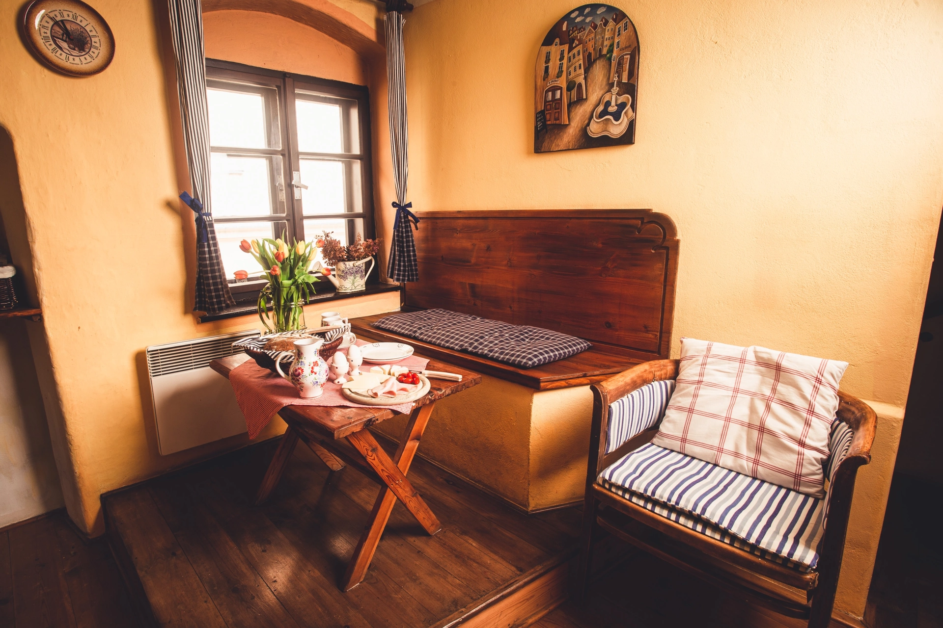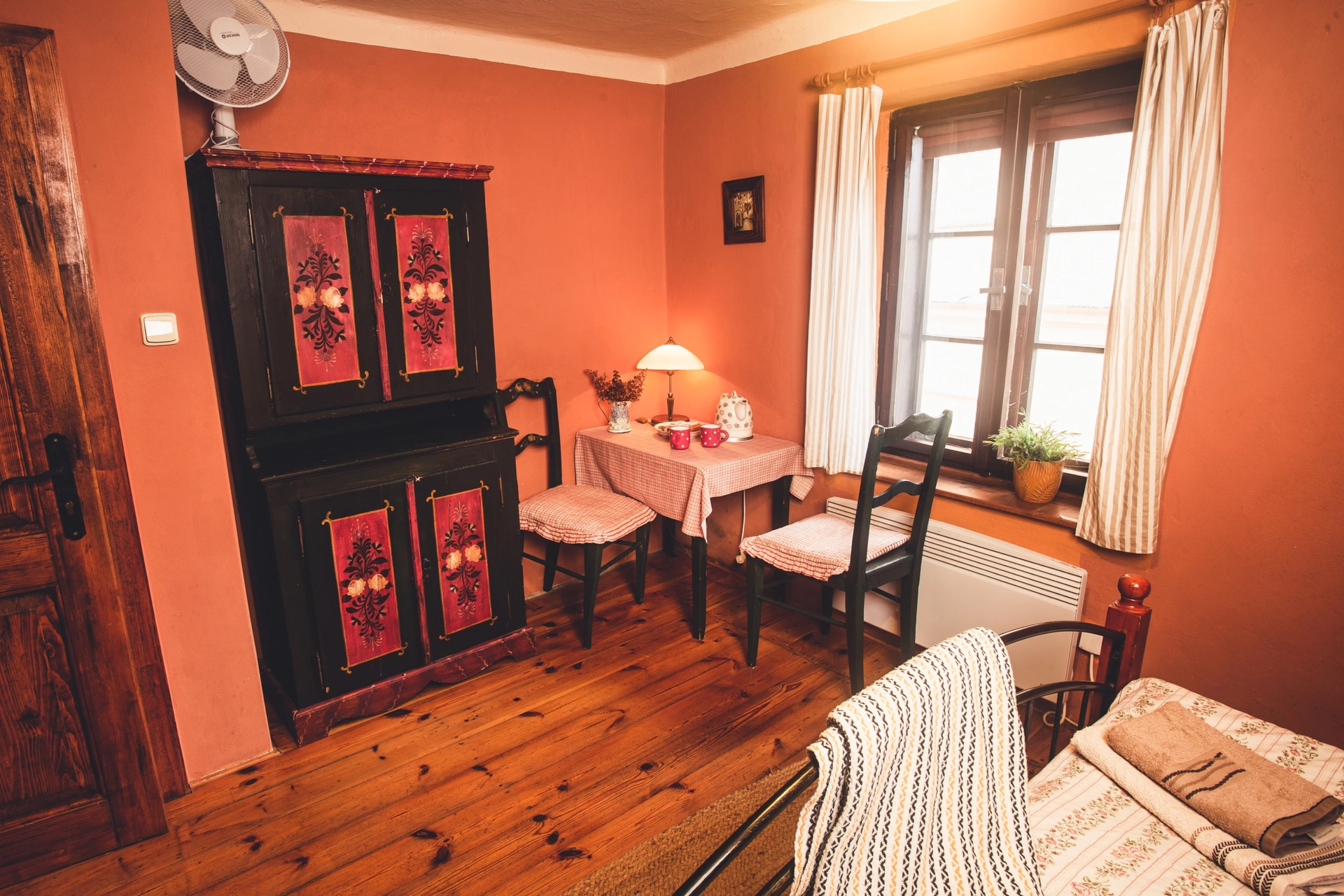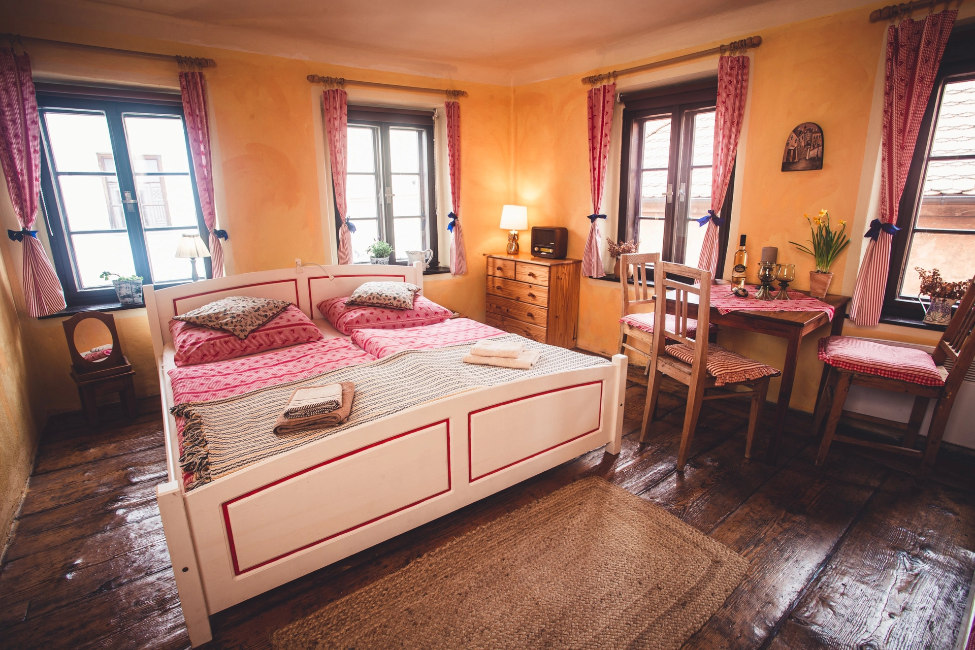 - Pokoj Písař: dvoulůžkový pokoj s manželskou postelí