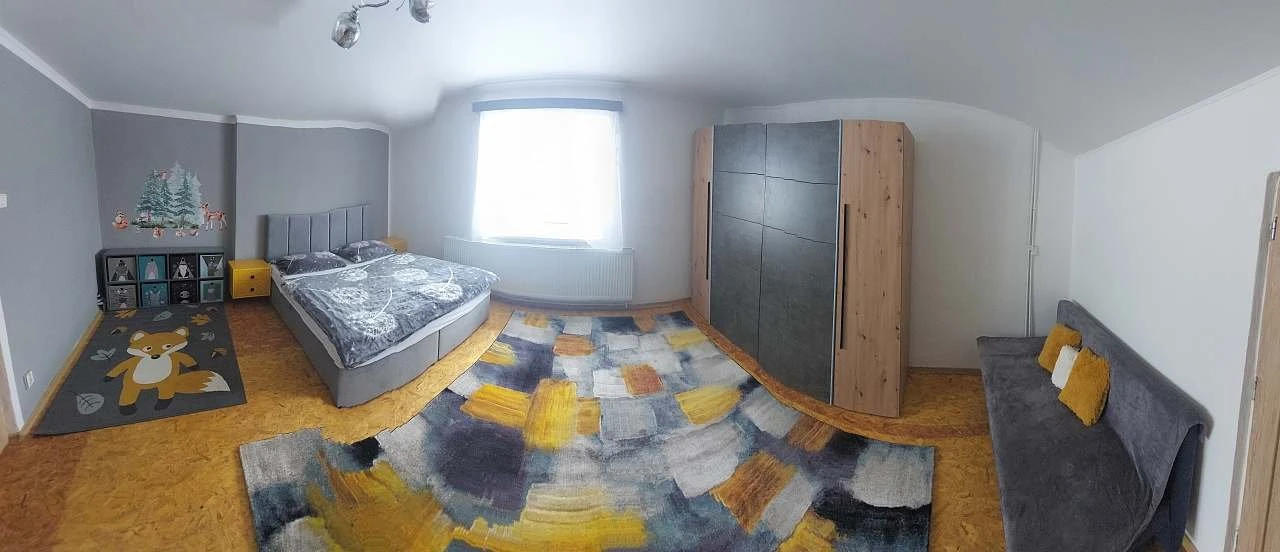 Ubytování disponuje třemi ložnicemi. V přízemí se nacházejí dvě ložnice – jedna je umístěna za obývacím pokojem, druhá za kuchyní a je doplněna o přistýlku vhodnou pro malé dítě/děti. V patře je třetí ložnice s kapacitou až 4 osoby.