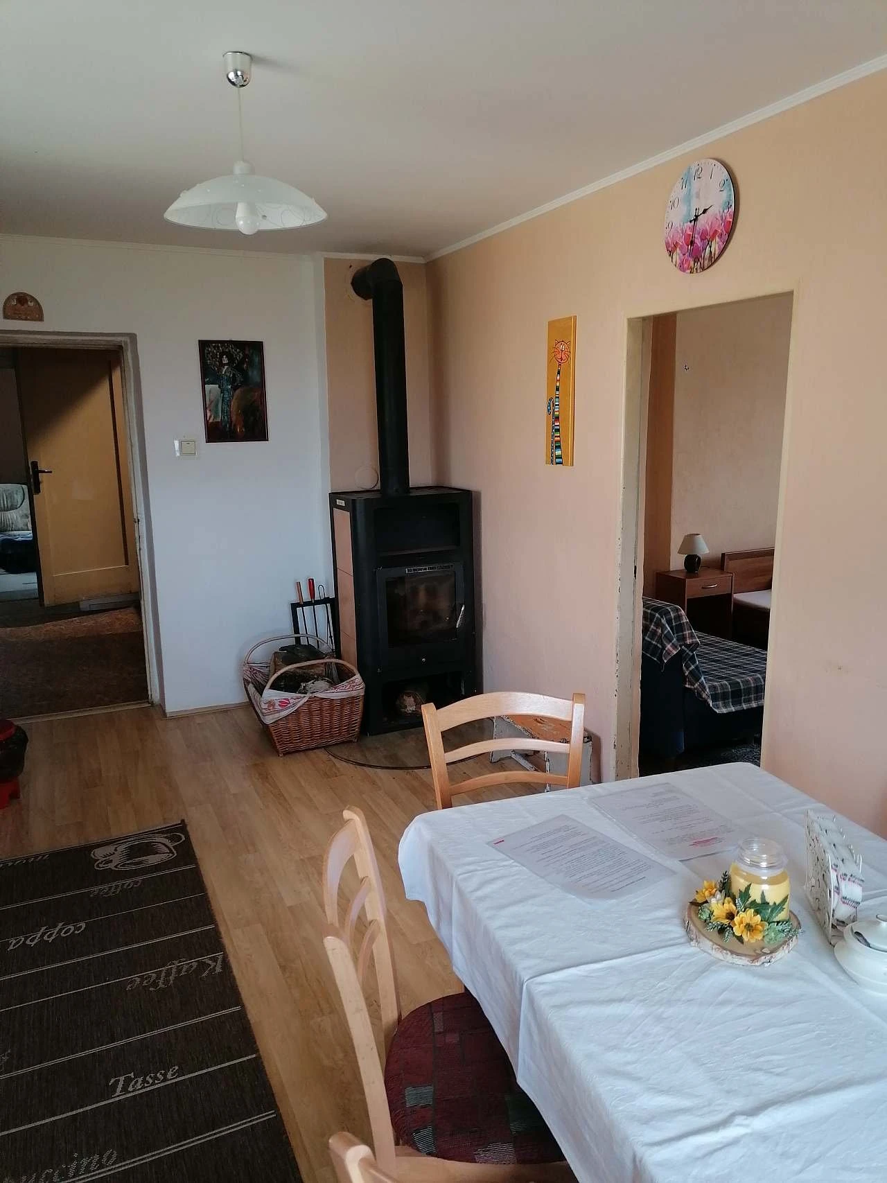 Vytápění je řešeno centrálně, a to pomocí krbu nebo plynového kotle, což umožňuje komfortní pobyt i během chladnějšího období.