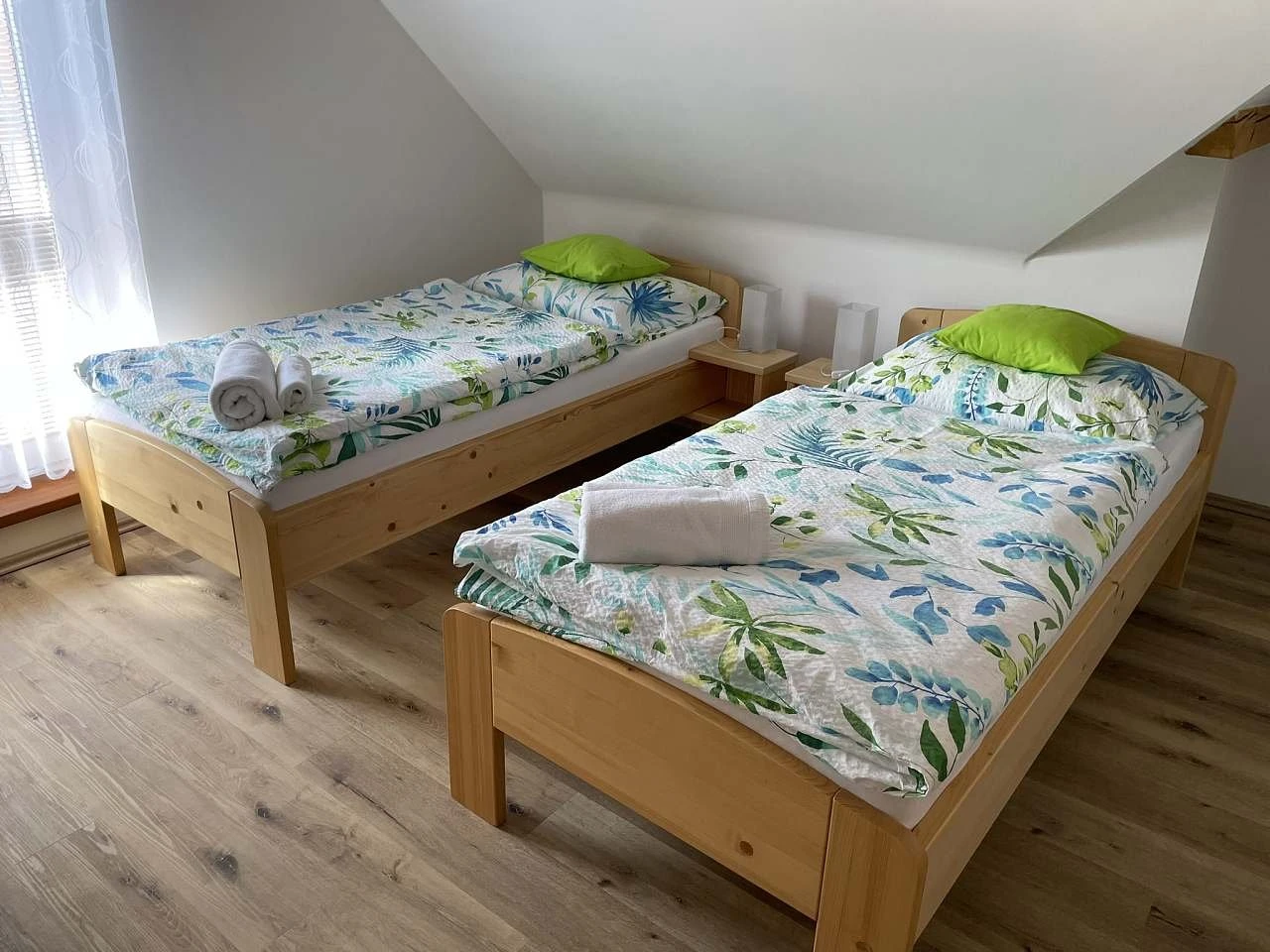 – 1× manželská postel (možnost rozdělení na dvě jednolůžka)