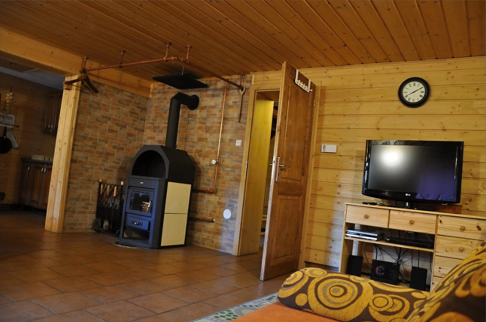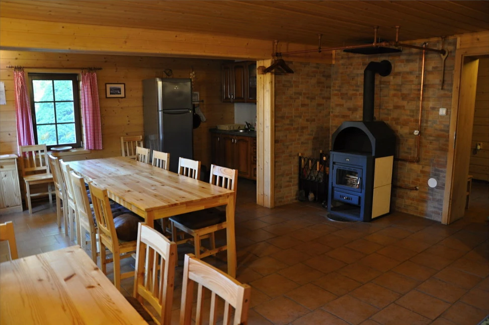Společenská místnost nabízí TV se satelitem, pohovku, DVD a CD přehrávač, rádio a jídelní posezení pro 15 osob. Nechybí krb, který vytvoří útulnou atmosféru. Kuchyňský kout je plně vybaven elektrickým sporákem, mikrovlnnou troubou, rychlovarnou konvicí, lednicí, mrazákem a nádobím.