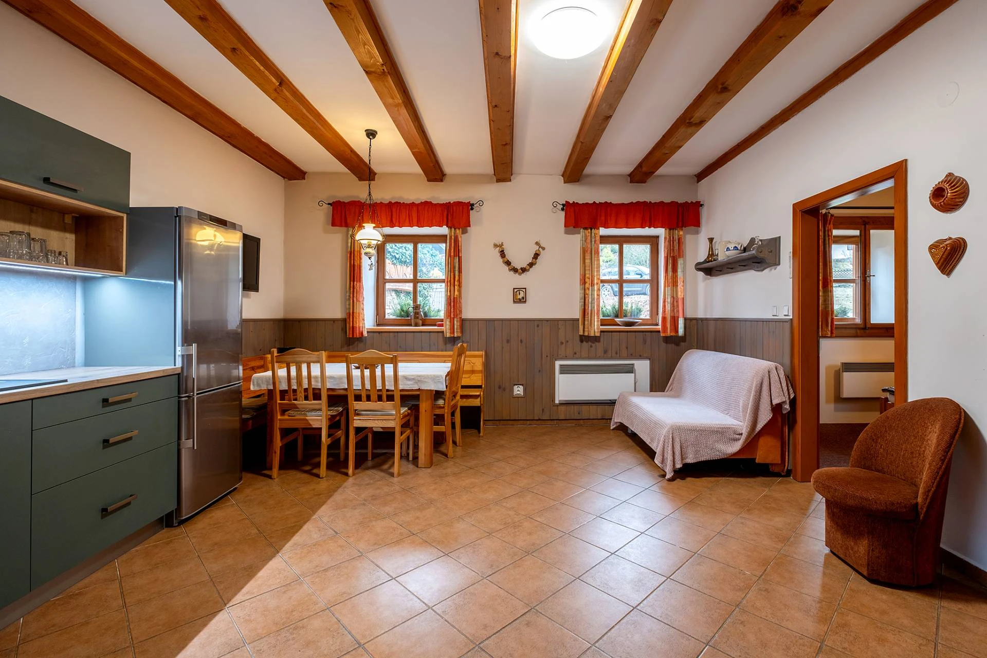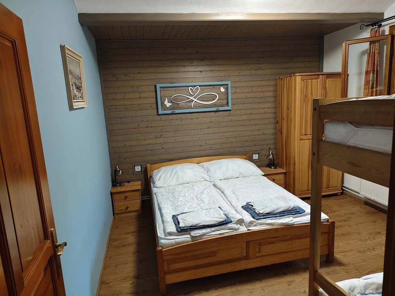 - Ložnice 1: manželské dvoulůžko + palanda (4 lůžka)