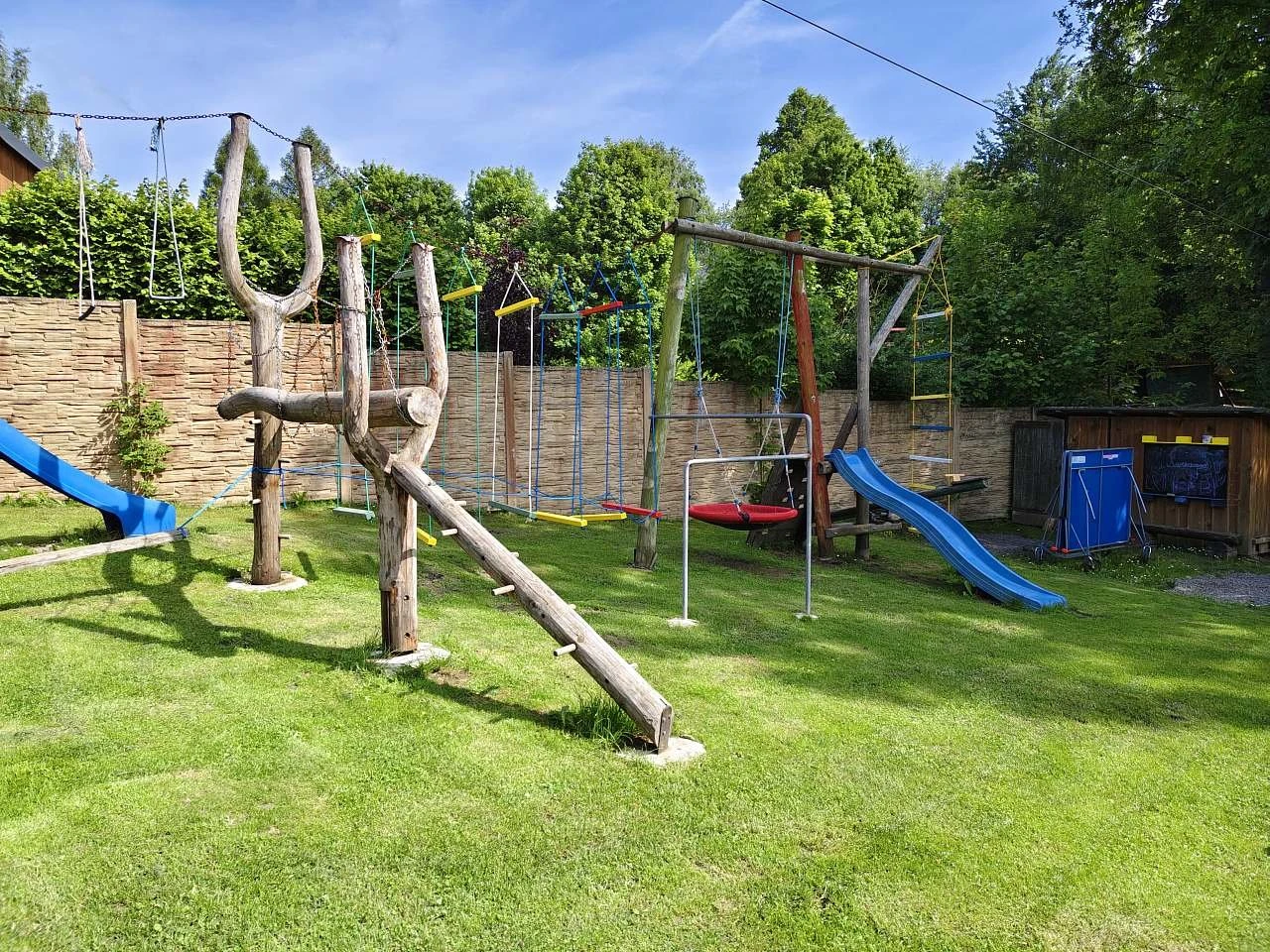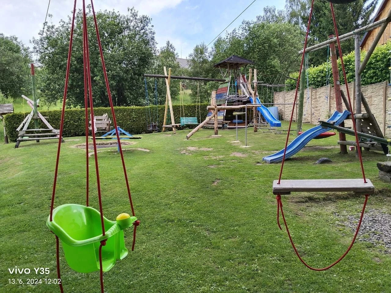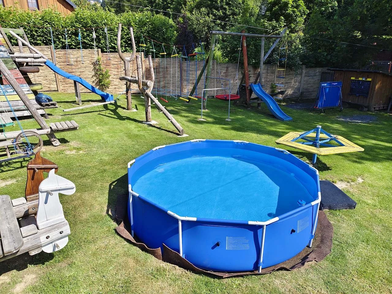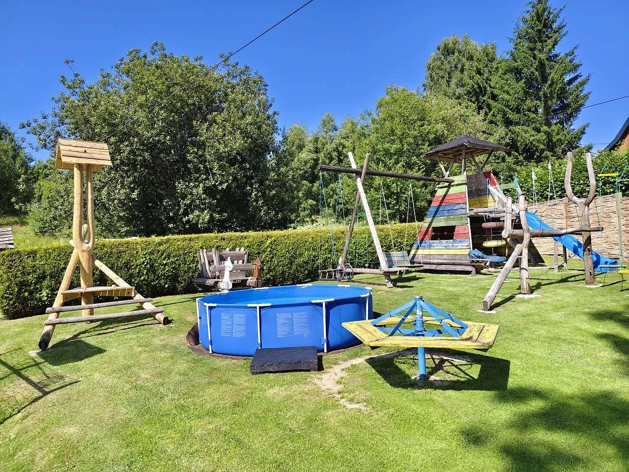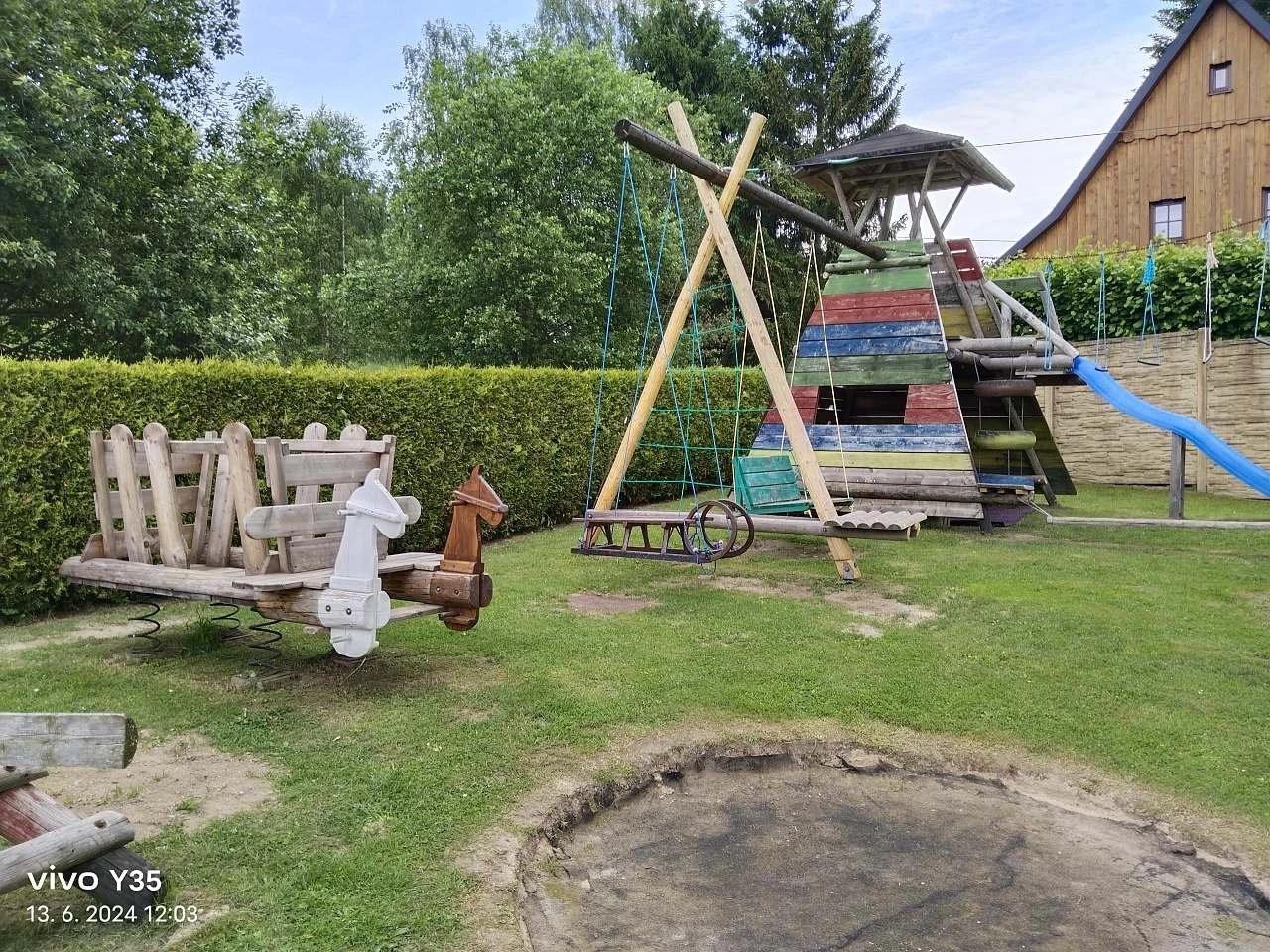 Pro děti je připraveno dětské hřiště s bazénkem, trampolínou, houpačkami, klouzačkami, lezeckou stěnou, lanovými dráhami, kolotočem a pískovištěm.
