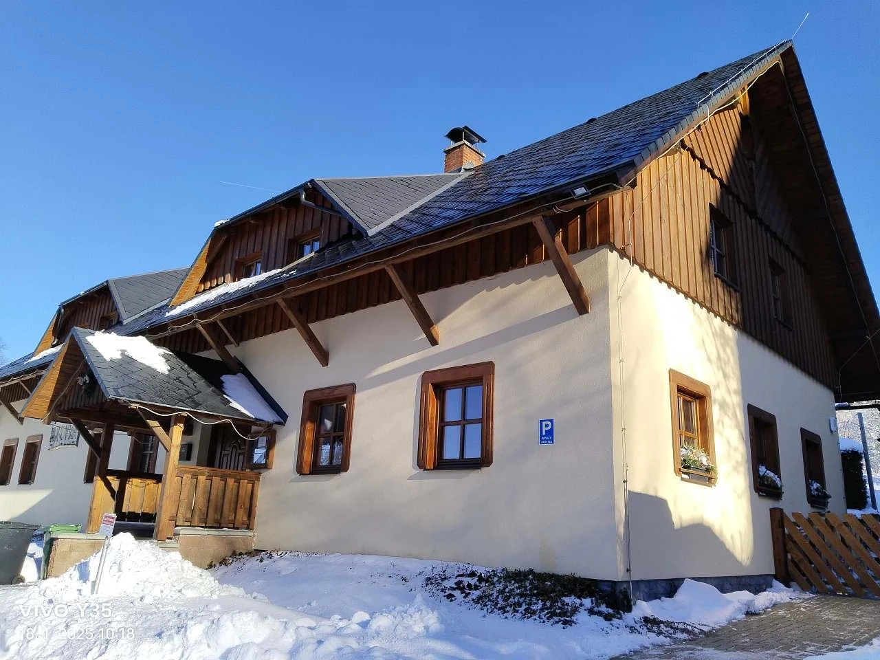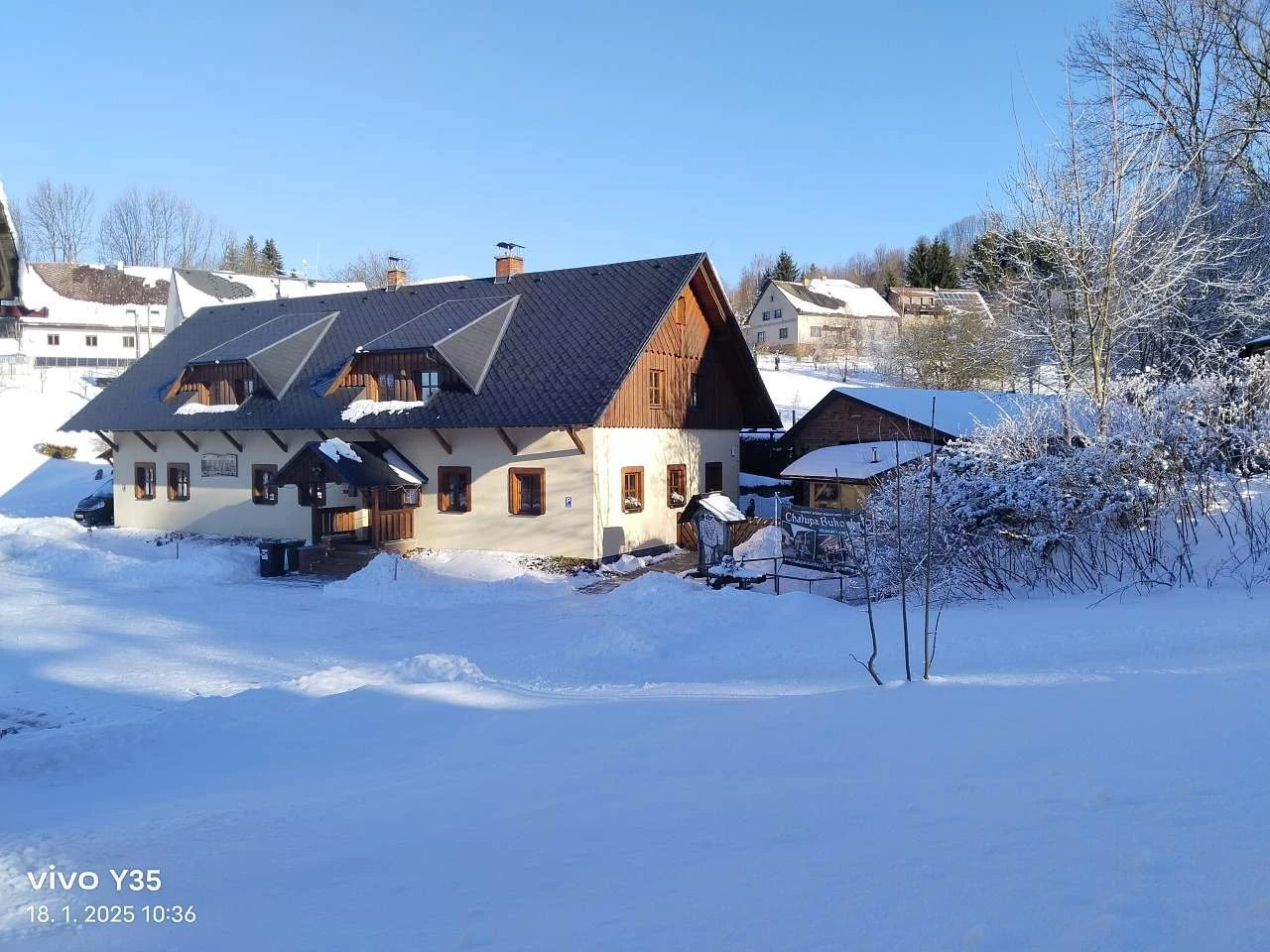 Parkování je možné přímo před chalupou. Chalupa je vhodná pro větší skupiny nebo rodiny, všechny prostory jsou oplocené a udržované, s možností využití venkovního i vnitřního krbu a bazénu.