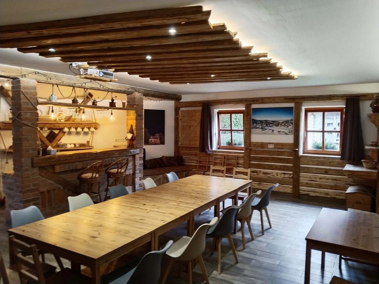 Od ledna 2021 je k dispozici nová společenská místnost, oddělená od obytné části, vybavená kuchyňskou linkou s varnou deskou, troubou, myčkou a velkou lednicí u stylového barového pultu.