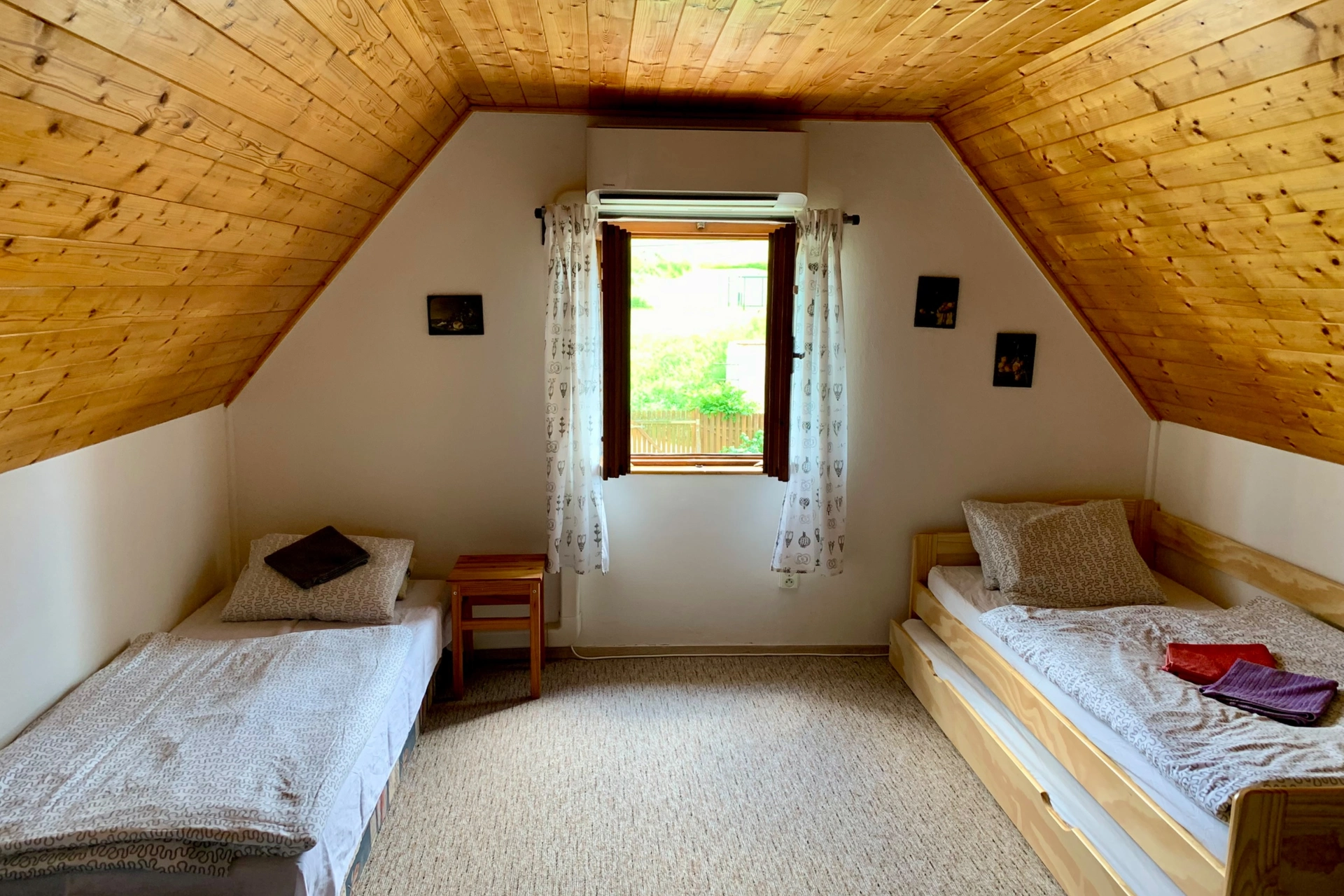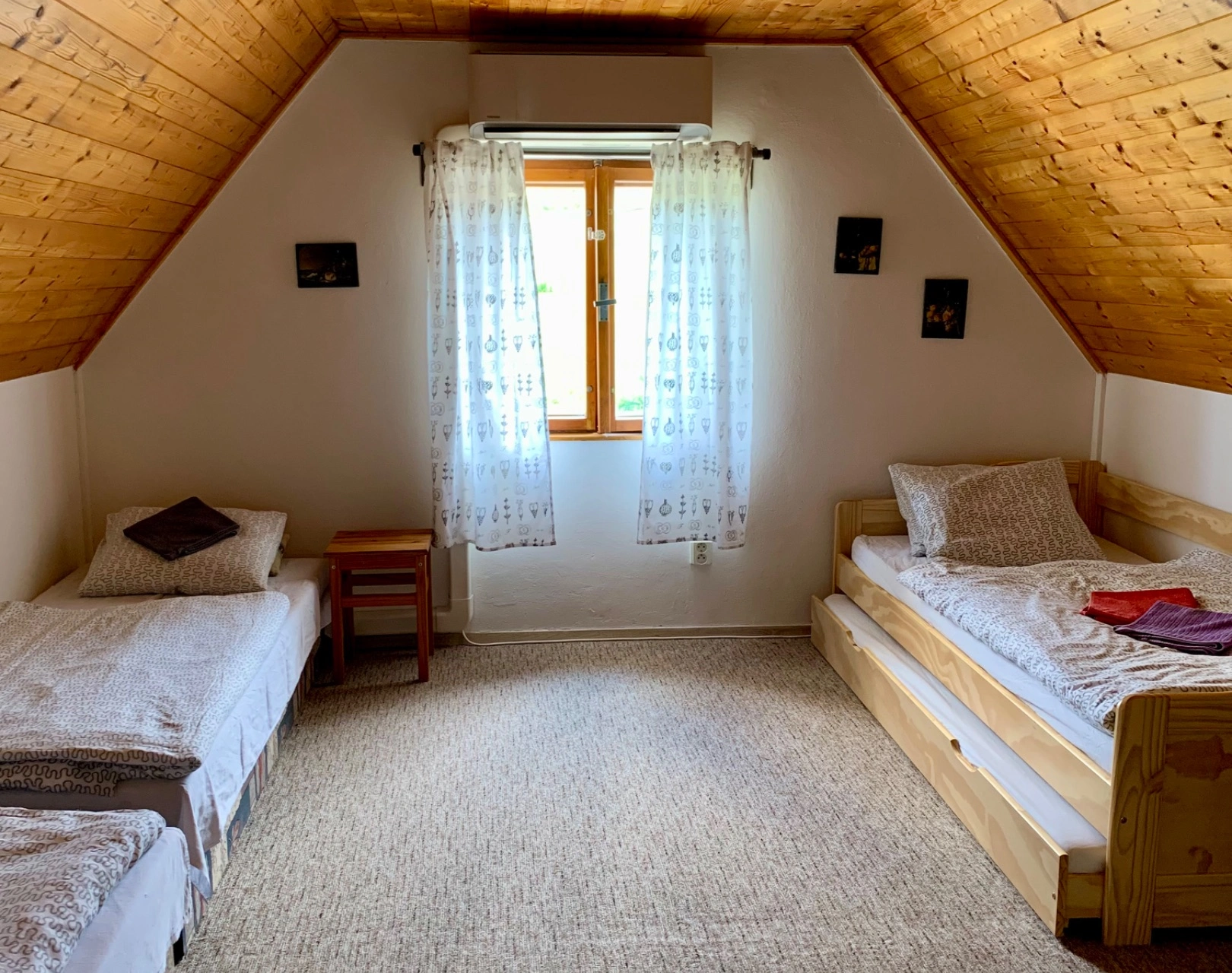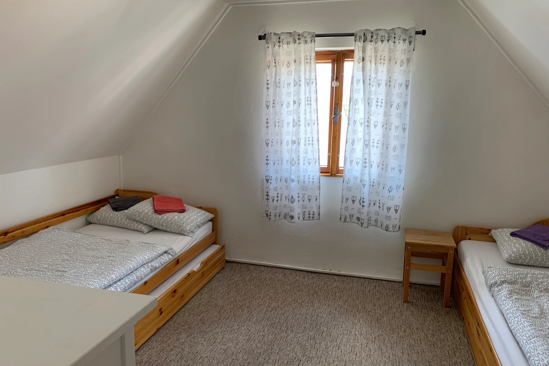 - Podkroví: 2-lůžková ložnice s možností dvou přistýlek, 3-lůžková ložnice s možností jedné přistýlky
