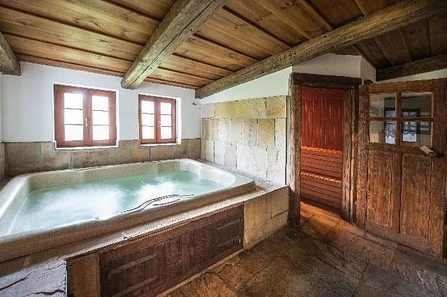 - Vířivka, sauna, kachlová kamna s vyhřívanou pecí na ležení, otevřený krb v pivnici.