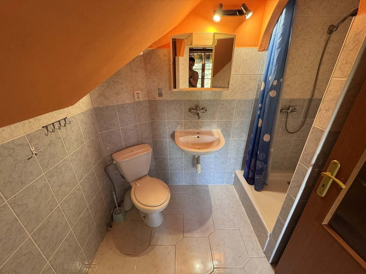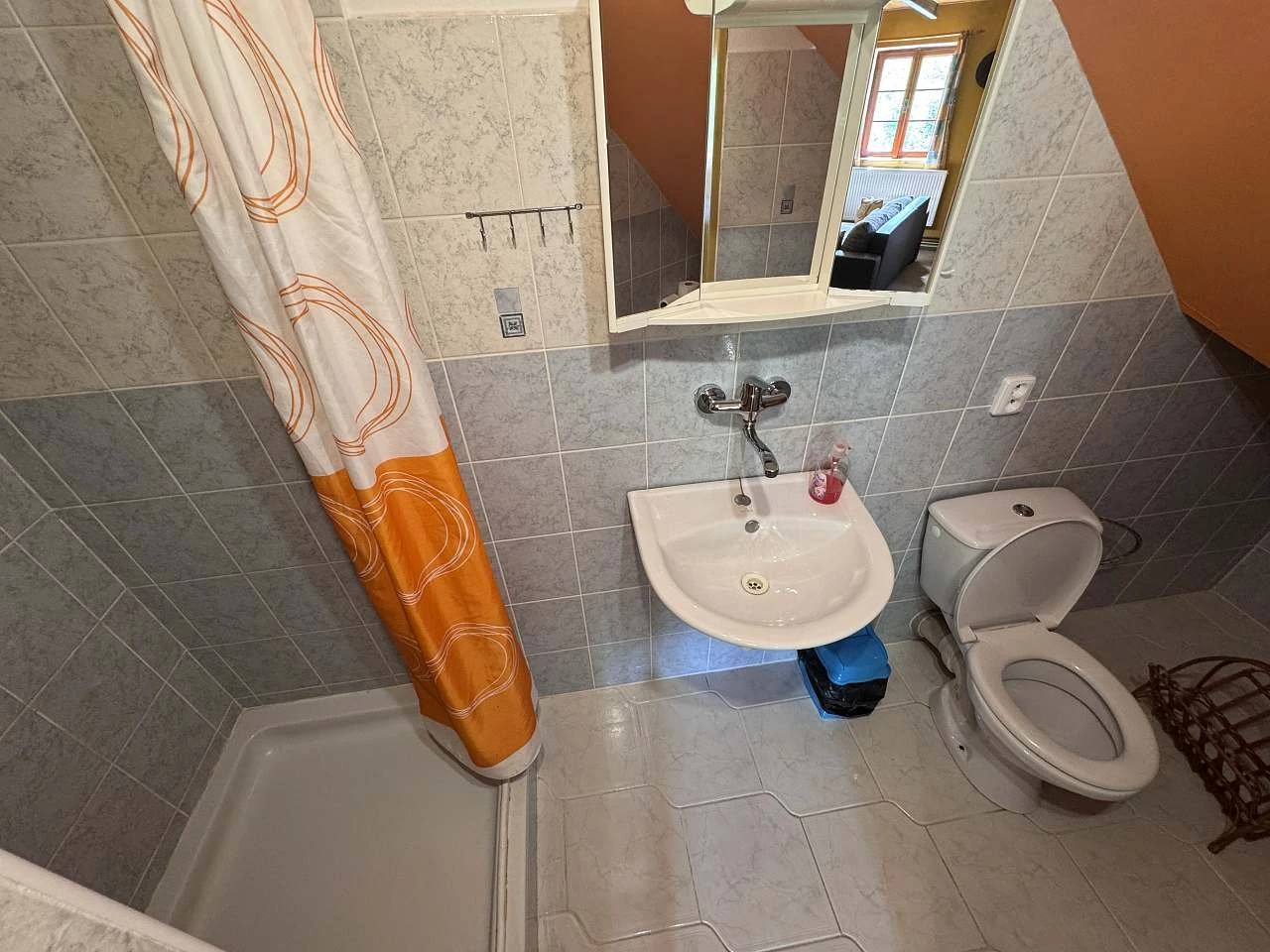 - Sociální zařízení: koupelna se sprchovým koutem, umyvadlem a WC
