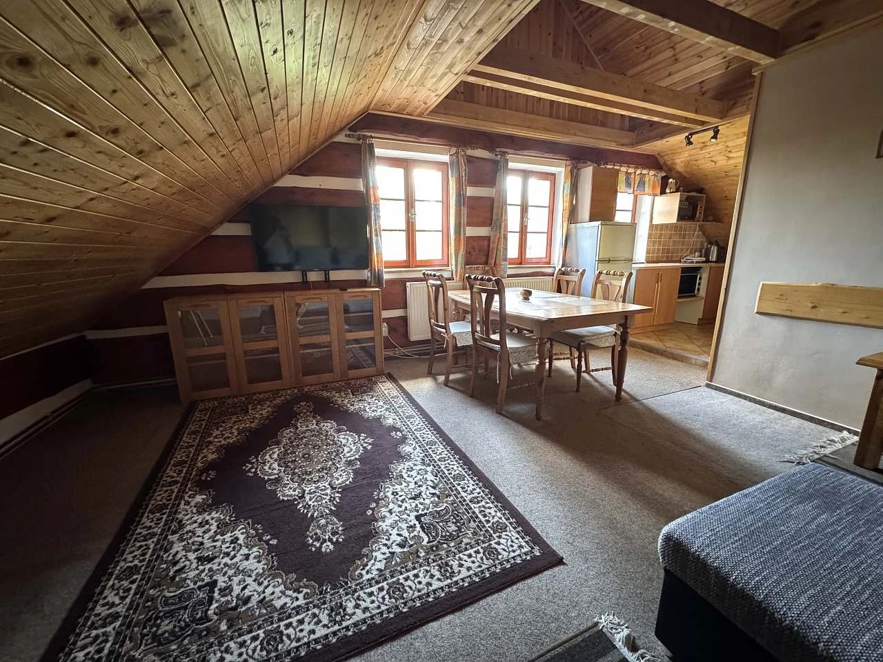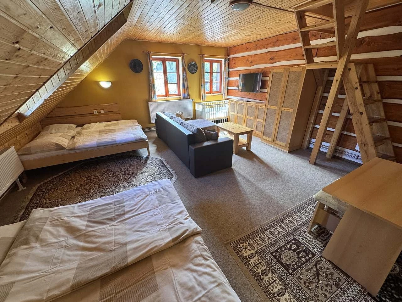 - Apartmán 1: mezonet, dolní pokoj 4 pevná lůžka, mansardová ložnice 4 pevná lůžka