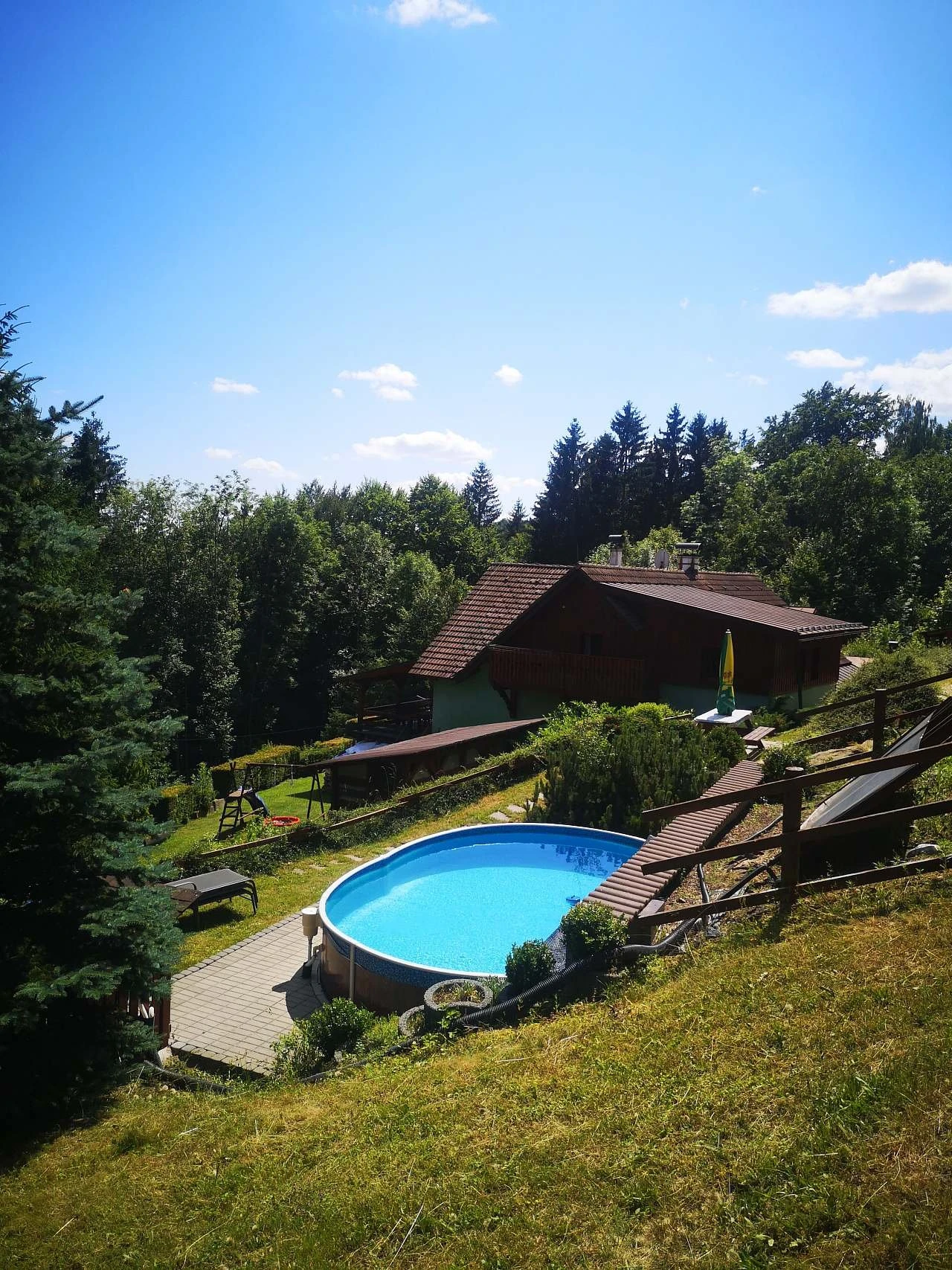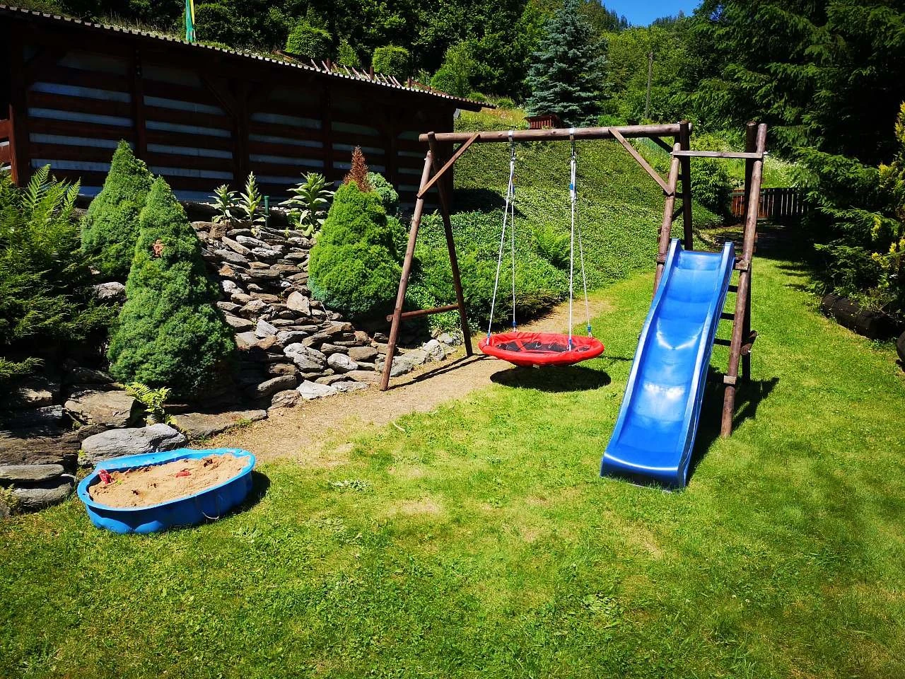 K vybavení patří venkovní bazén, sauna, venkovní gril a krytá pergola. Pro děti jsou k dispozici venkovní hrací prvky (houpačka, skluzavka, pískoviště) a vnitřní dětský koutek. Chalupa je oplocená, nachází se na samotě a je vhodná i pro pobyt s domácími mazlíčky. Parkování je možné přímo u objektu.