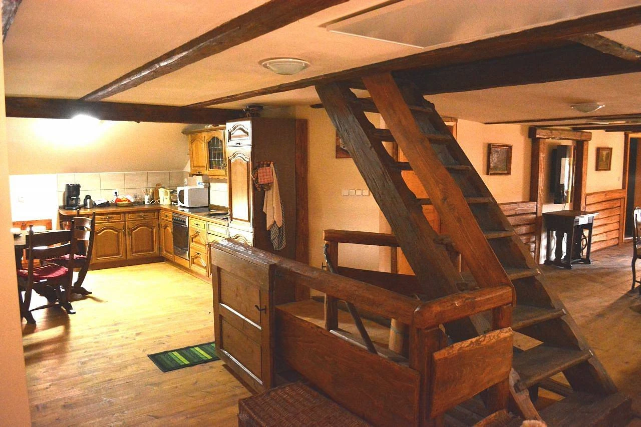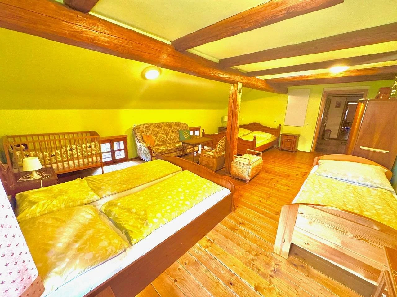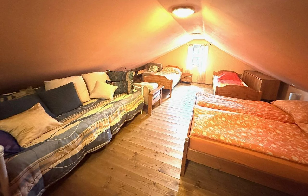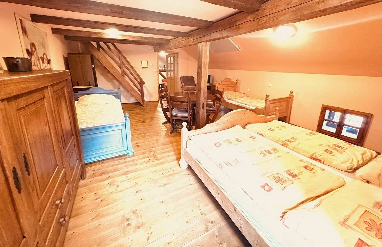 Chalupa Hyršov nabízí 7 ložnic s různým uspořádáním: některé ložnice mají manželské postele, jiné kombinaci manželských postelí a samostatných lůžek, jedna ložnice má mezonet se 4 lůžky a k dispozici je také dětská postýlka. V obývacím pokoji jsou další 2 lůžka.