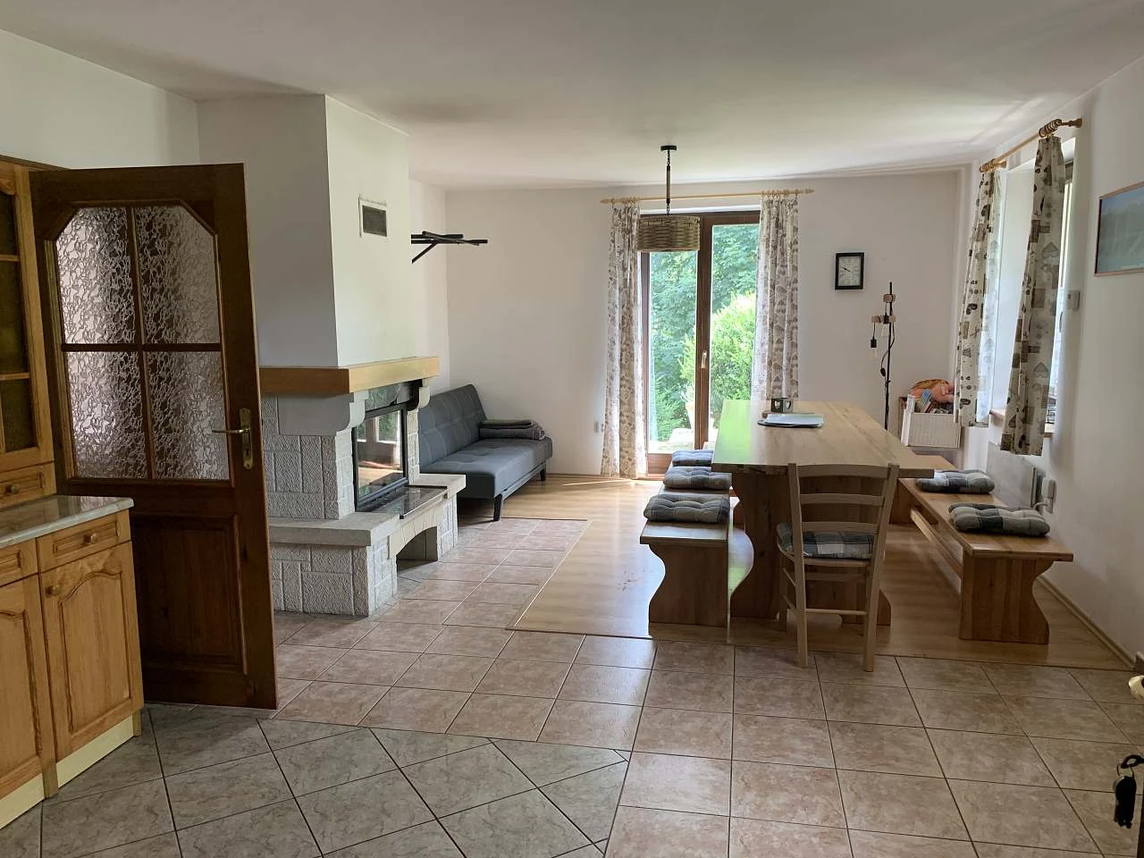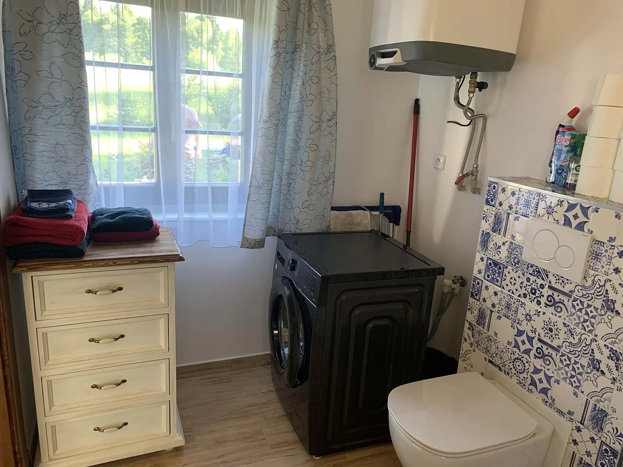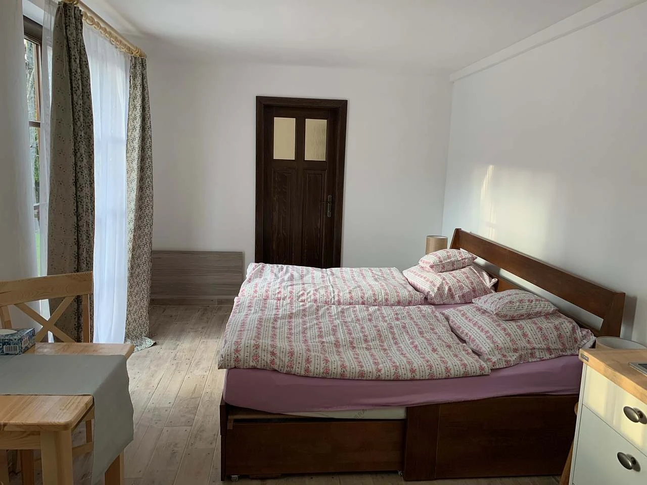 Dispozice: 3+kkRozloha: 110 m²Kapacita: 5 osob + 2 přistýlkyProstoryLožnice 1:1× manželská postel1× dětská postýlkaLožnice 2:3× samostatná postelObývací pokoj:2× gauč (možnost využití jako přistýlky s tenkou matrací)Krbová kamna na dřevoPropojení s dětskou hernouDětská herna:HračkyKoupelna:VanaWCPračka se sušičkouChodba:Bezpečnostní branka na schodyVybavení kuchyňského koutuNová kuchyňská linka (1/2025):Elektrický sporák s troubouMyčka nádobíMikrovlnná troubaLedniceKávovar na překapávanou kávuMlýnek na kávuRychlovarná konviceToustovač/topinkovačTyčový mixerElektrická remoskaZákladní vybavení v ceněTextil:Ložní prádloRučníkyUtěrkyDrogerie:Čistící prostředkyHygienické potřebyPotraviny:KořeníSůlOlejČaj (instantní a mletý)Káva (zrnková, mletá, instantní)CukrVytápěníKrbová kamna na dřevo (hlavní zdroj tepla)Elektrické keramické topné panely s termostaty v každém pokojiDřevo na topení v ceněDřevo na venkovní ohýnky v ceně