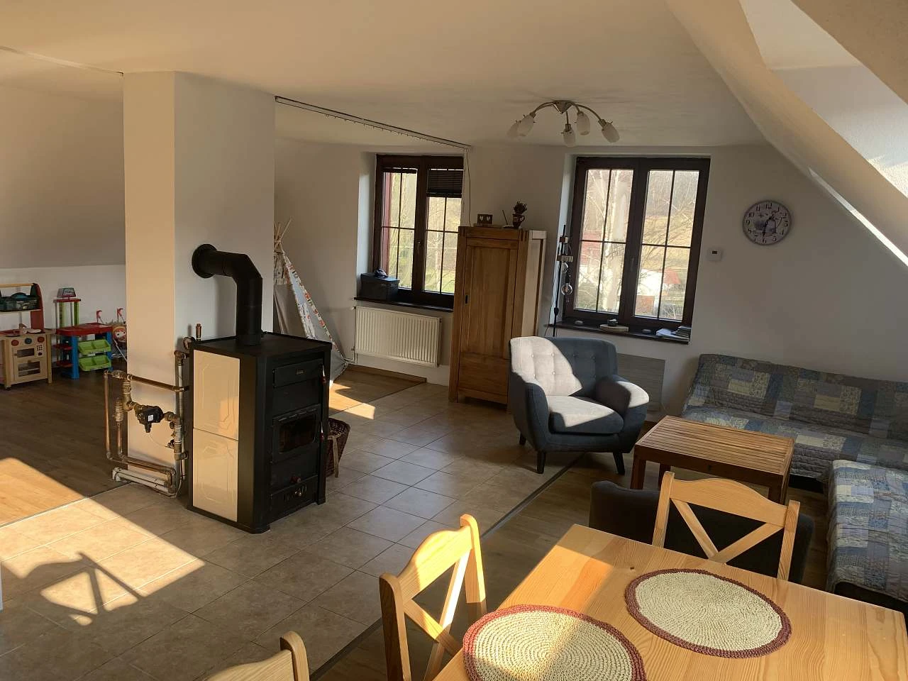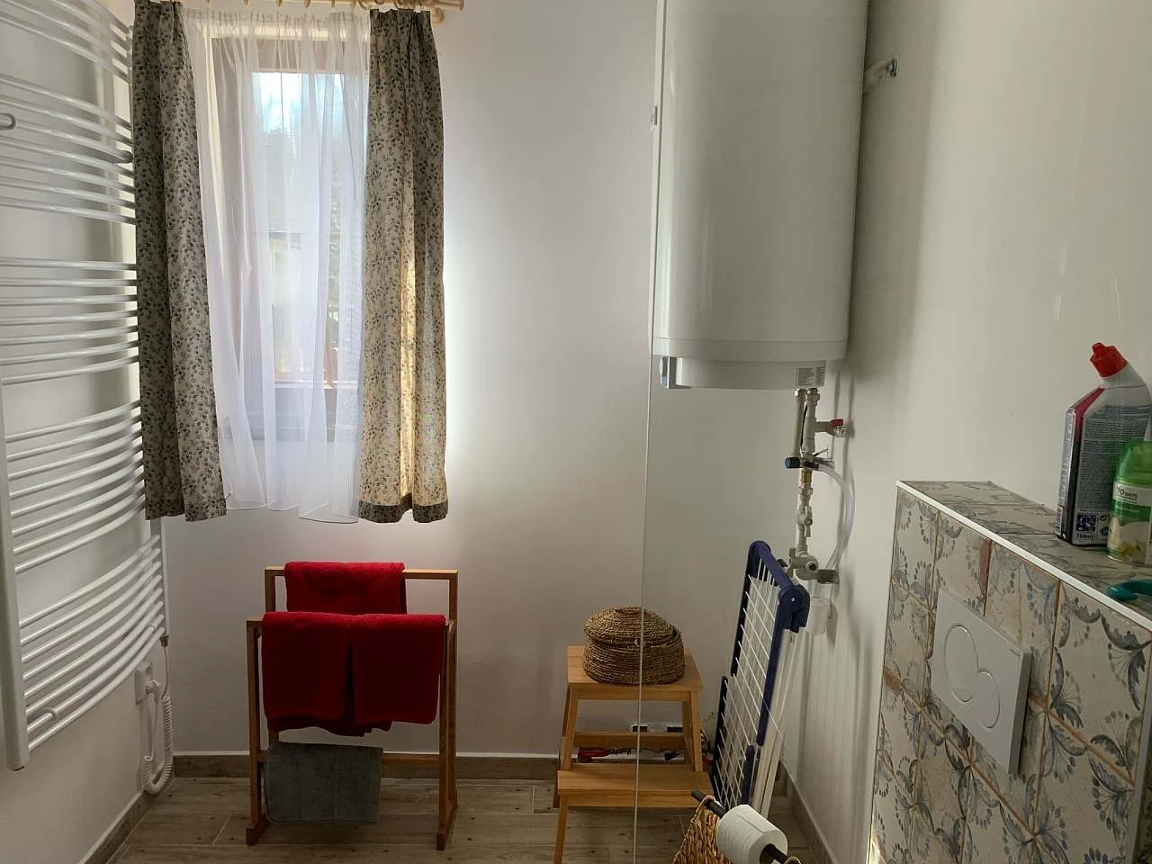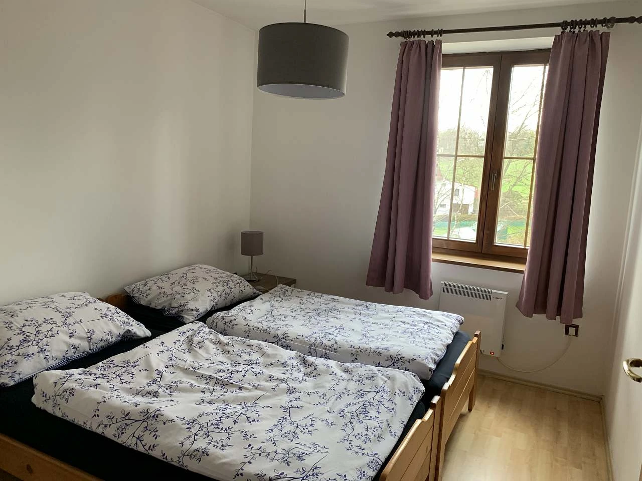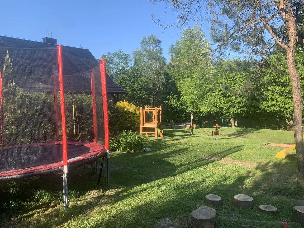 Dispozice: 3+kkRozloha: 110 m²Kapacita: 5 osob + 2 přistýlkyProstoryLožnice 1:1× manželská postel1× dětská postýlkaLožnice 2:3× samostatná postelObývací pokoj:2× gauč (možnost využití jako přistýlky s tenkou matrací)Krbová kamna na dřevoPropojení s dětskou hernouDětská herna:HračkyKoupelna:VanaWCPračka se sušičkouChodba:Bezpečnostní branka na schodyVybavení kuchyňského koutuNová kuchyňská linka (1/2025):Elektrický sporák s troubouMyčka nádobíMikrovlnná troubaLedniceKávovar na překapávanou kávuMlýnek na kávuRychlovarná konviceToustovač/topinkovačTyčový mixerElektrická remoskaZákladní vybavení v ceněTextil:Ložní prádloRučníkyUtěrkyDrogerie:Čistící prostředkyHygienické potřebyPotraviny:KořeníSůlOlejČaj (instantní a mletý)Káva (zrnková, mletá, instantní)CukrVytápěníKrbová kamna na dřevo (hlavní zdroj tepla)Elektrické keramické topné panely s termostaty v každém pokojiDřevo na topení v ceněDřevo na venkovní ohýnky v ceně