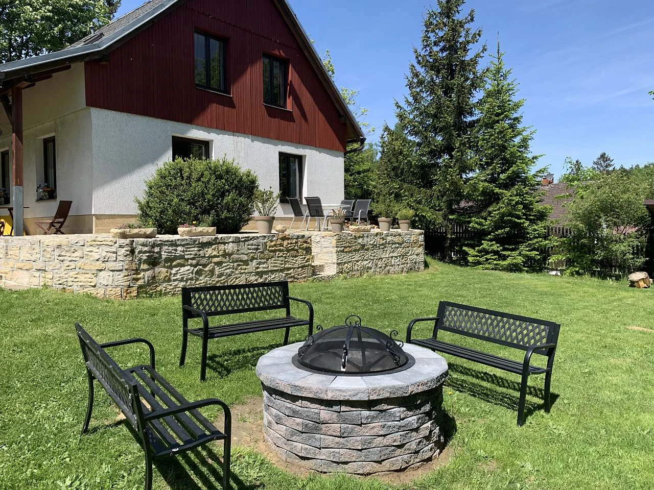 Každá jednotka má vlastní venkovní posezení. Na zahradě je k dispozici klasické ohniště, zděné ohniště s grilem a další zděné ohniště u domečku. Pokud si hosté pronajmou oba apartmány současně, je možné na jejich žádost uzavřít studio, aby měli celý dům pro sebe. Uzavření se netýká domečku.
