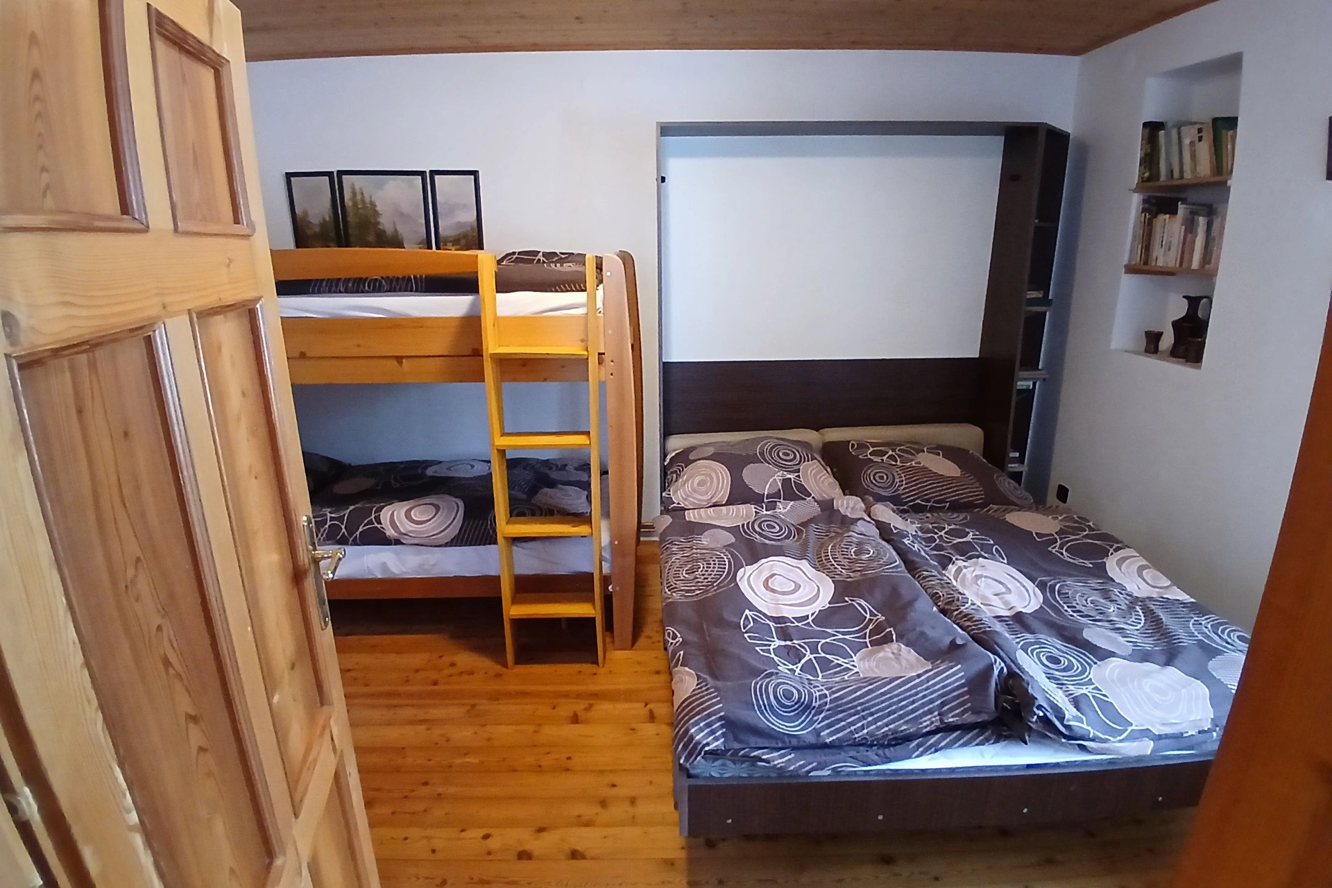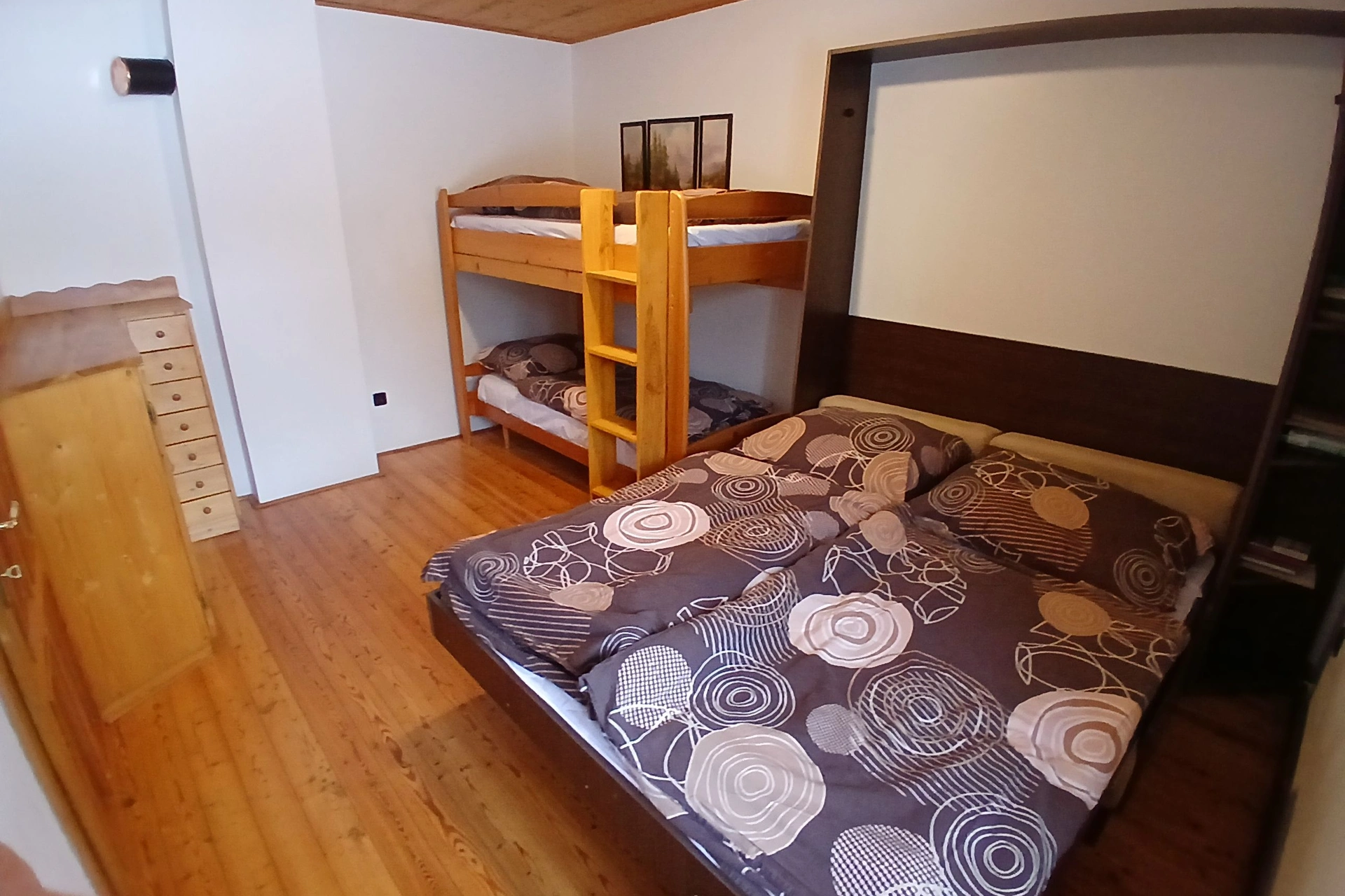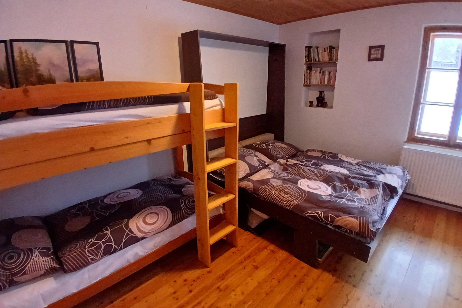 - 1× čtyřlůžková ložnice (manželská postel + patrová postel)