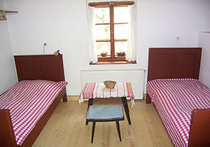- Apartmán pro 5 osob: kuchyň s manželskou postelí a samostatným lůžkem, kachlová kamna, plynový vařič, mikrovlnka, kávovar, varná konvice; samostatný pokoj se 2 lůžky; koupelna se sprchovým koutem a WC