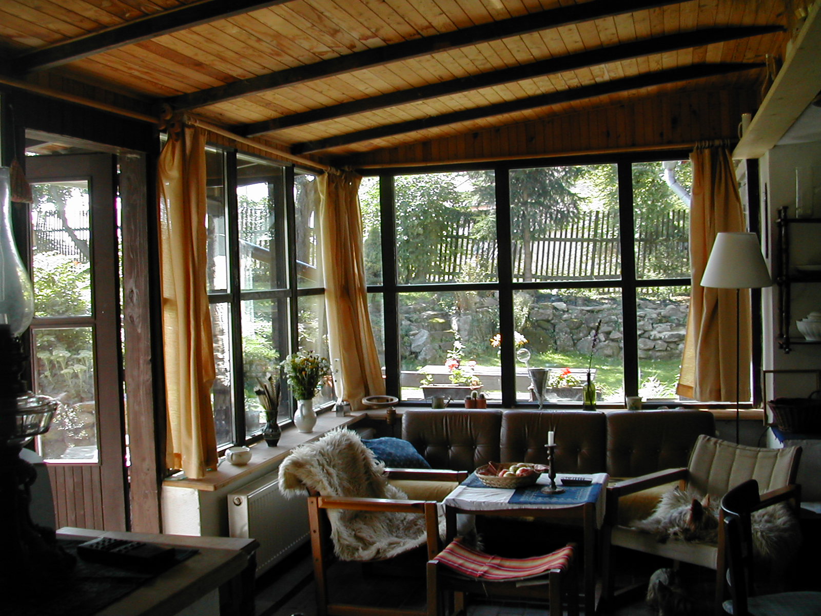 veranda s vybavenou kuchyní, sporákem, plyn. vařičem,myčkou, mikrovlnkou, kávovarem, TV. Koupelna s vanou, WC a pračkou.