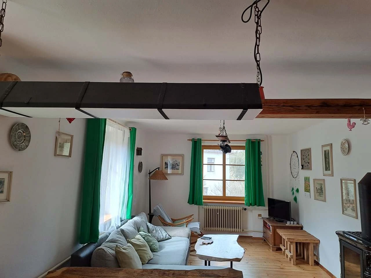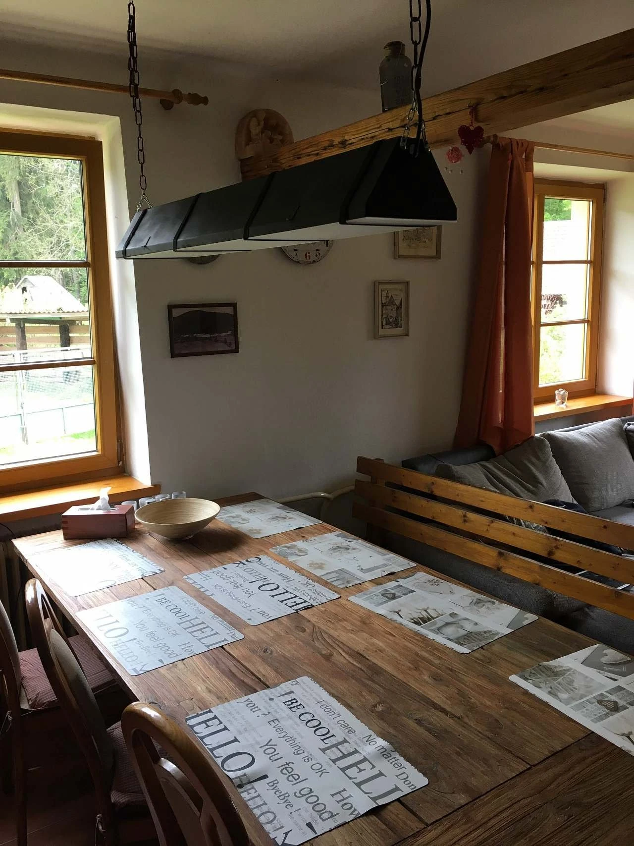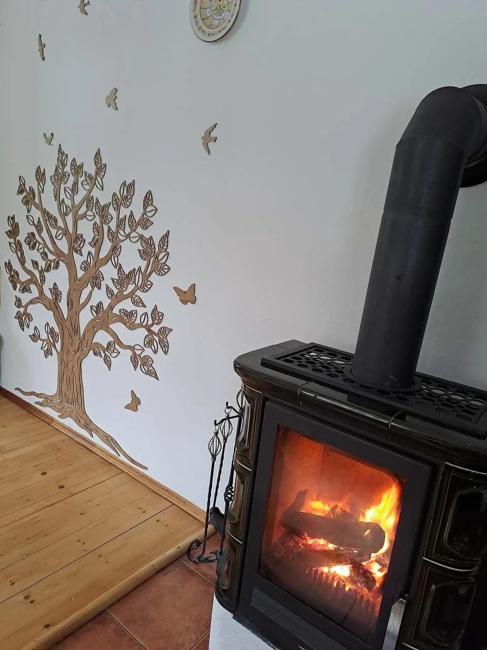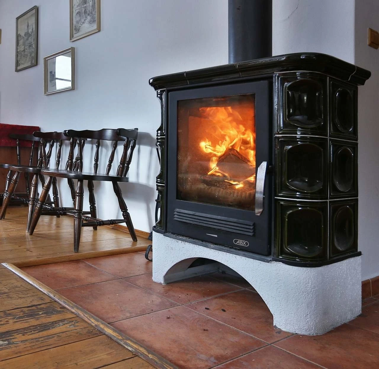 Chalupa je vytápěná elektrokotlem a krbovými kamny na tuhá paliva. V horním patře je klimatizace.