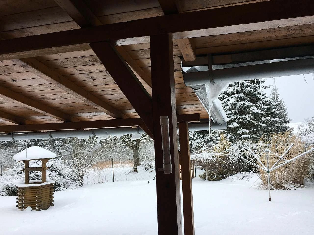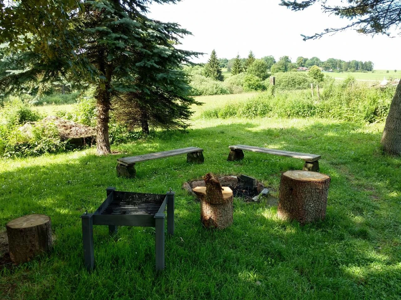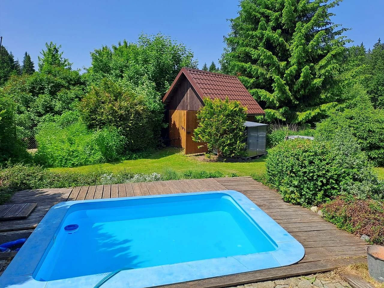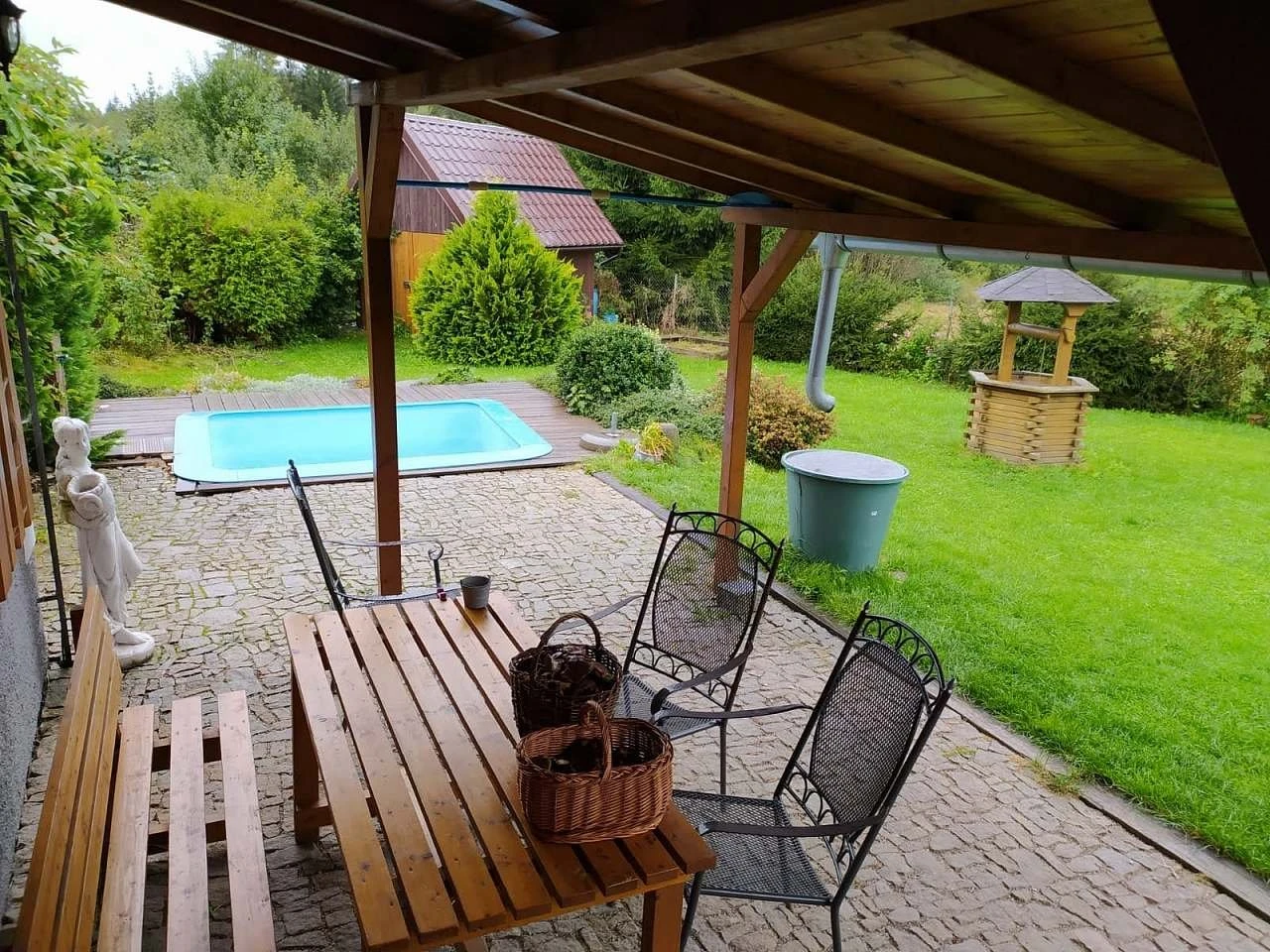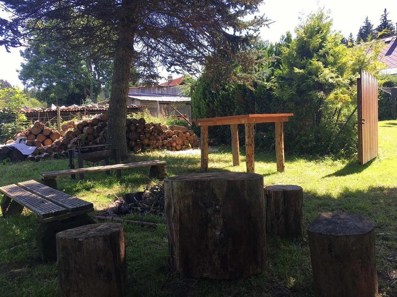 Venkovní vybavení: posezení pod pergolou s výhledem na les, terasa, zahradní nábytek, ohniště, gril / barbecue, venkovní bazén (v provozu červenec–srpen), Wall box pro dobíjení elektromobilů.