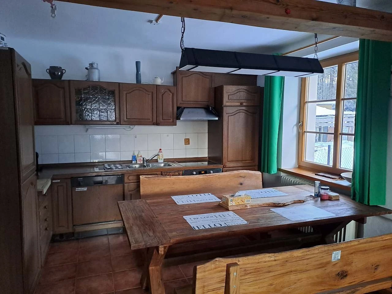 Chalupa má dispozici 3+kk. V přízemí je prostorný obývací pokoj s kuchyní, vstupní síň, oddělené WC a koupelna s vanou. V podkroví se nachází velký pokoj se samostatnou koupelnou včetně WC. Celkem jsou k dispozici 2 koupelny a 2 WC.