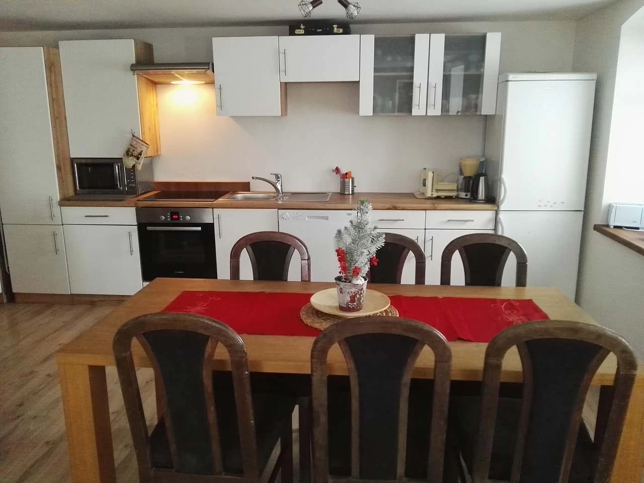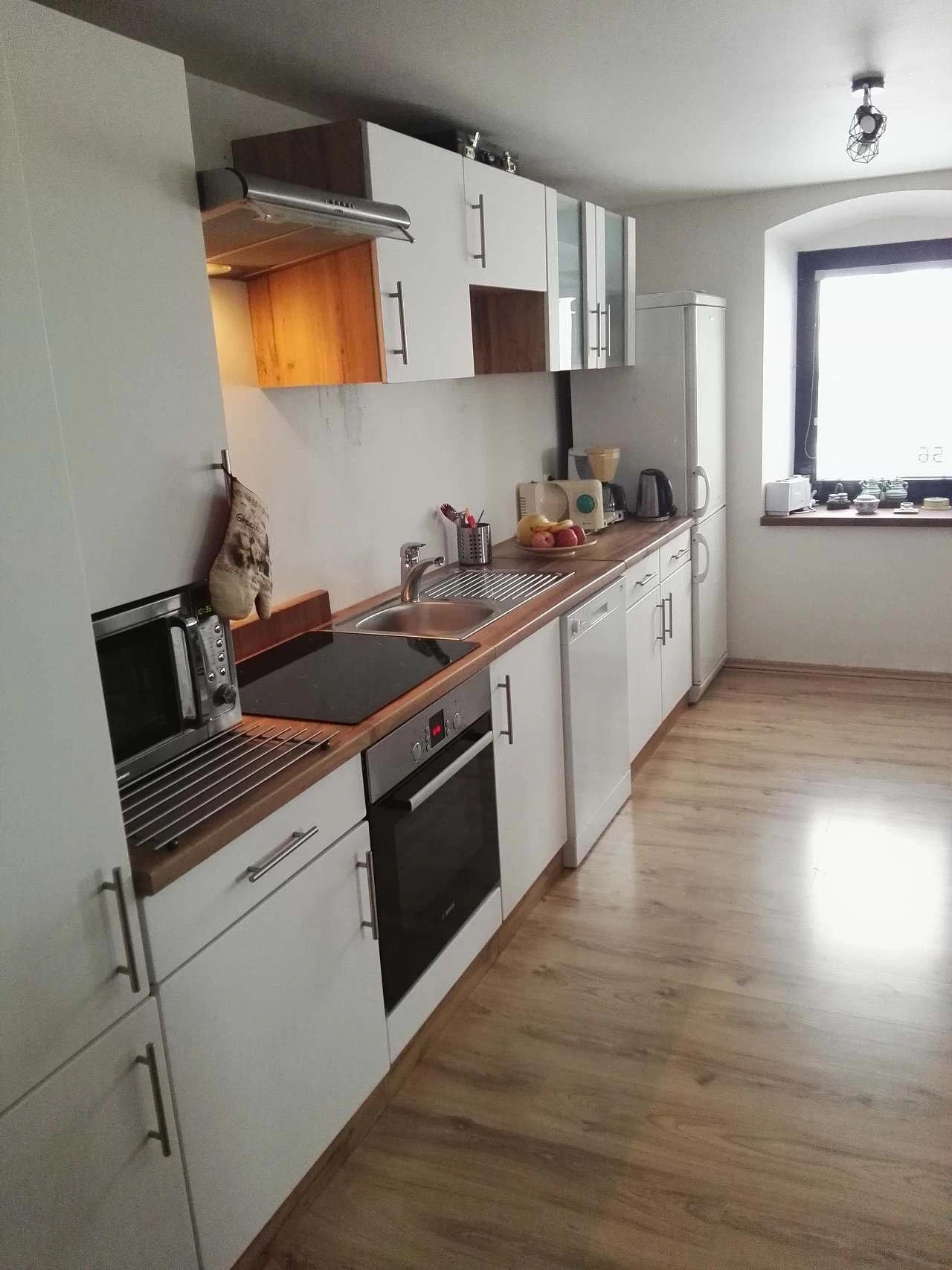 - plně vybavená kuchyně (pákový kávovar, mlýnek na kávu, mikrovlnná trouba, myčka, trouba, lednice, rychlovarná konvice)