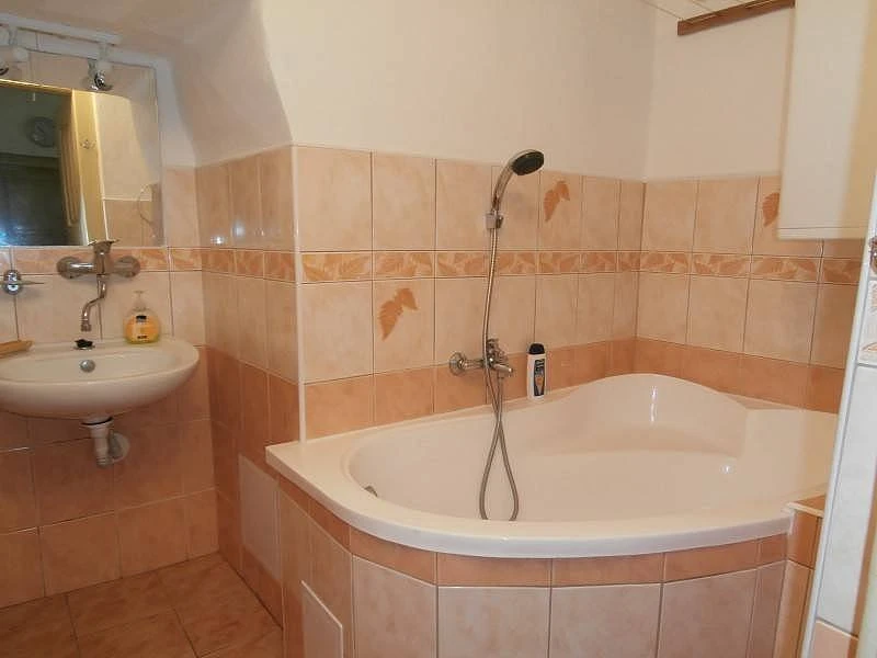 - Žlutý apartmán: vana se sprchou, umyvadlo, fén, samostatné WC