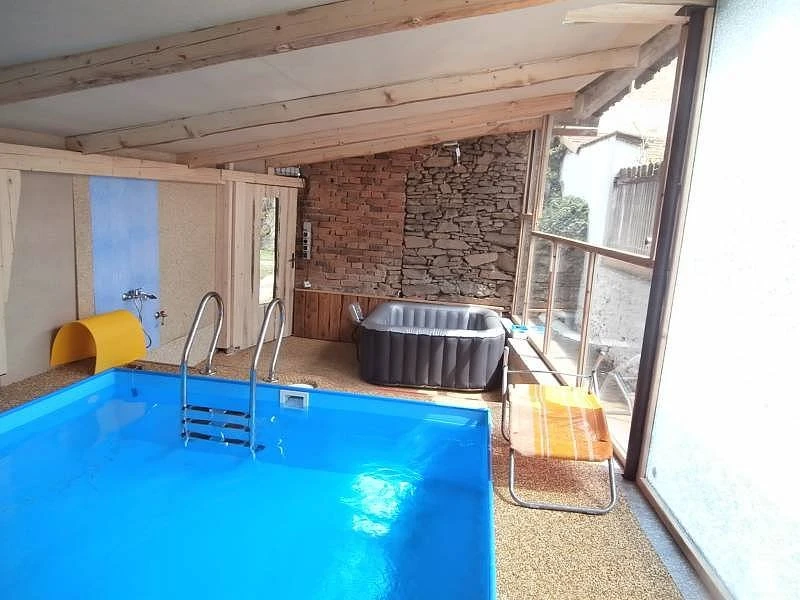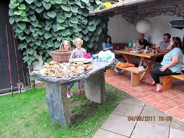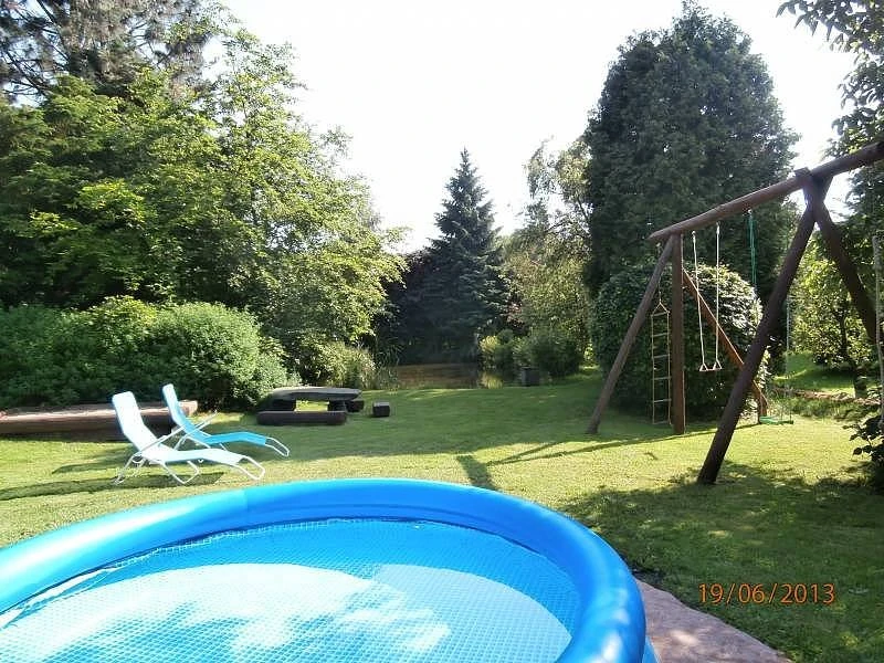 Součástí objektu je velký oplocený pozemek o rozloze 3 000 m², který zahrnuje ovocnou a okrasnou zahradu, potok a soukromý rybník (22 × 12 m) s možností rybaření za poplatek. Pro letní využití je k dispozici venkovní nadzemní bazén (průměr 3 m), otevřené ohniště, venkovní krb a posezení. Objekt je vhodný pro děti (pískoviště, houpačky, trampolína, badminton, petanque) a je plně oplocen, což ocení rodiny i hosté se psy – mazlíčci jsou vítáni.