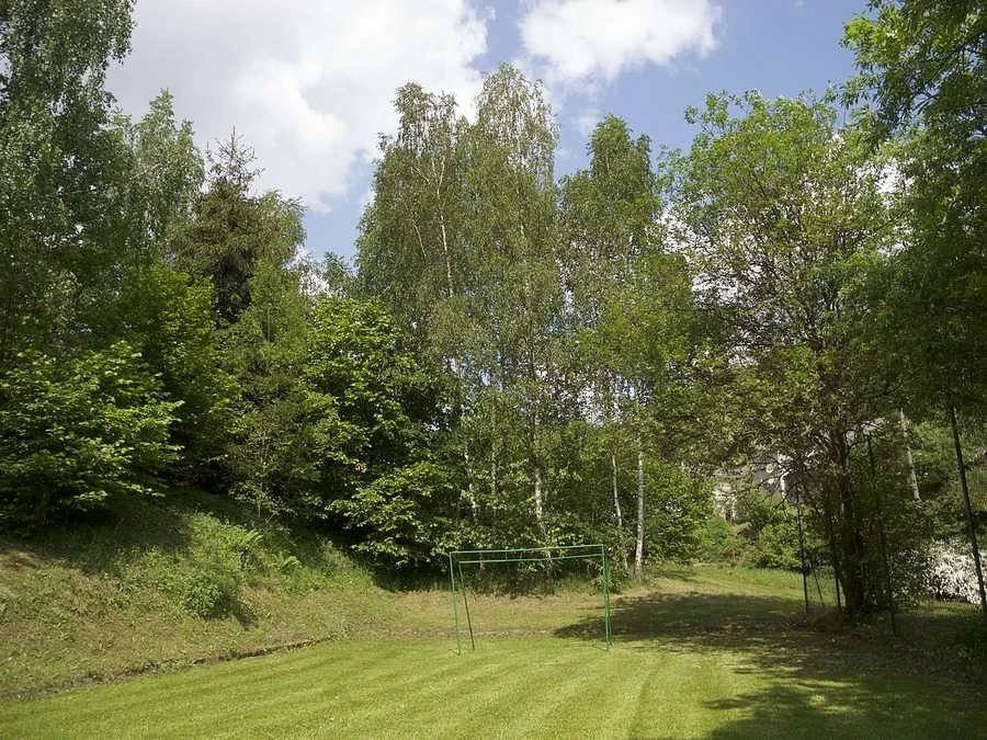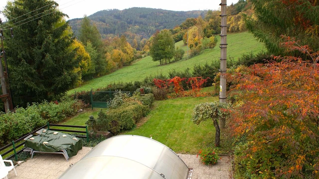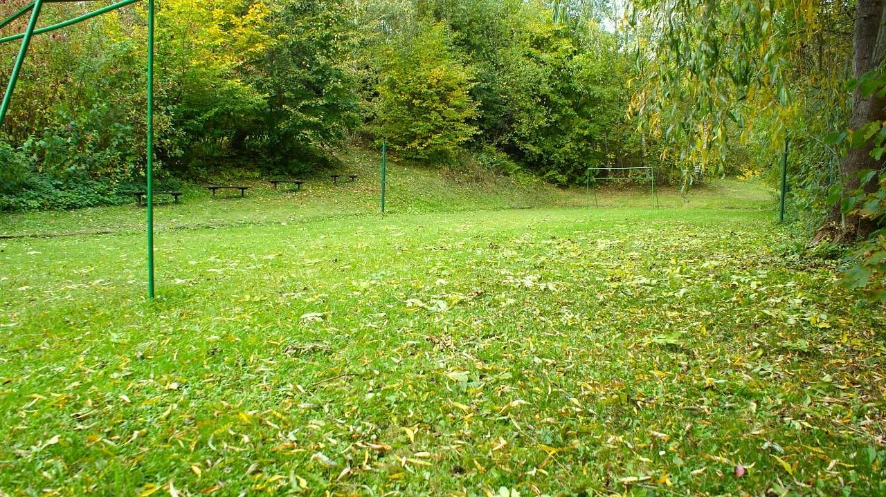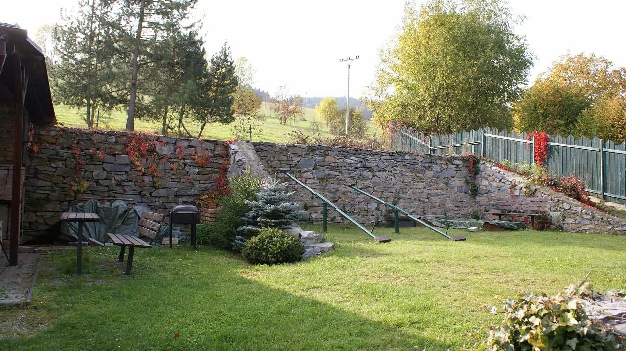 Venku najdete terasu, kryté posezení s grilem, ohniště, dětské prvky (houpačky, pískoviště) a venkovní zapuštěný bazén. U chalupy je dostatek parkovacích míst. Objekt stojí na klidném místě u lesa, obklopený loukami, s přístupem na travnaté hřiště.
