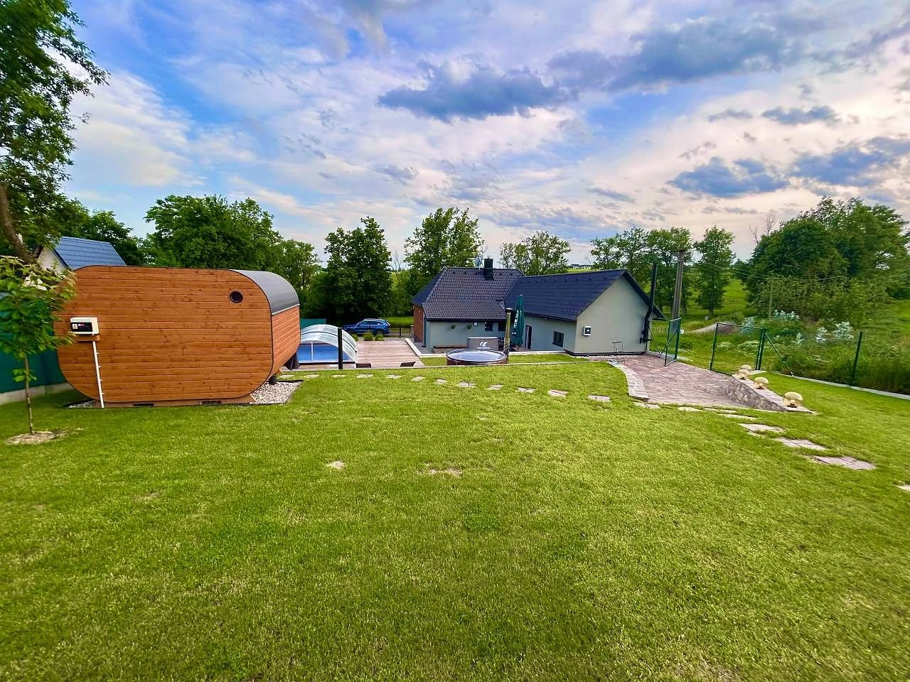 Venkovní část objektu zahrnuje oplocenou zahradu, venkovní bazén, koupací vířivkový sud, gril, dětské pískoviště a posezení. Celoročně je k dispozici sauna. Objekt je vhodný pro pobyt s dětmi i se zvířaty.