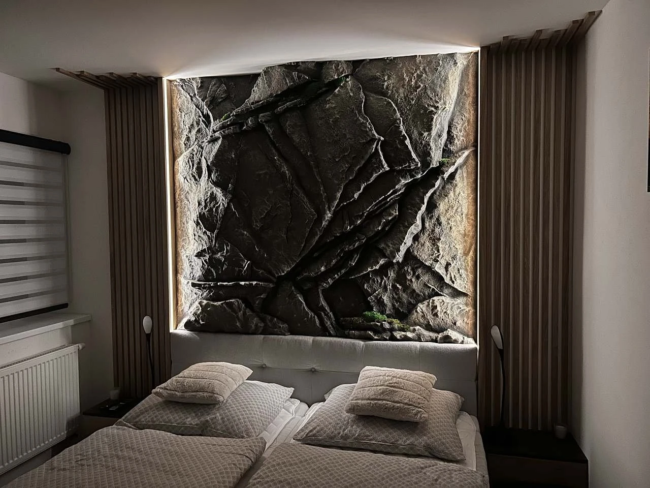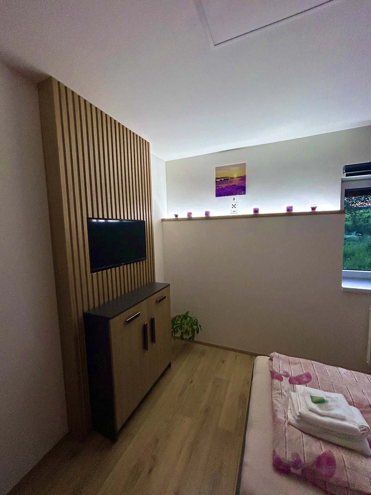 - Ložnice: velká manželská postel pro 2 osoby, TV, elektrické venkovní rolety, vnitřní rolety zebra.