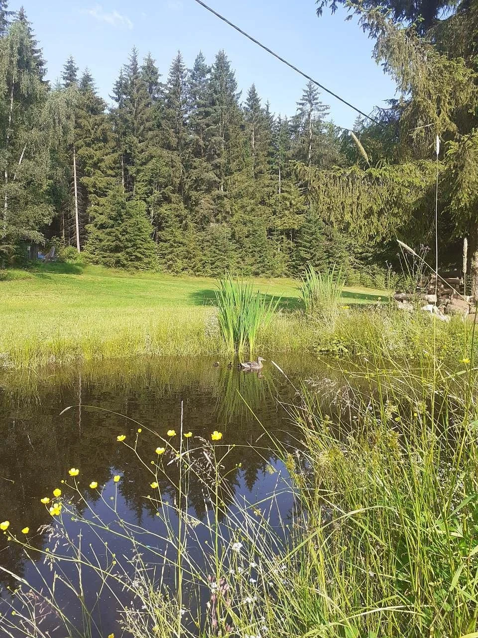 - Kompletně zařízená kuchyň s jídelním koutem: elektrický sporák, kamna na pevná paliva, lednice, mikrovlnná trouba, varná konvice, nádobí, utěrky.