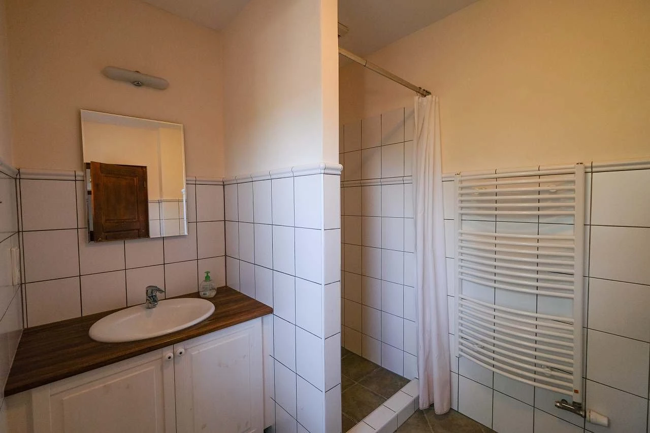 Sociální zařízení tvoří 2 koupelny a 2 WC. V objektu je ústřední vytápění, k dispozici jsou i krbová kamna a ohřev vody kotlem.