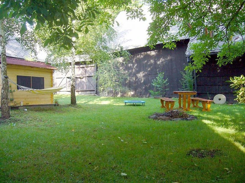 - velká zahrada s ovocným sadem a hřištěm