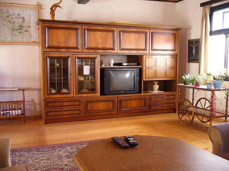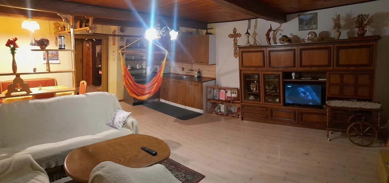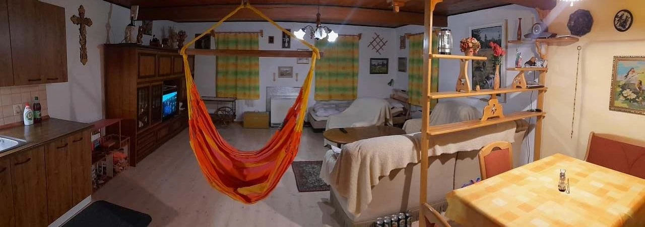 - obývací světnice: barevná televize, rádio, konferenční stolek, sedačka s křesly, závěsné houpací křeslo
