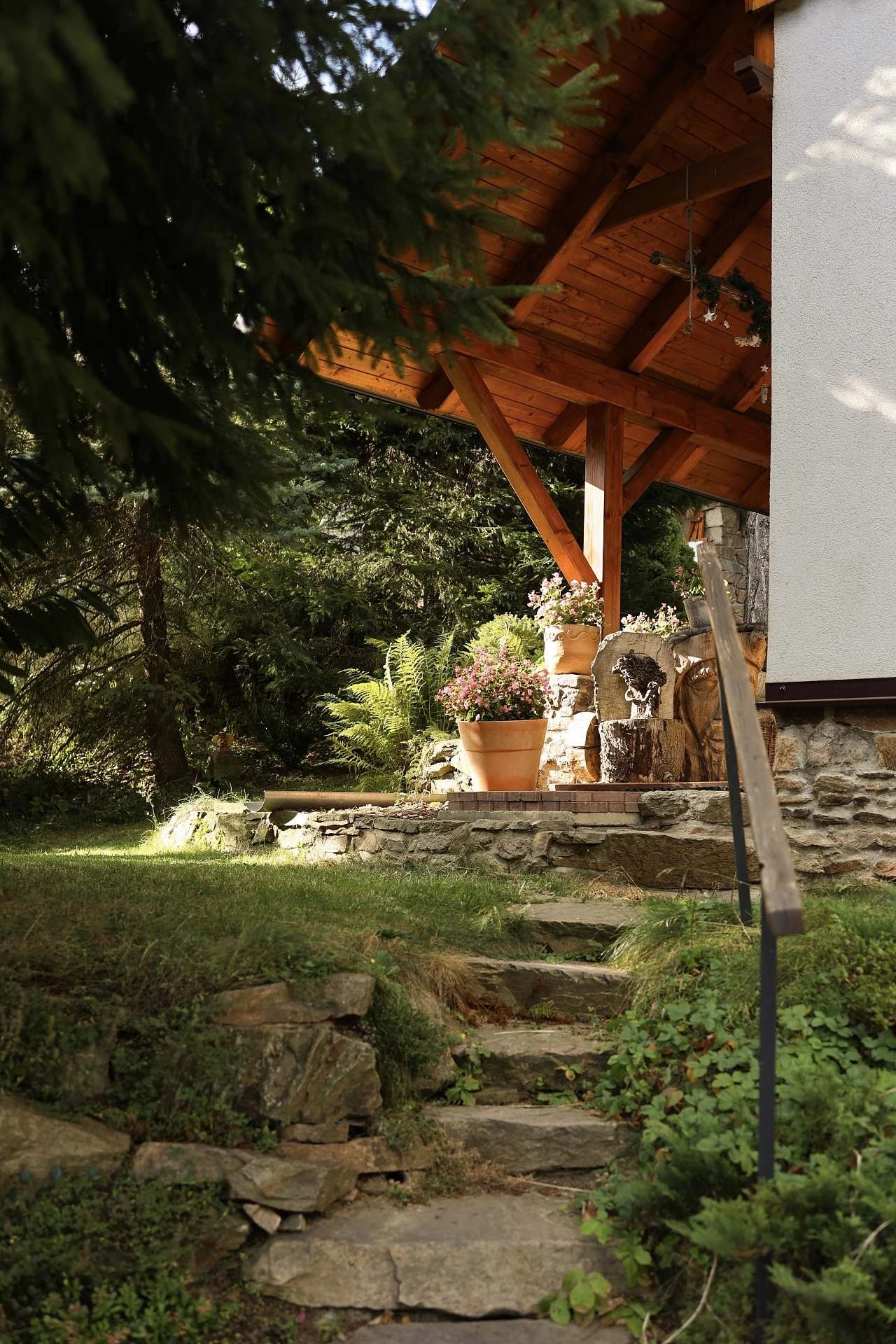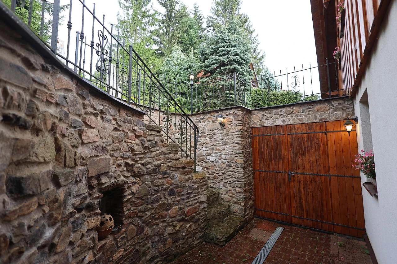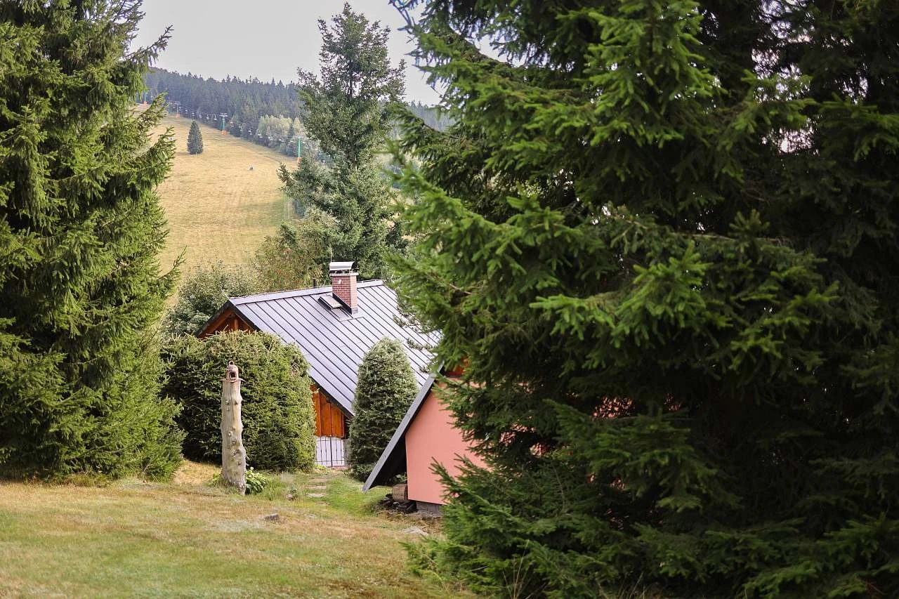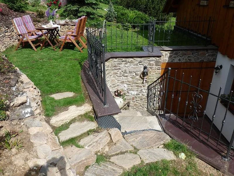 Venkovní prostory tvoří terasa, zahrada s travnatou plochou, zahradní nábytek, venkovní krb a gril. Objekt se nachází u lesa a nabízí parkování (v letní sezóně u objektu, v zimě na centrálním parkovišti).