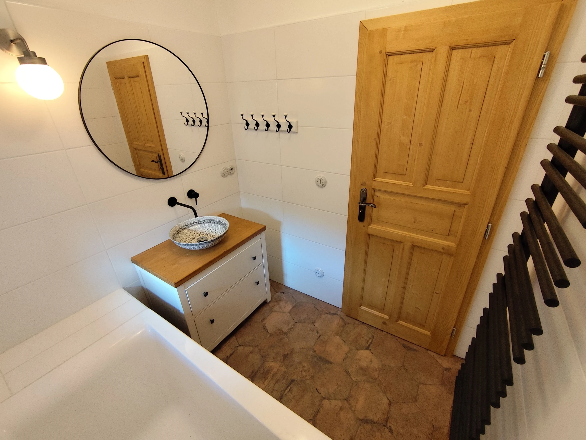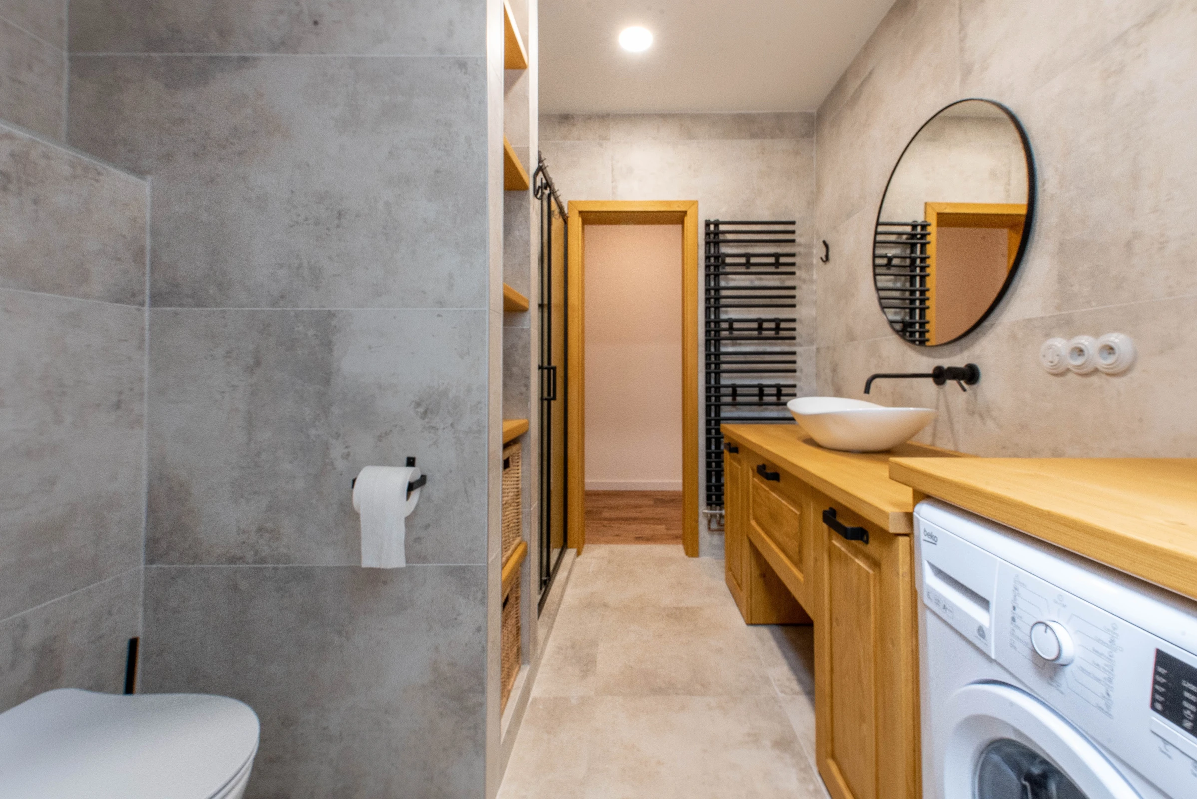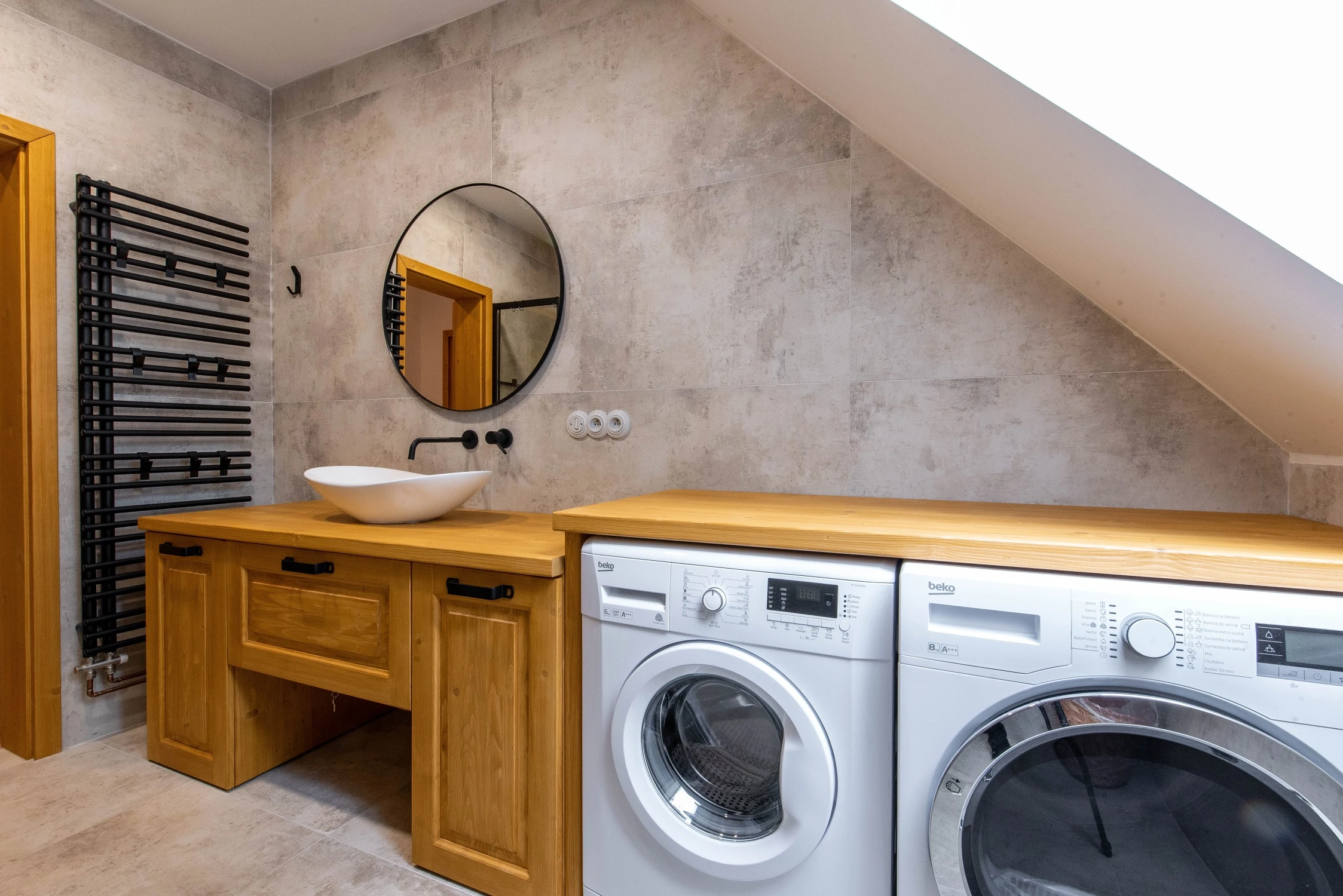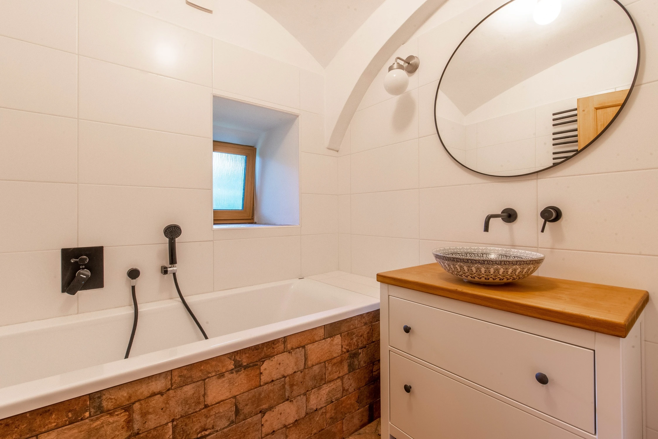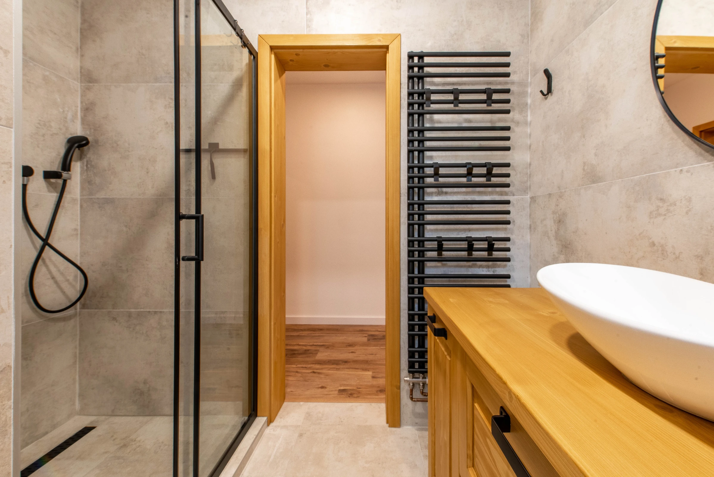 - 2 koupelny (vana a sprchový kout) + další walk-in sprchový kout ve wellness místnosti.