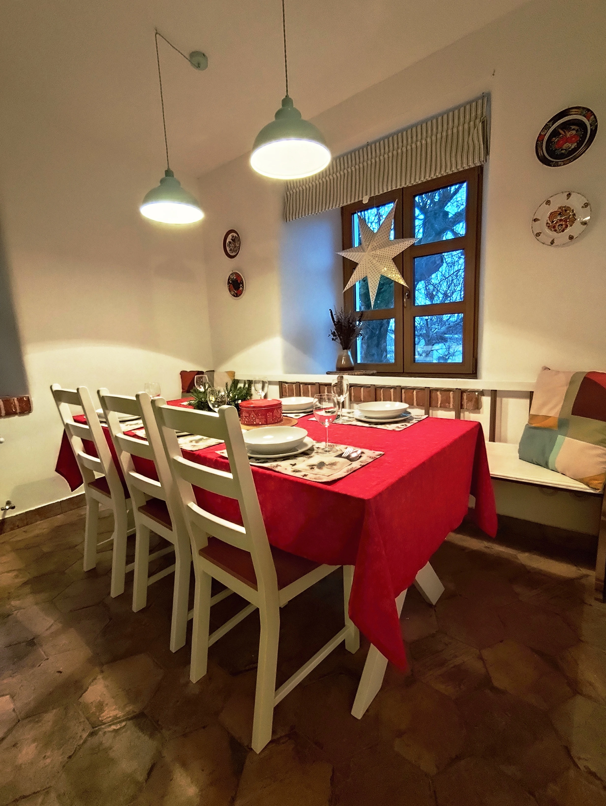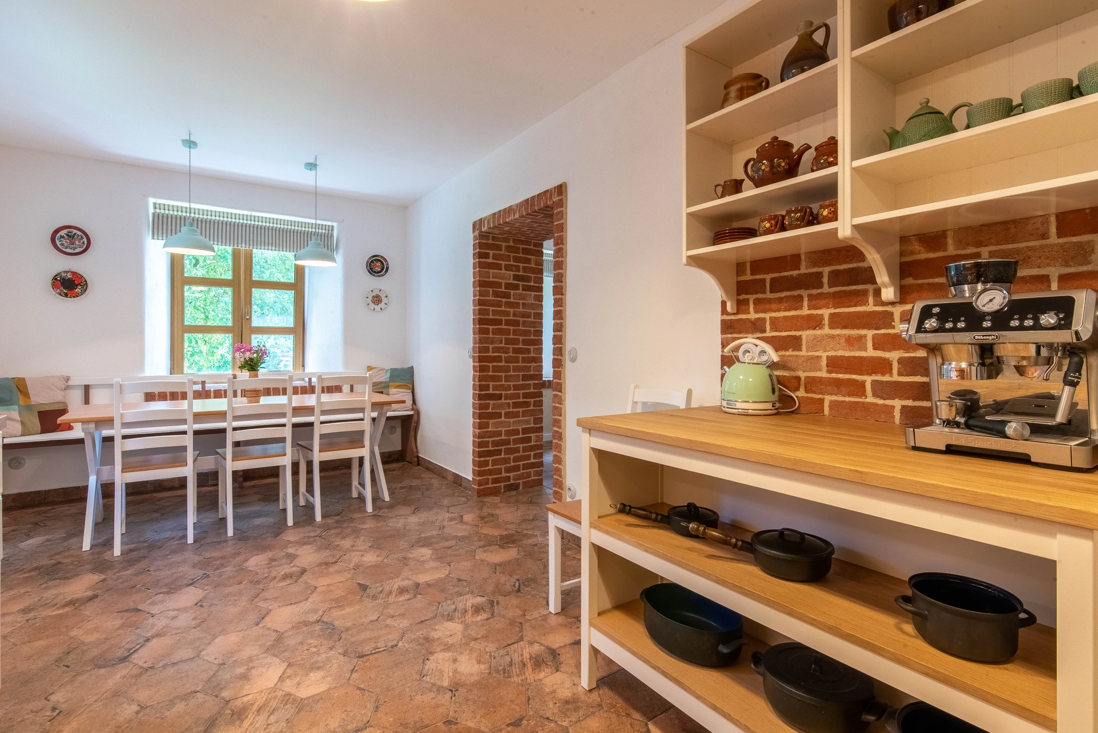 - Jídelna s jídelním stolem, lavicí a židlemi.