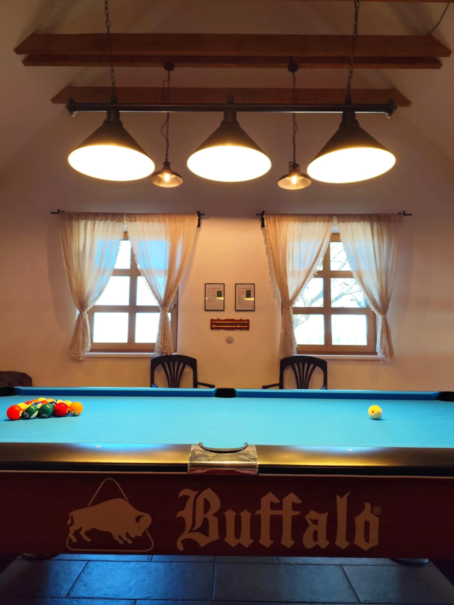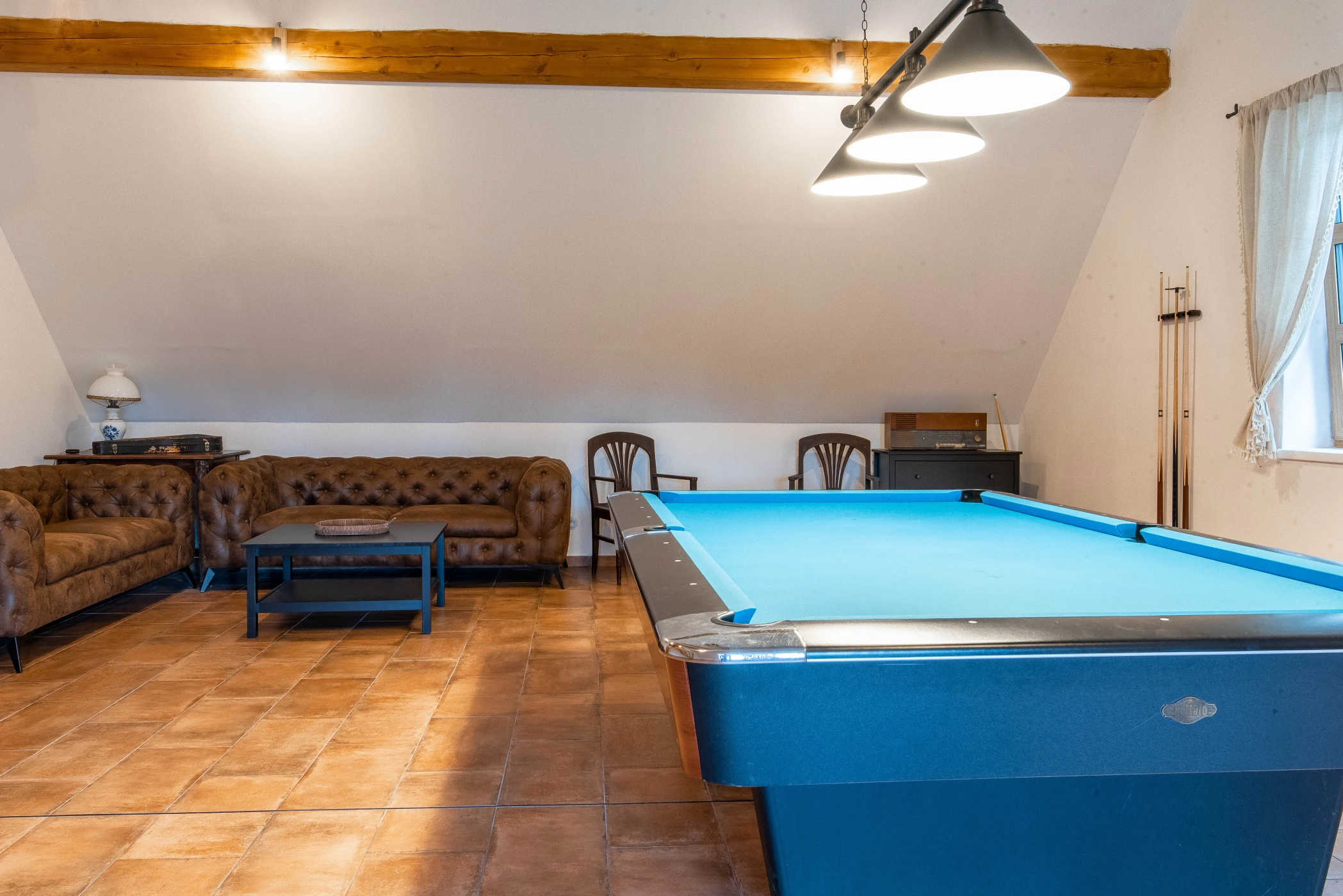 - Prostorná herna s devítistopým kulečníkem
