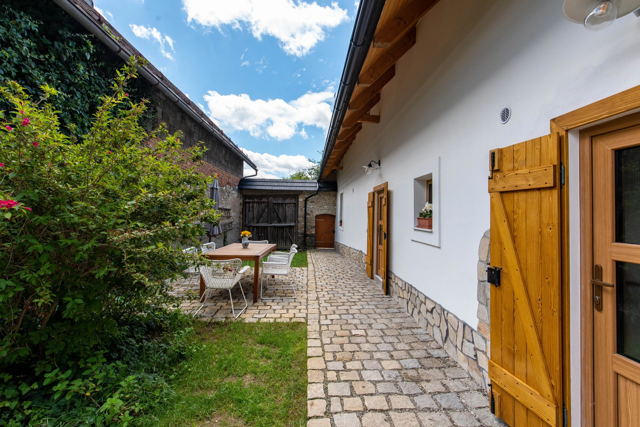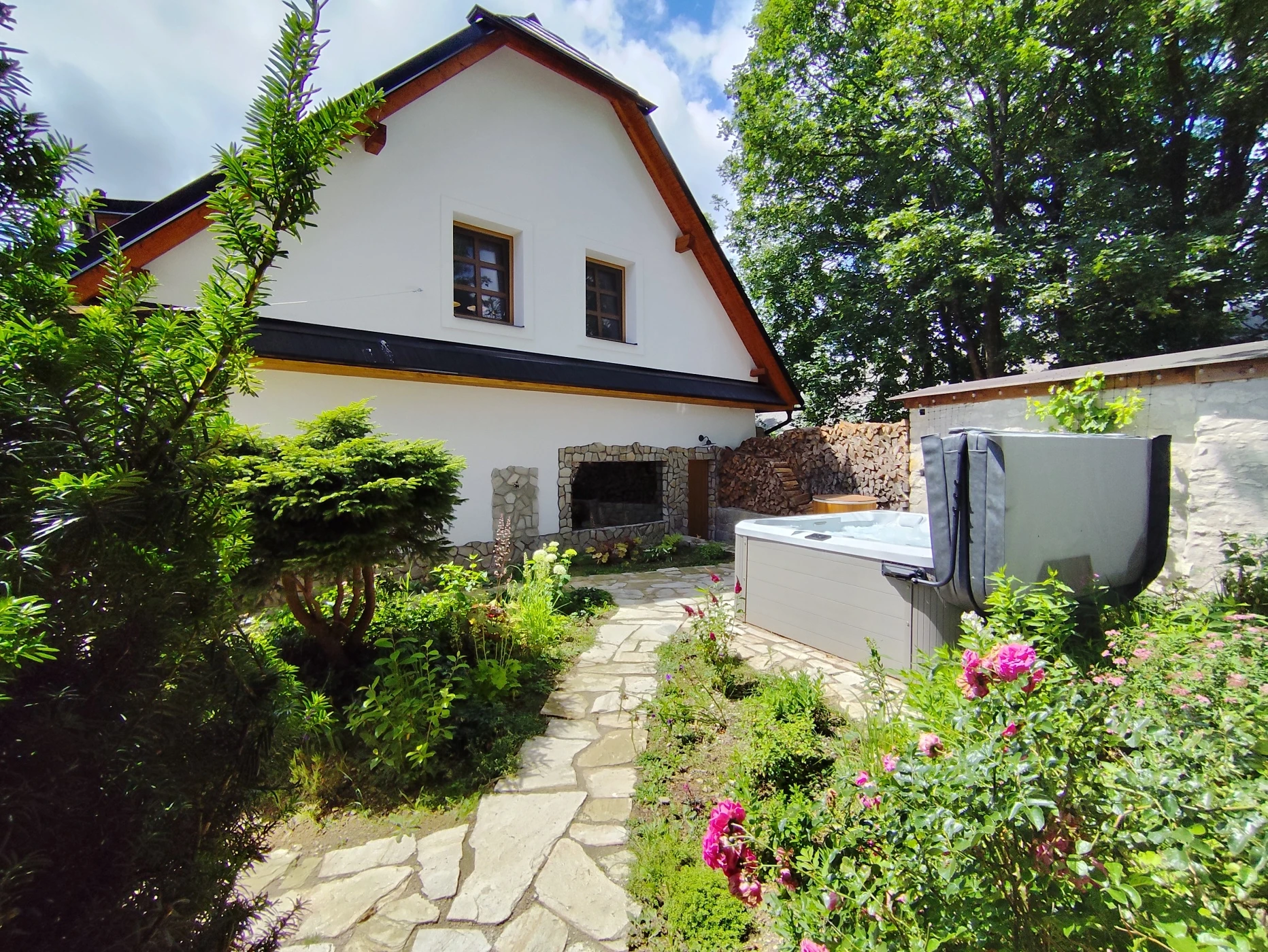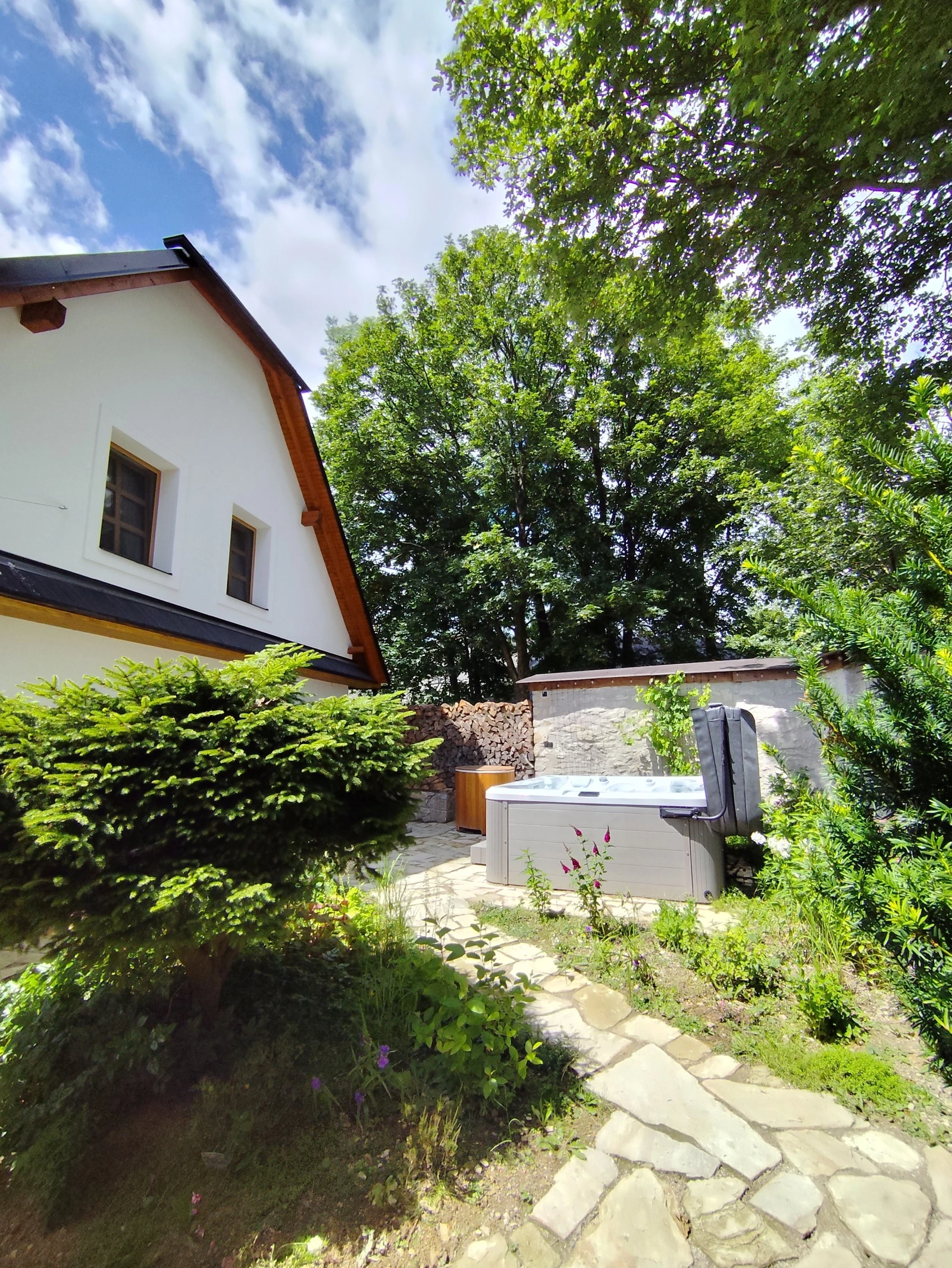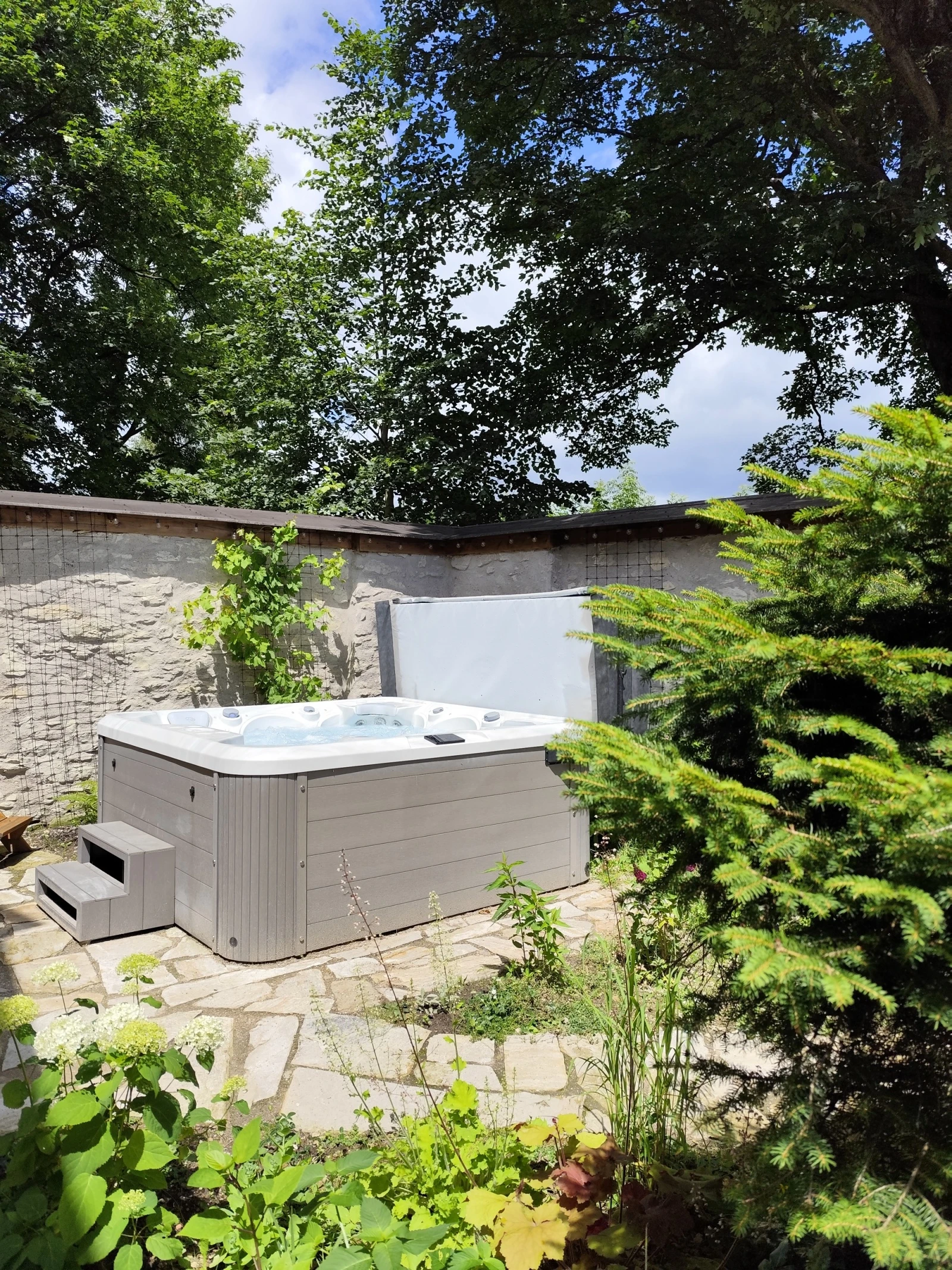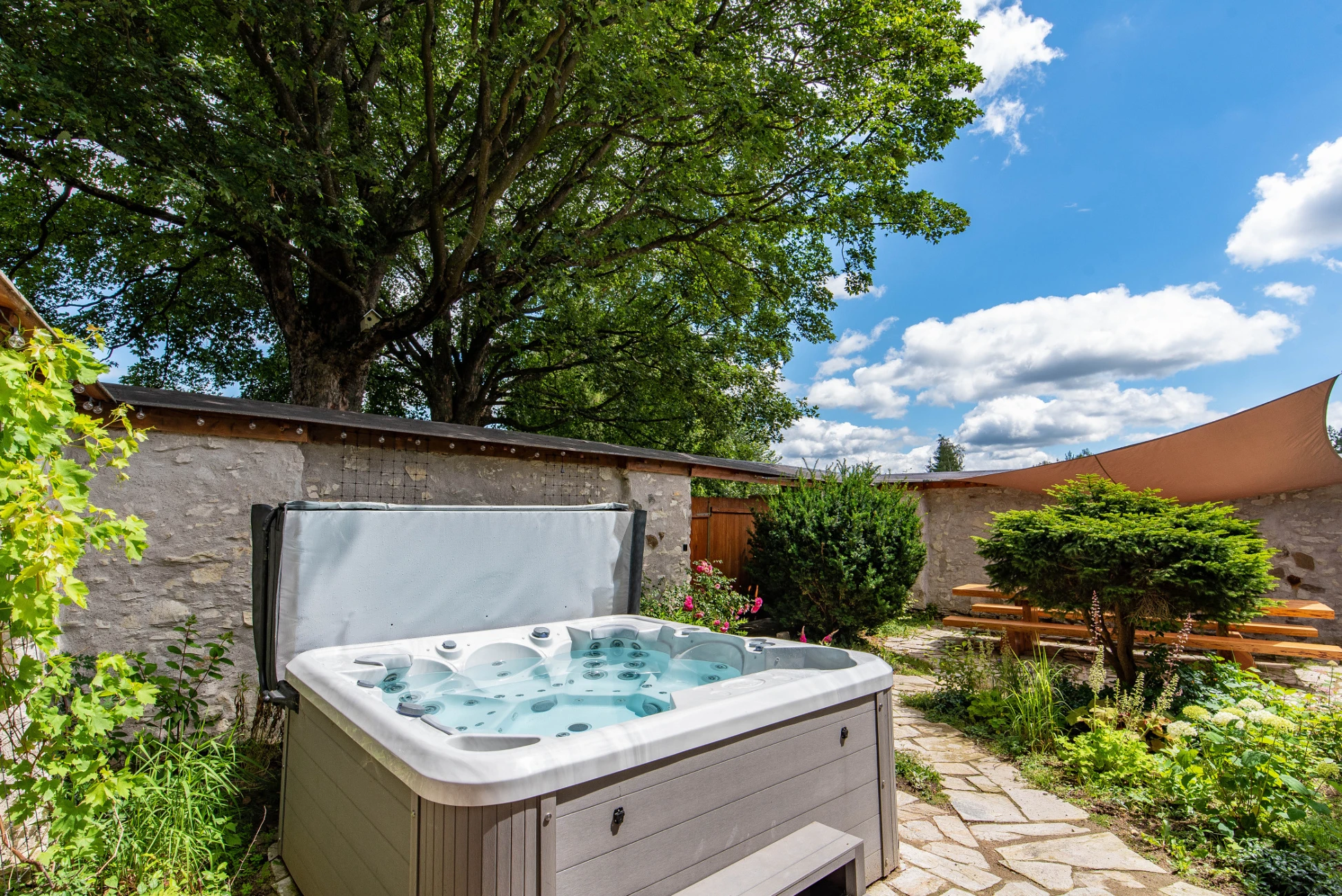 - Venkovní vířivka v uzavřeném dvoře poskytující soukromí a klid.