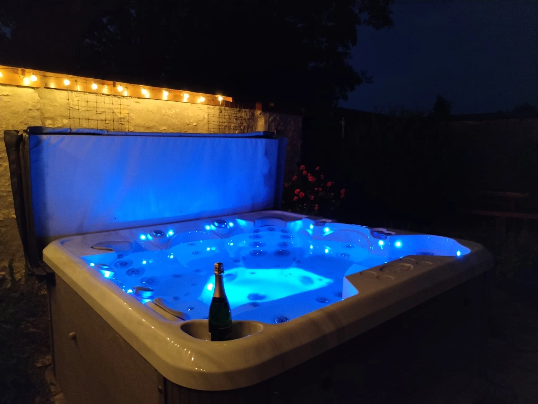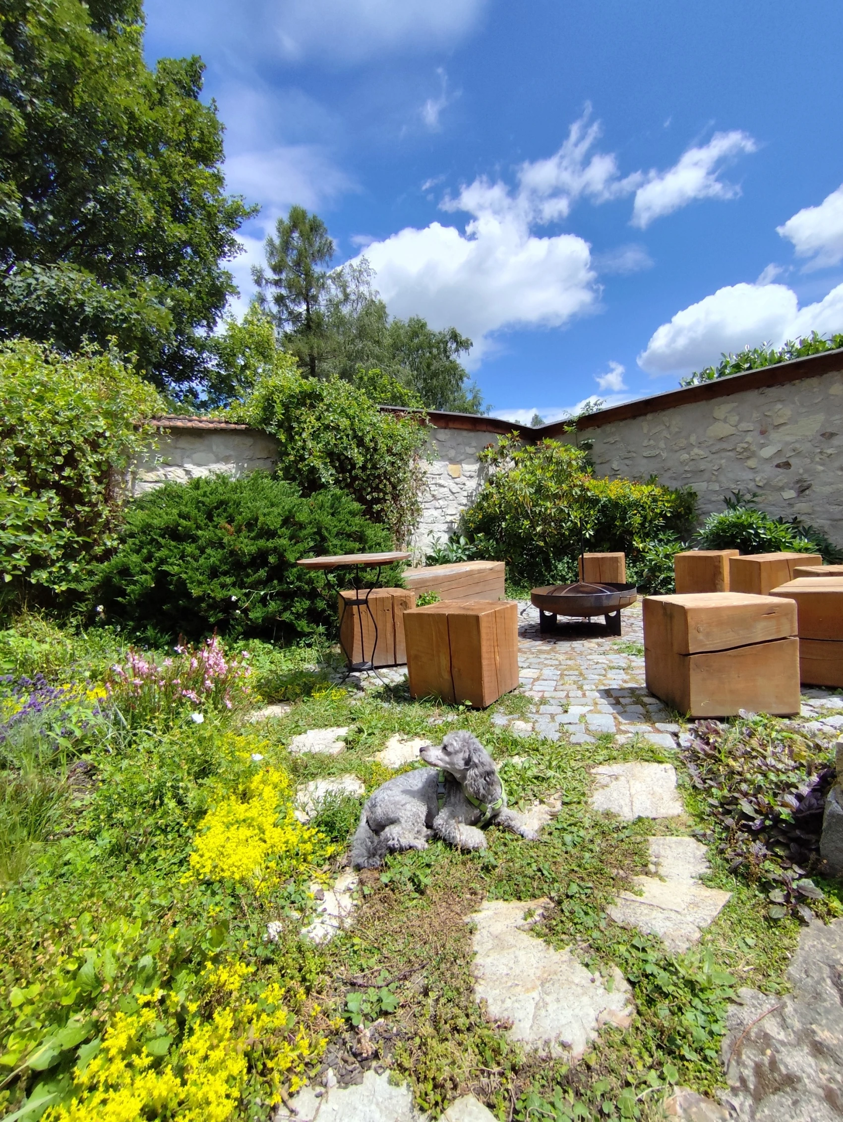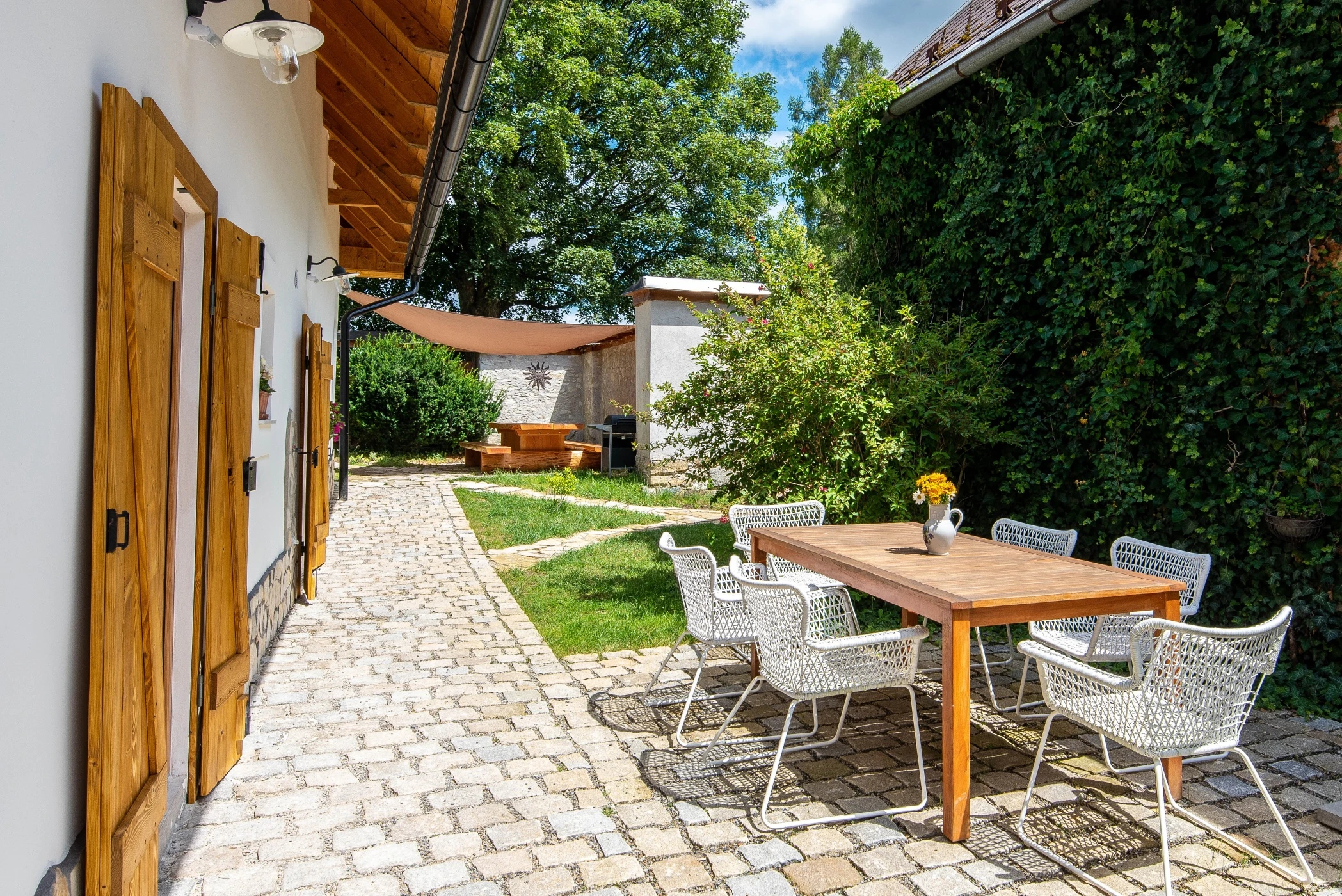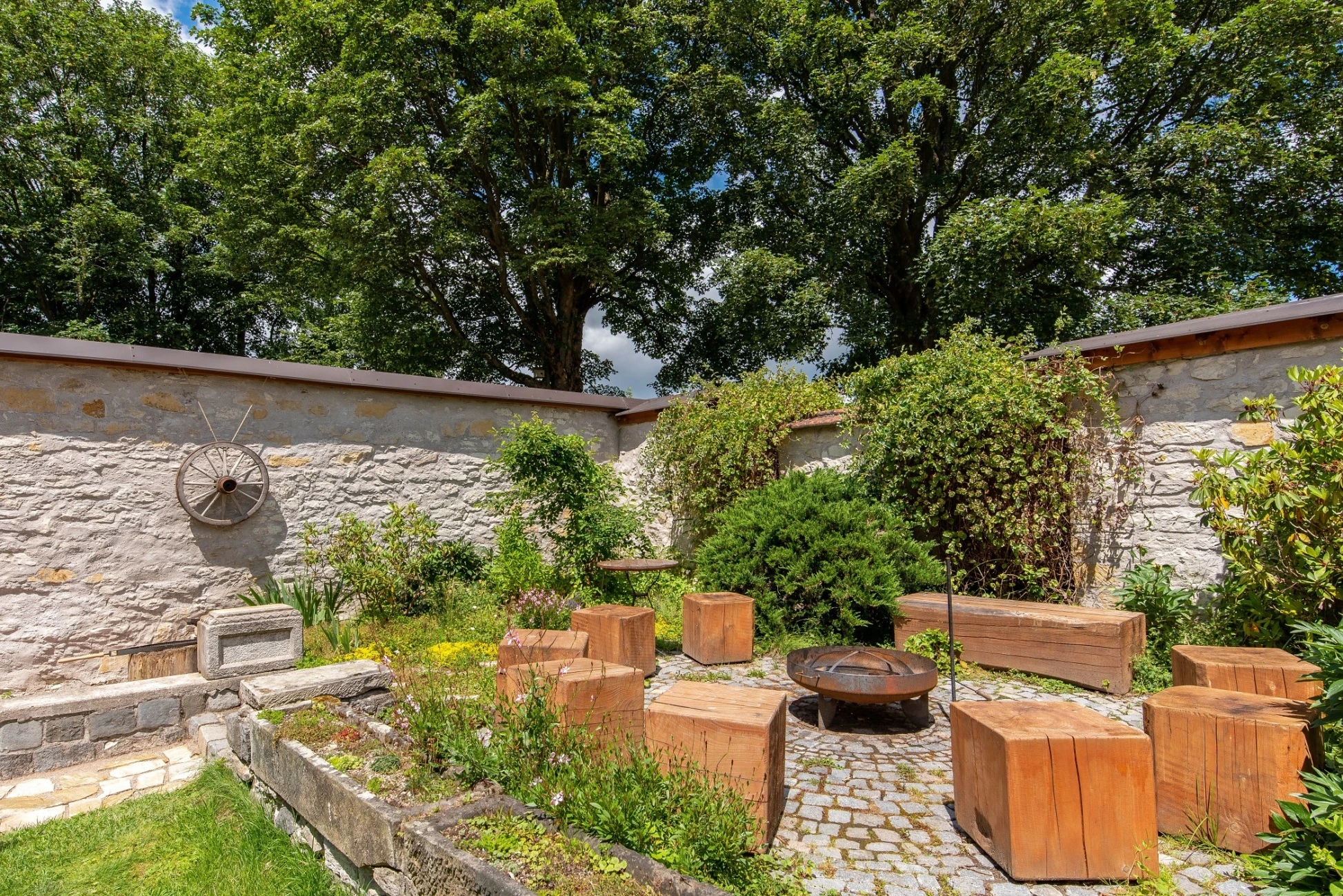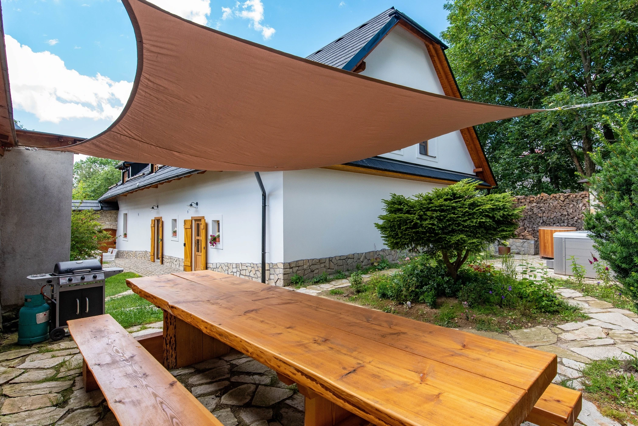 - Venkovní vířivka v uzavřeném dvoře poskytující soukromí a klid.