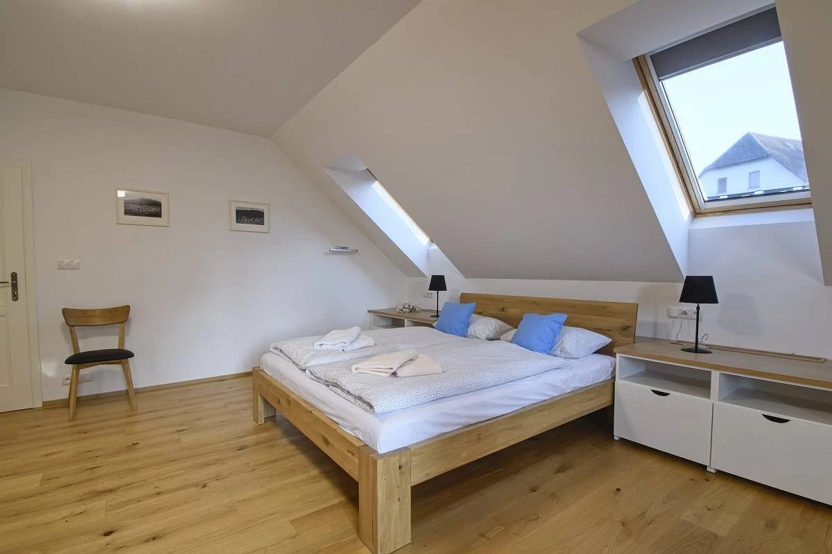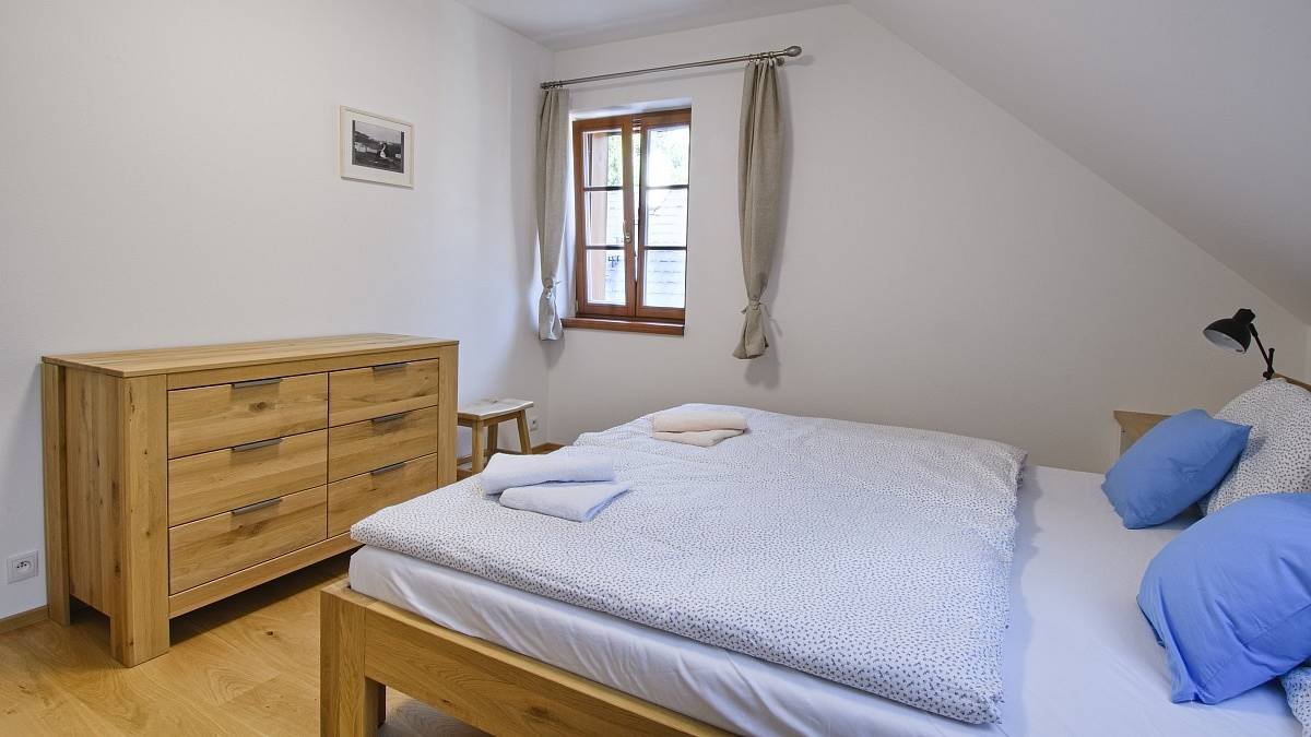 - Pokoj 3: 1 x dvoulůžko, rozkládací pohovka (140 cm, možnost 2 lůžek), sprcha, umyvadlo, WC