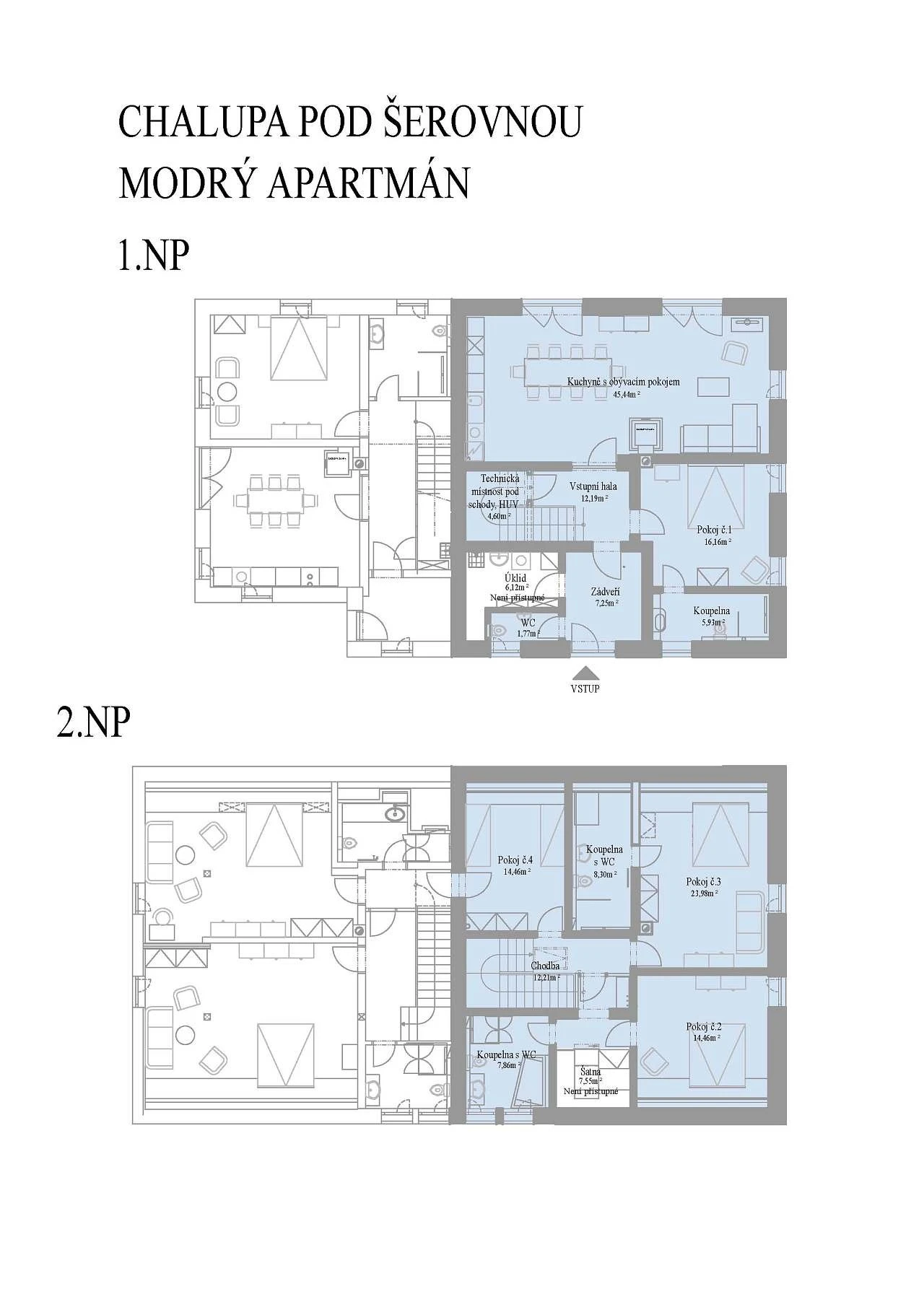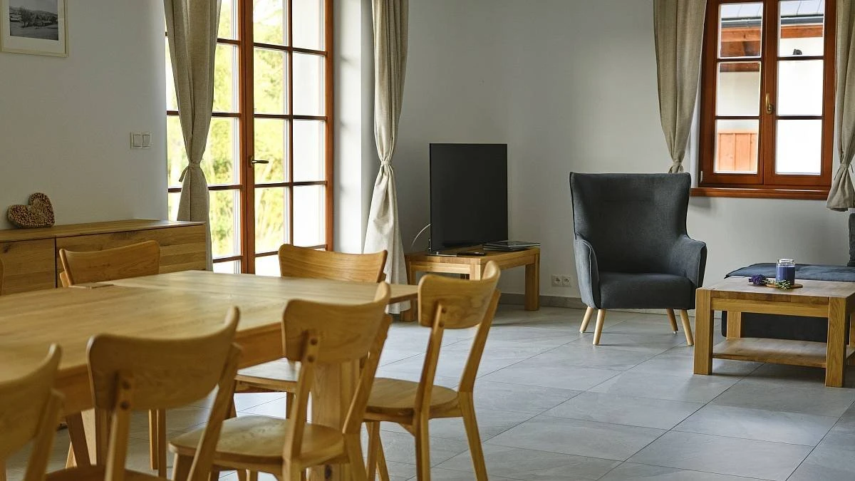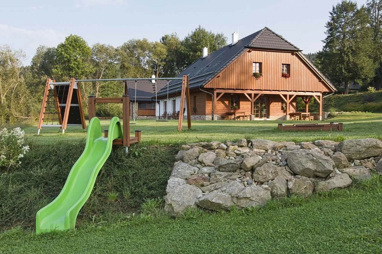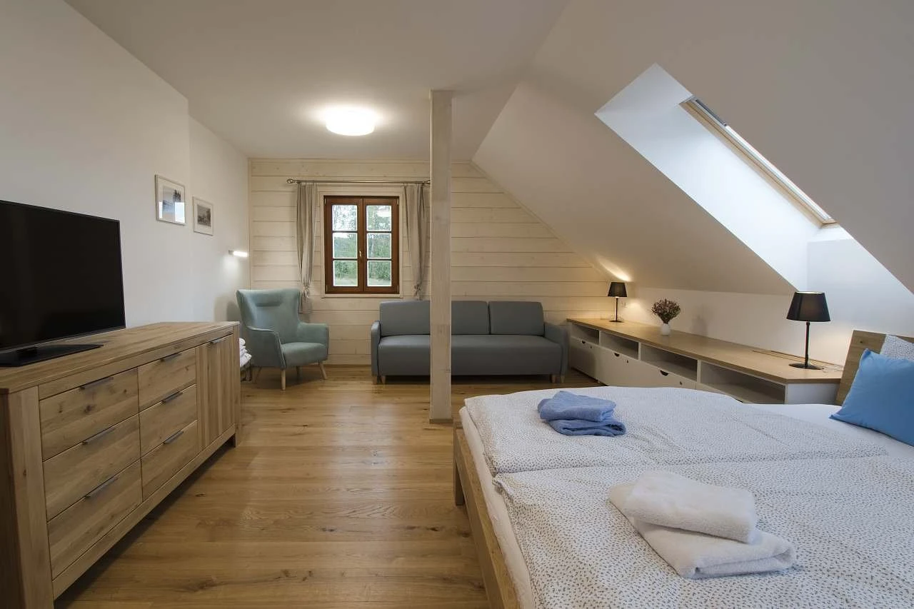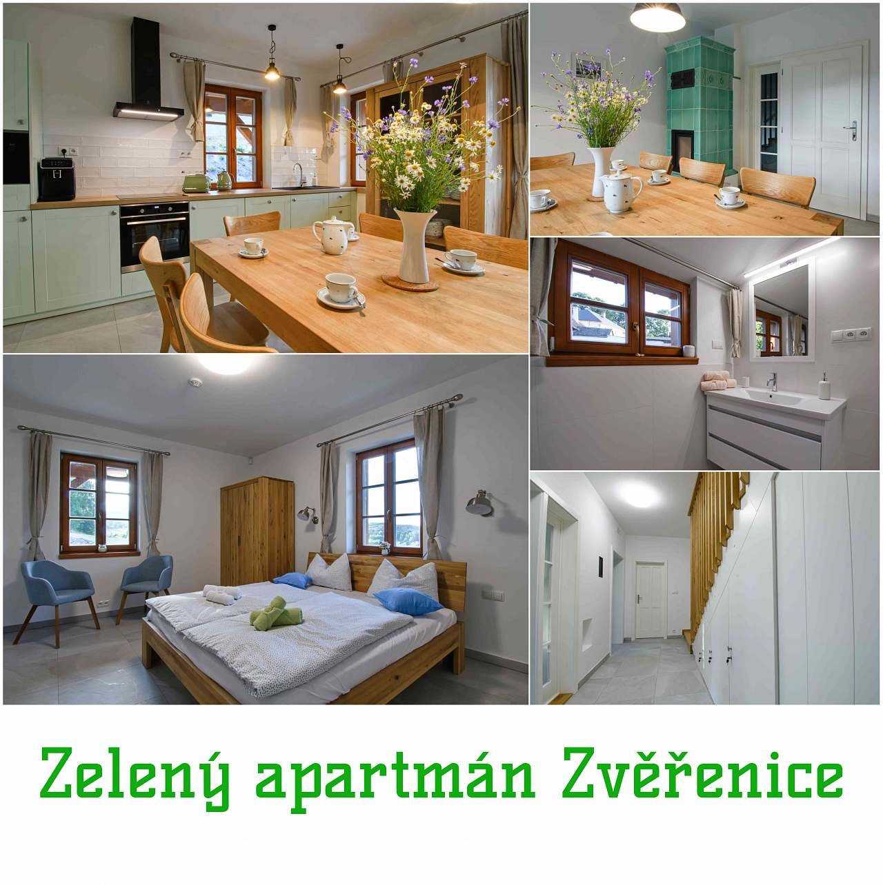 Chalupa Pod Šerovnou se nachází na samotě ve vesnici Zvěřenice na úbočí kopce, pár metrů od lesa a řeky Blanice, v klidné části Jižních Čech. Objekt nabízí dva samostatné apartmány – Modrý a Zelený, každý s vlastním vstupem, plně vybavenou kuchyní a prostornými pokoji. Hosté mají k dispozici možnost pronajmout si celou chalupu pro 4 až 17 osob, což zajišťuje maximální soukromí a flexibilitu ubytování. Chalupa je nekuřácká, vybavená podlahovým topením, disponuje Wi-Fi připojením zdarma a možností parkování přímo u objektu. V exteriéru je venkovní posezení s kuchyní a grilem a zastřešená herna pro volný čas. Okolní krajina nabízí podmínky pro pěší turistiku, cyklovýlety a zimní běžkování, a objekt je vhodný pro rodiny s dětmi, skupiny přátel nebo sportovce, kteří hledají klid, komfort a možnost aktivní dovolené. Chalupa je vybavena vnitřním krbem, apartmány mají plně vybavenou kuchyň, komfortní koupelny a prostorné ložnice.