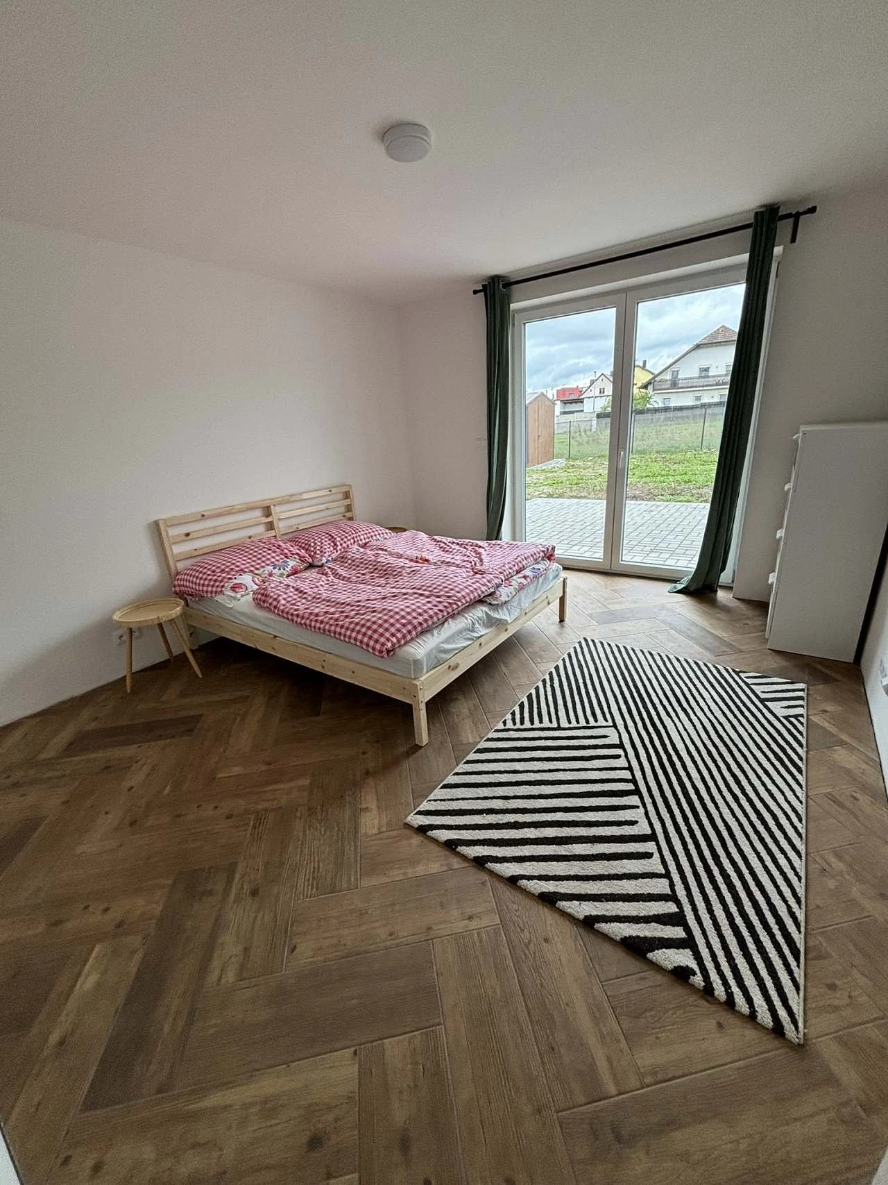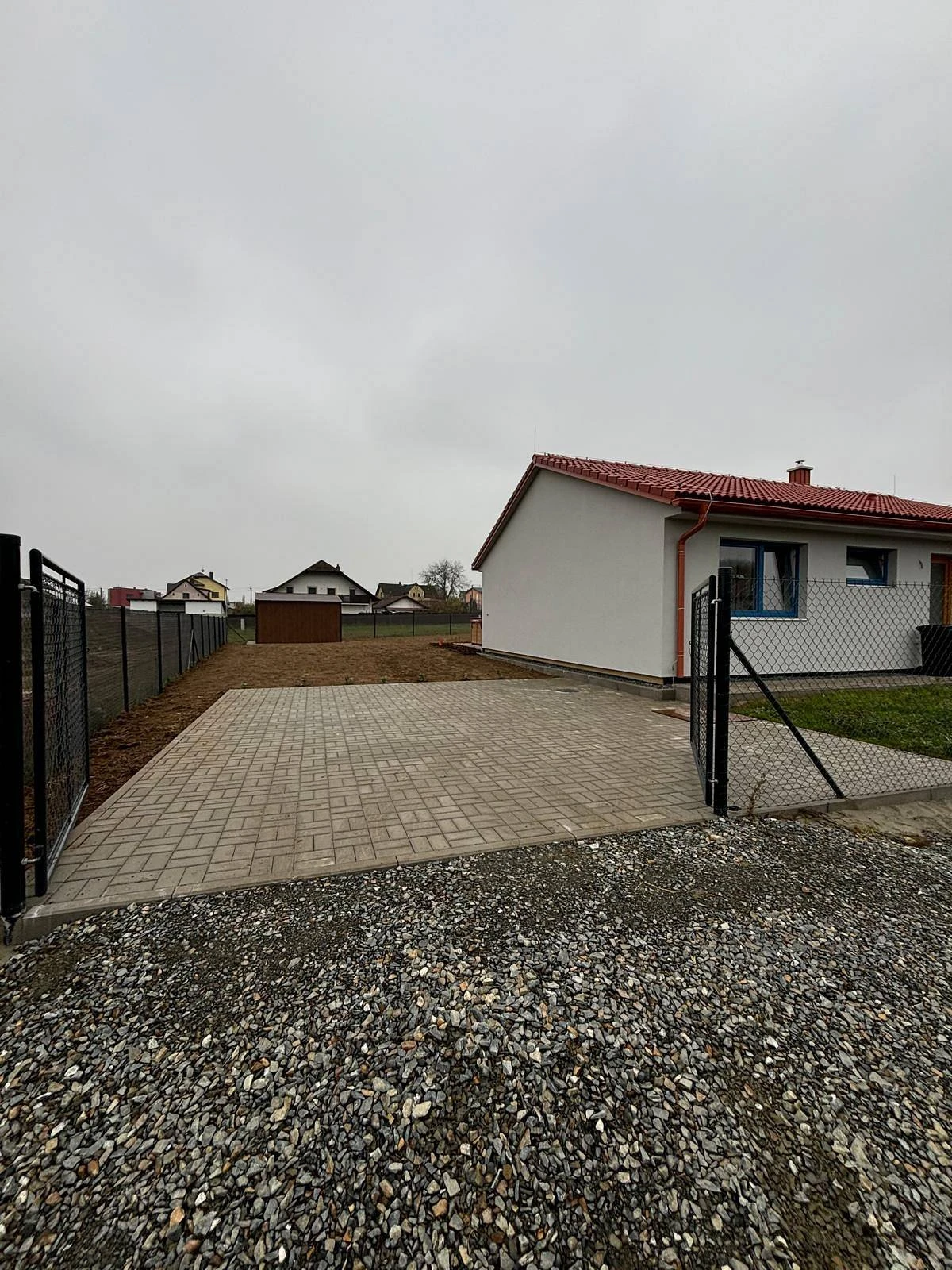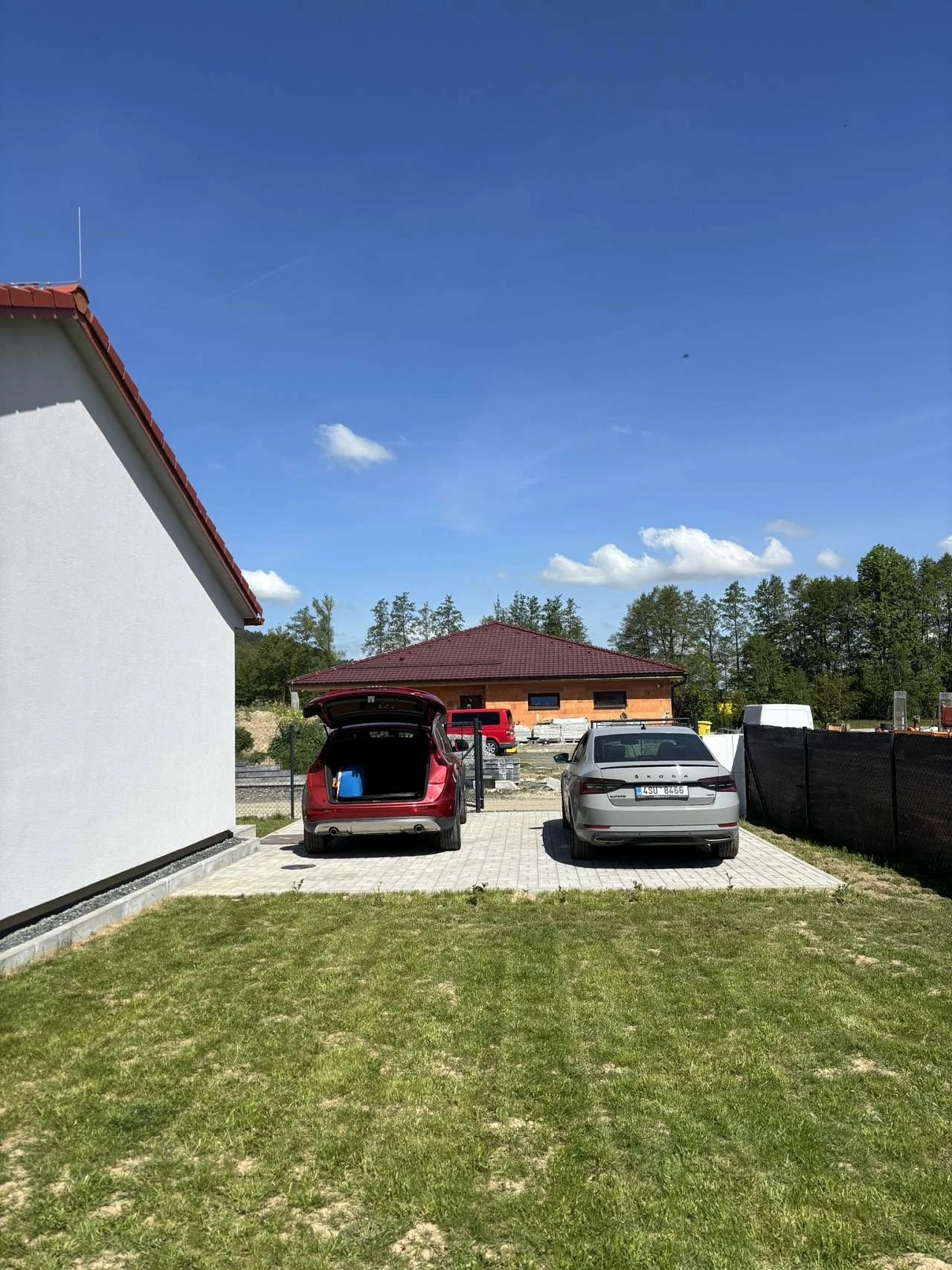 Parkování je zajištěno na zpevněném oploceném parkovacím stání pro 2 auta se zamykacími vraty, další parkovací možnosti jsou před domem.