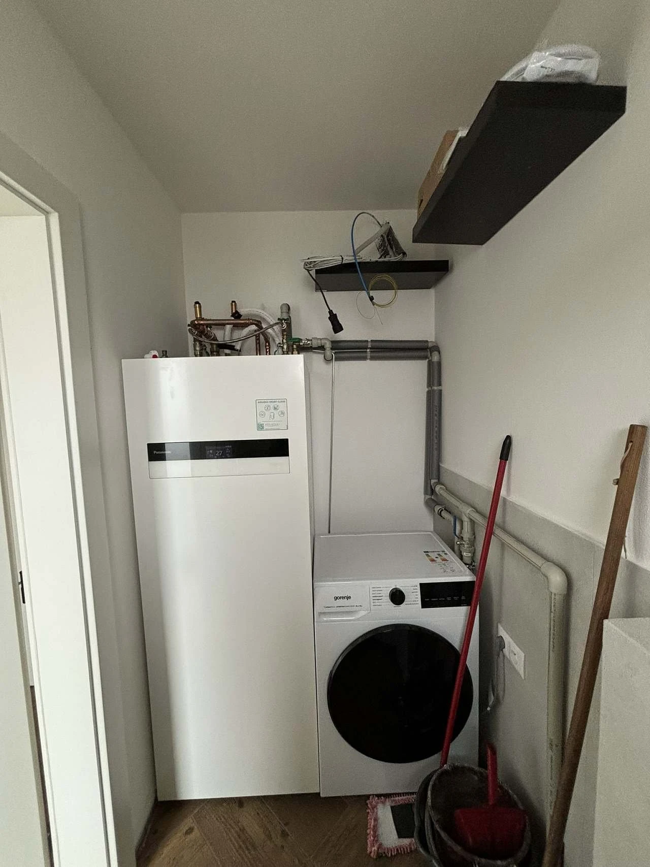 V technické místnosti je pračka se sušičkou.
