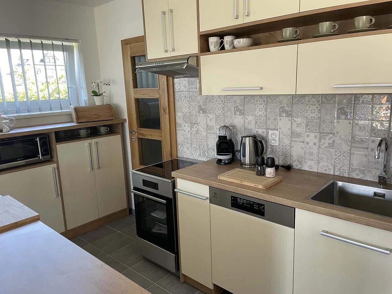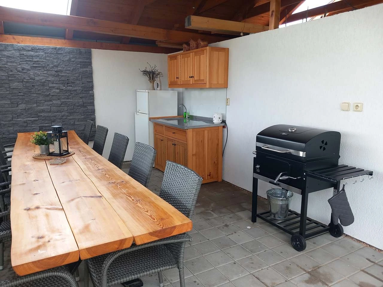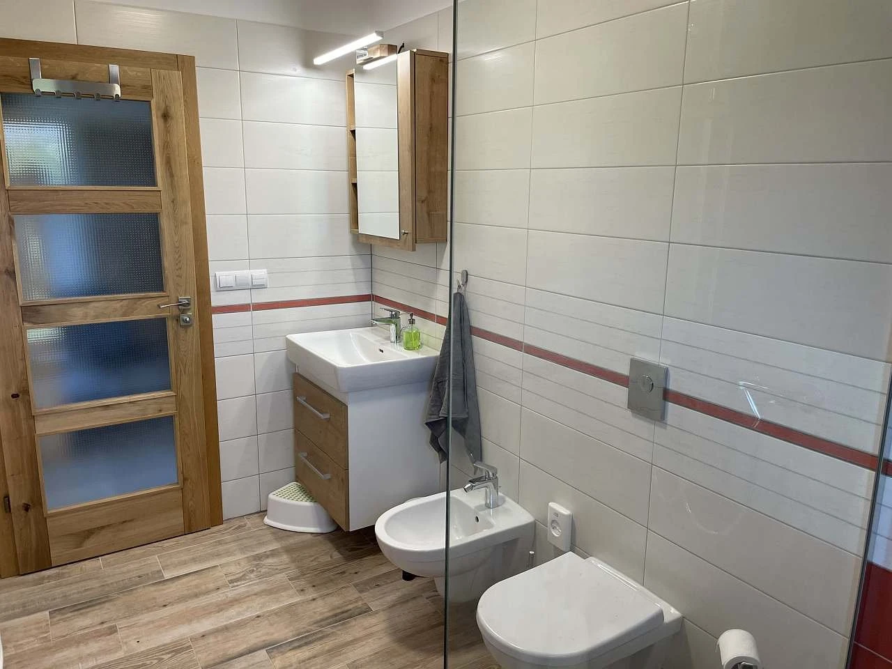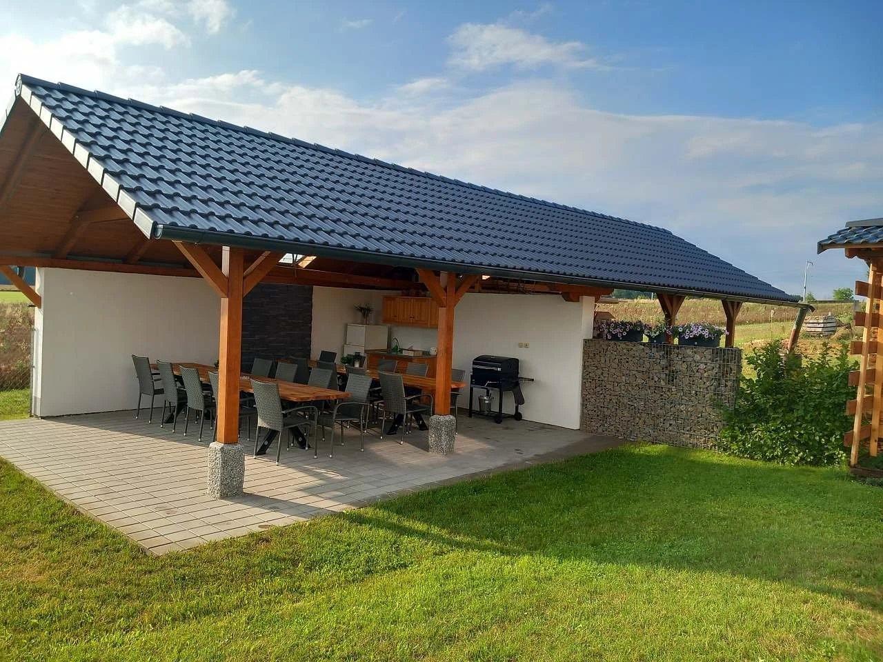 K dispozici je venkovní bazén, oplocený pozemek a zázemí pro děti, včetně houpaček, prolézaček, hraček a dětské postýlky. Na zahradě se nachází kryté posezení s grilem, venkovní kuchyně s lednicí a přenosné ohniště. Součástí vybavení jsou také kryté stojany na kola (až pro 10 kol) a uzamykatelná místnost se sociálním zařízením, kterou lze využít jako kolárnu nebo úložný prostor pro kočárky. V bezprostřední blízkosti domu je dětské hřiště.
