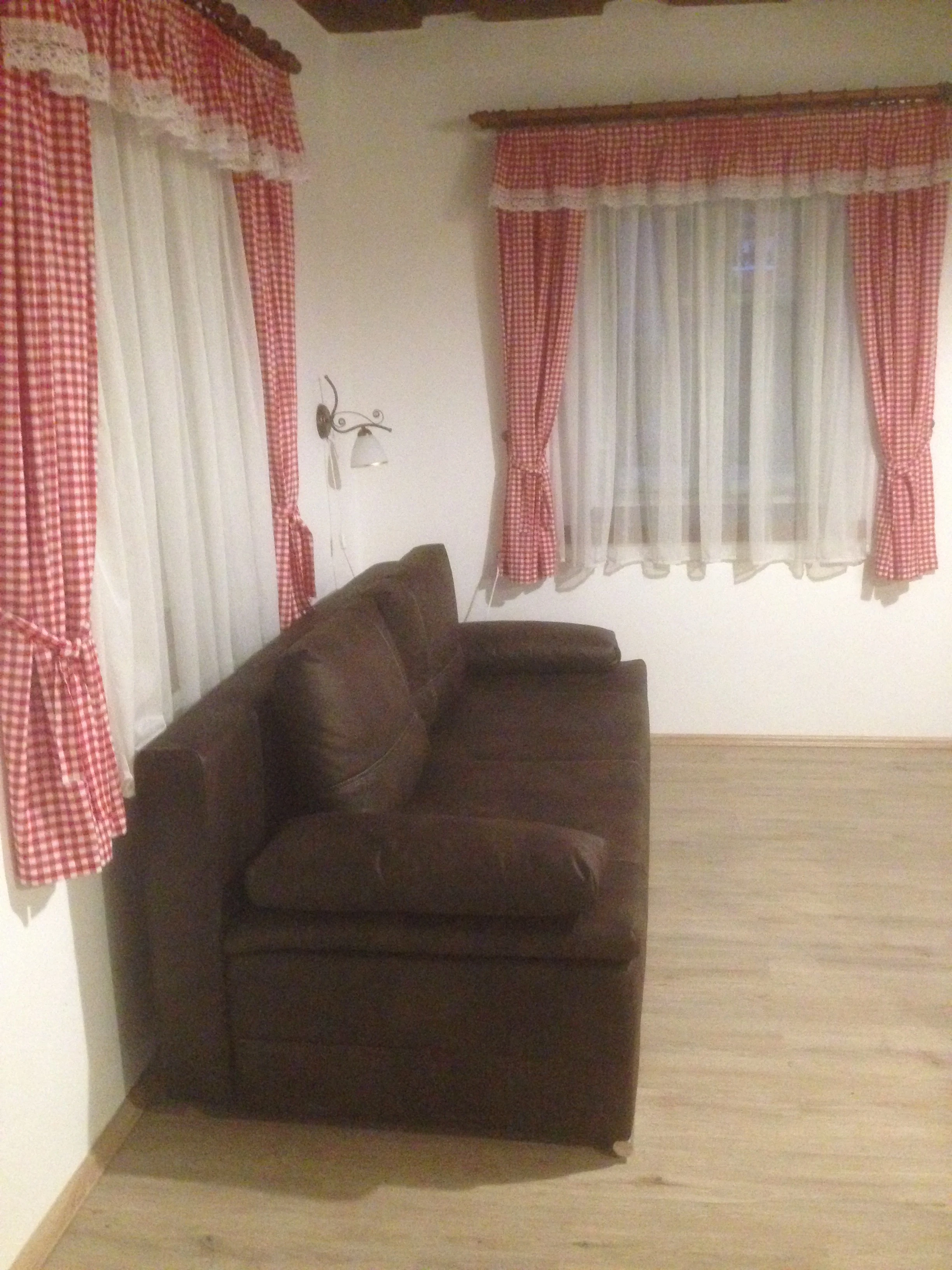 K dispozici je hlavní obytná místnost propojující obývací část, kuchyň a jídelní kout, kde se nachází rozkládací pohovka pro 2 osoby. Dále je zde samostatná ložnice s manželskou postelí pro 2 osoby a oddělený pokoj se dvěma palandami, který nabízí 4 lůžka.