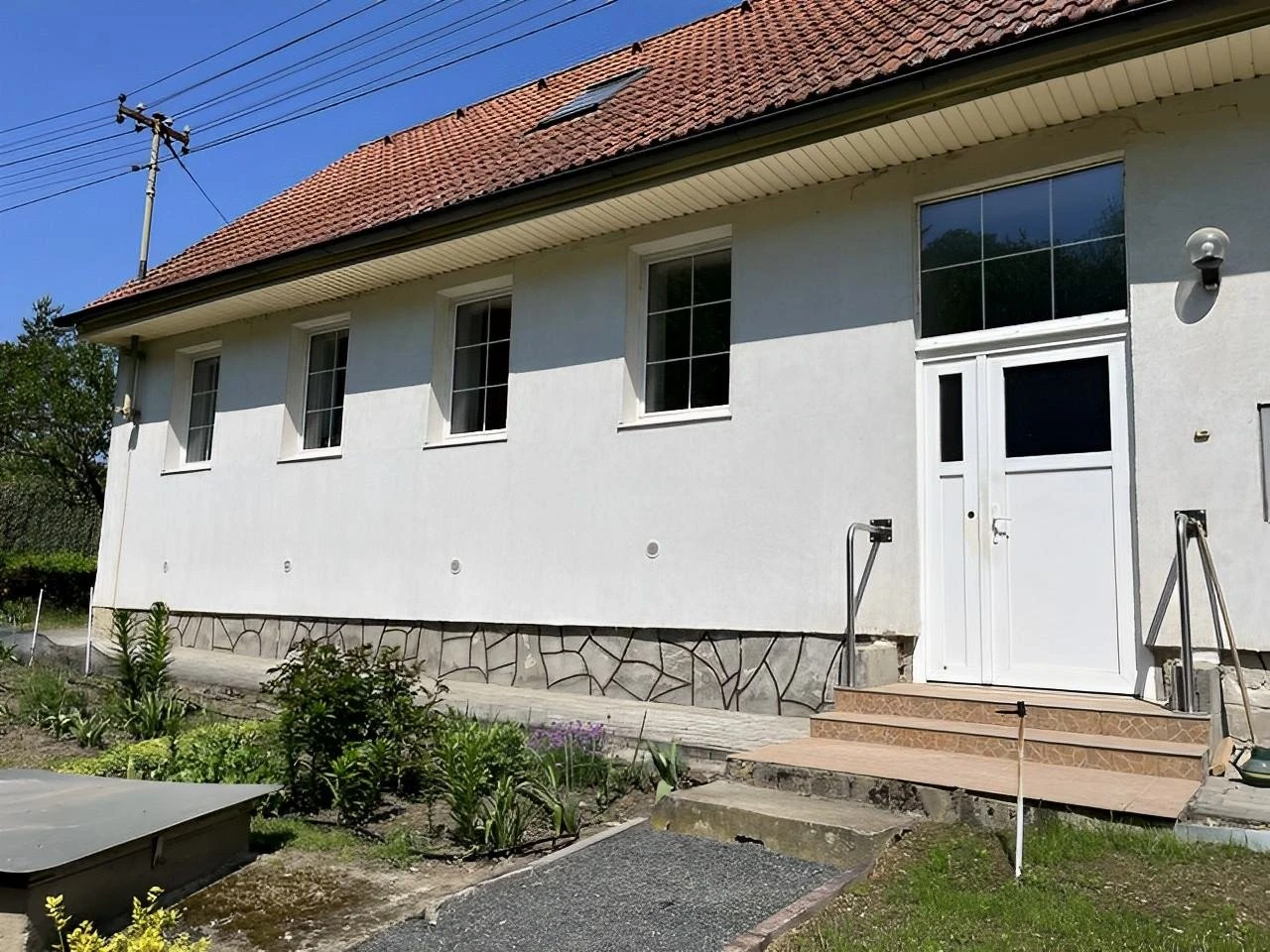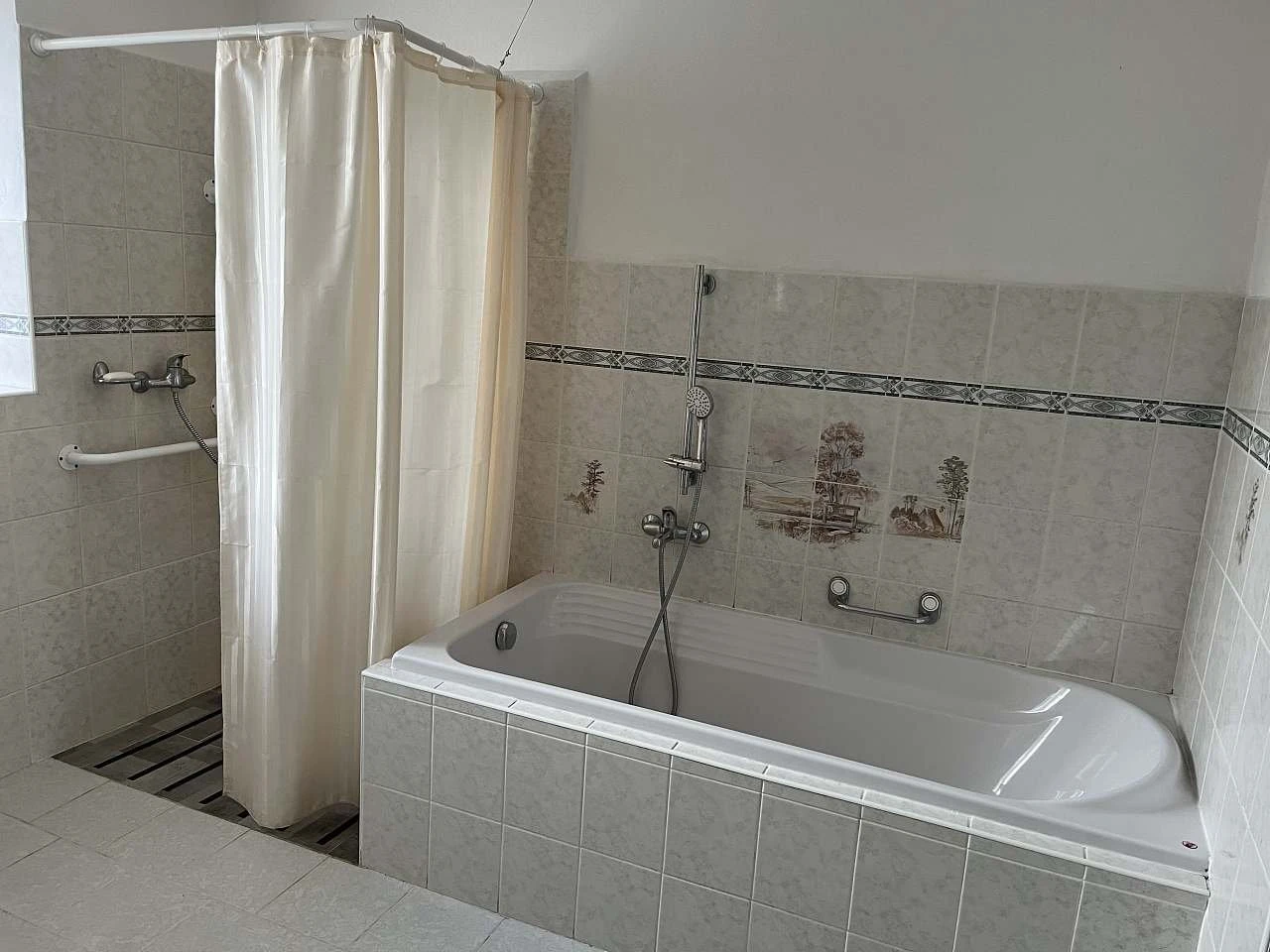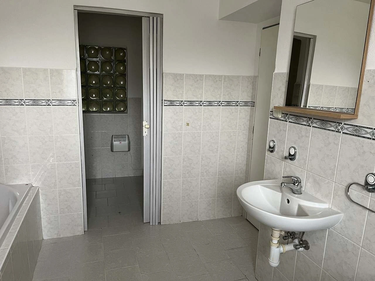 K dispozici jsou 2 koupelny – v přízemí je koupelna s vanou, sprchovým koutem, umyvadlem, WC a bidetem, v patře koupelna s vanou, umyvadlem a WC. Vytápění je elektrické.