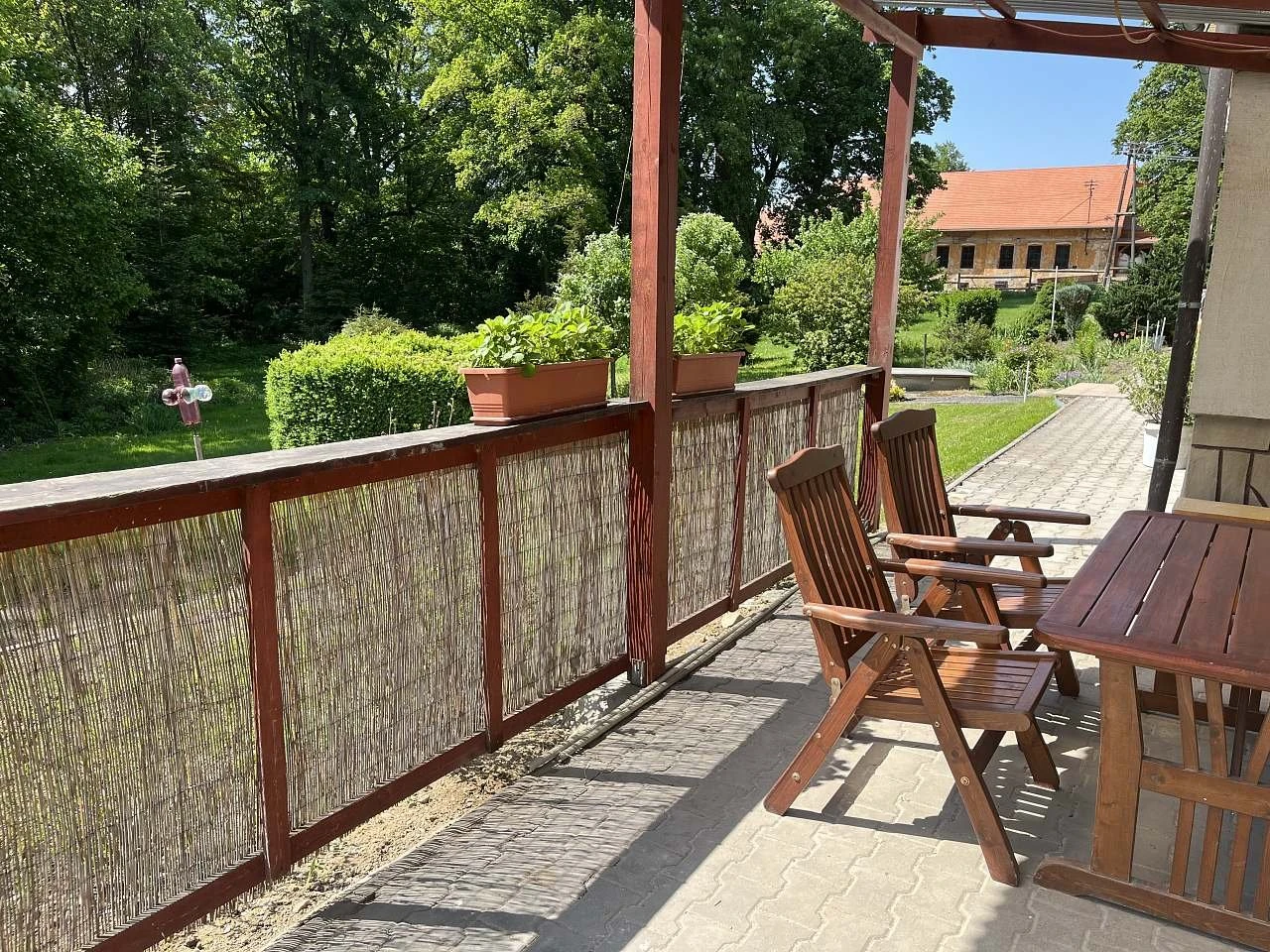 Součástí objektu je pozemek o rozloze 950 m². Hosté mohou využít krytou pergolu s venkovním posezením a ohniště. K dispozici je také možnost uzamčení jízdních kol.