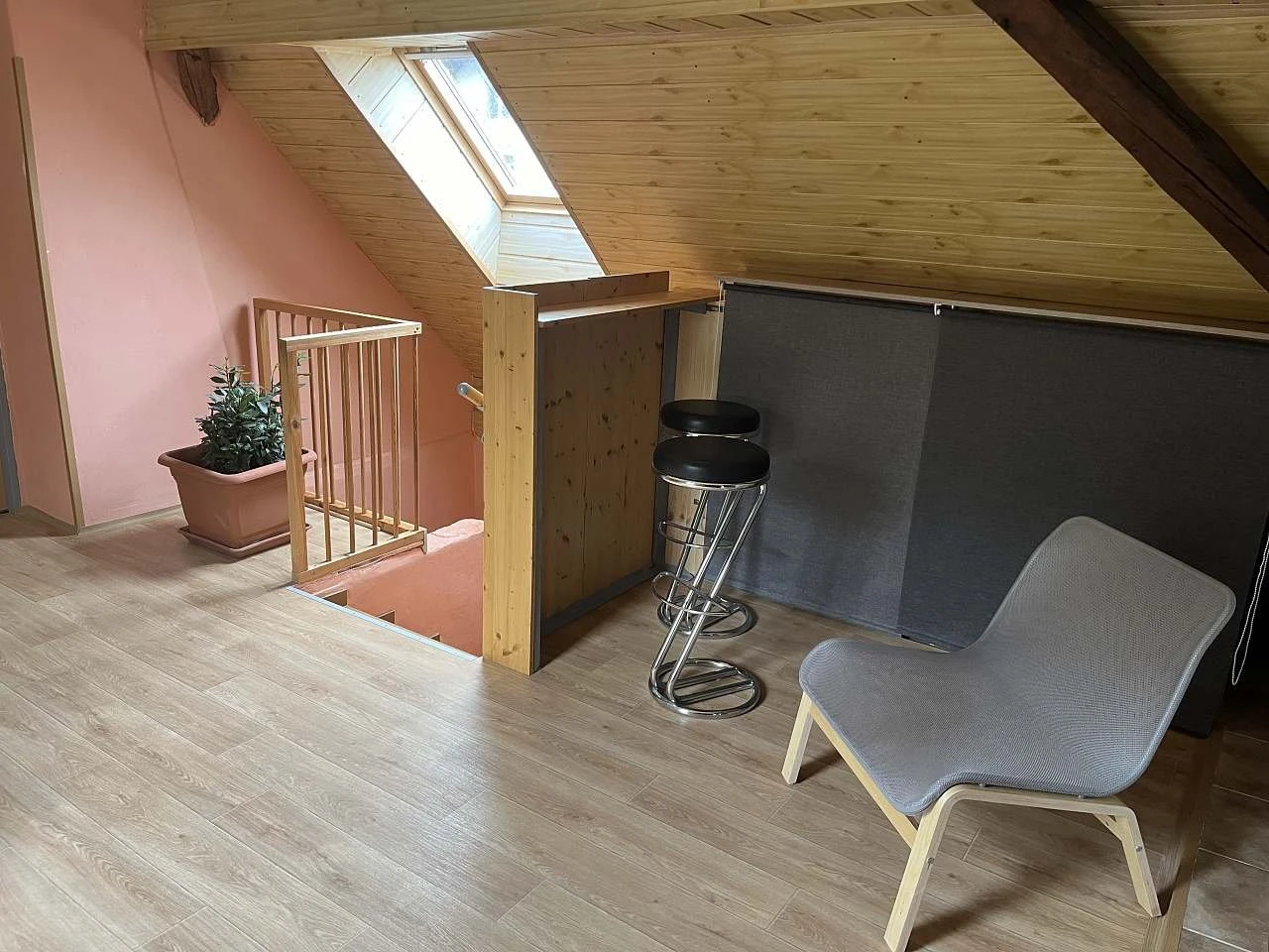 V přízemí je k dispozici plně vybavená kuchyně s jídelnou a koupelna. V patře se nacházejí ložnice, společenská místnost a druhá koupelna.