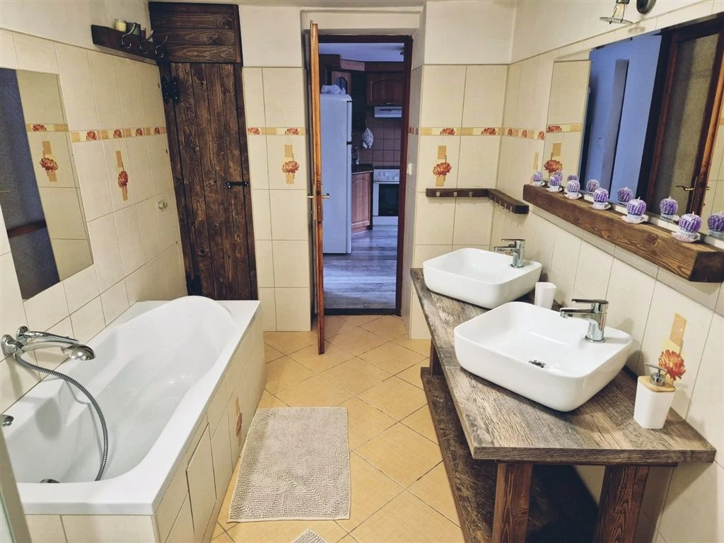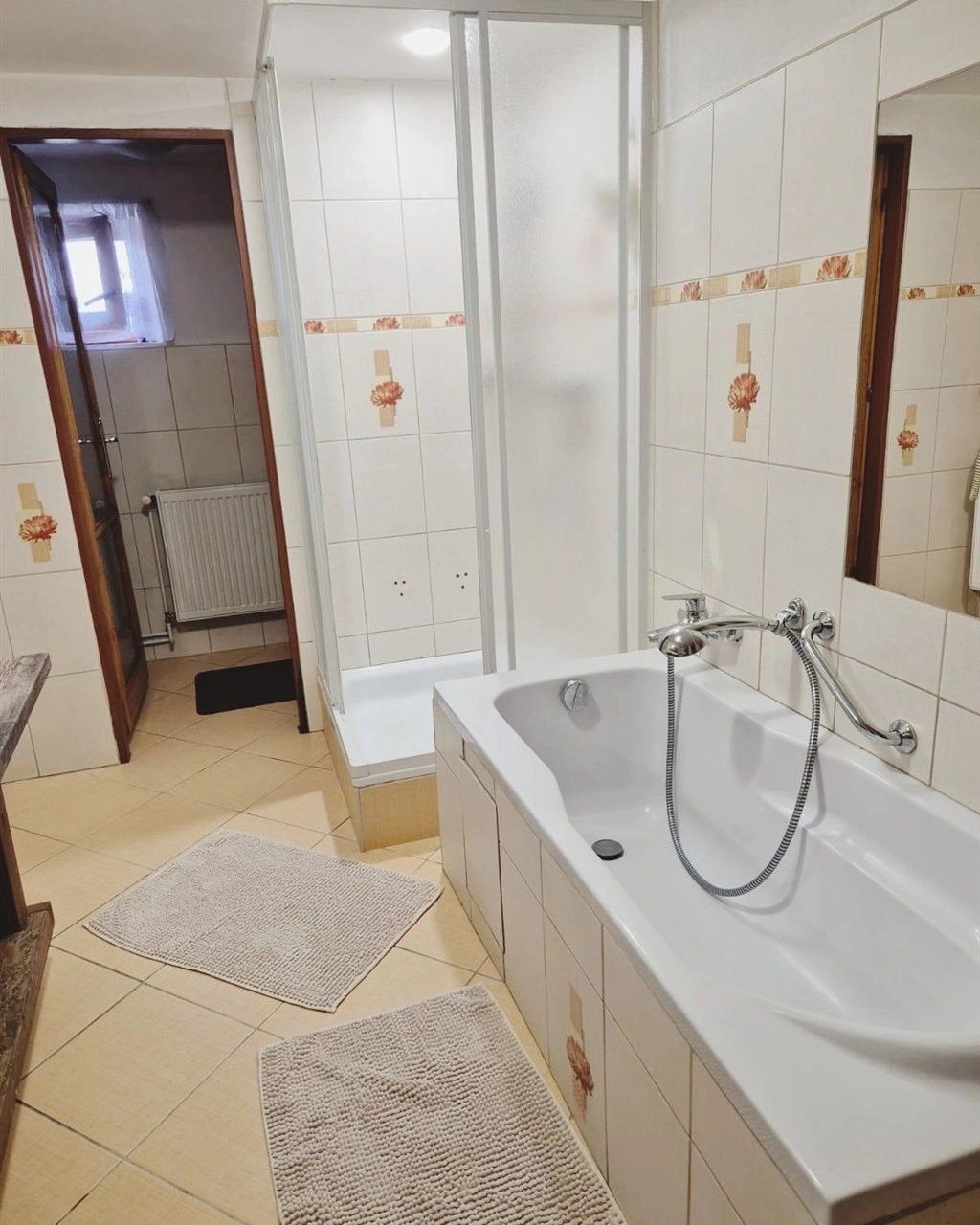 - Koupelna s vanou, sprchovým koutem, pračkou a sušičkou